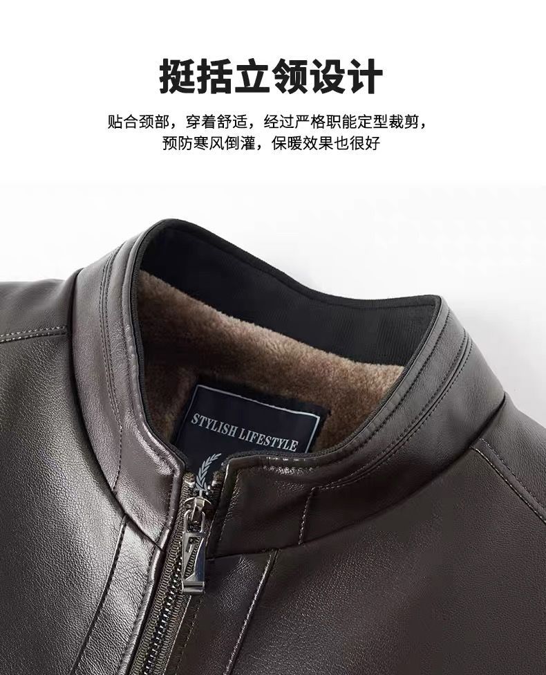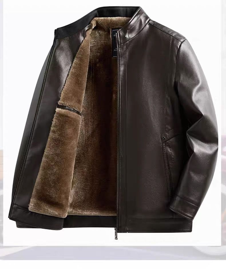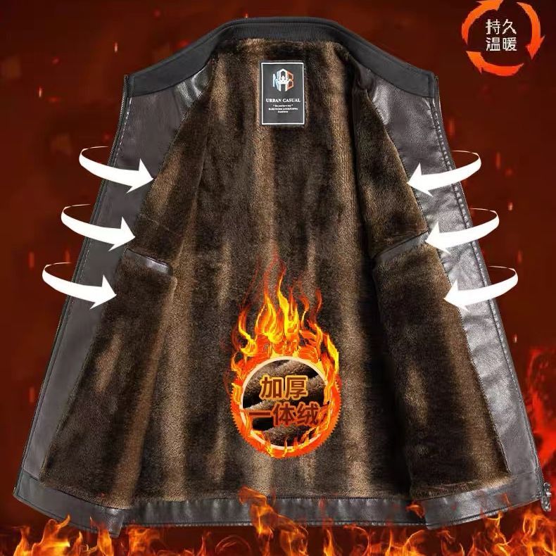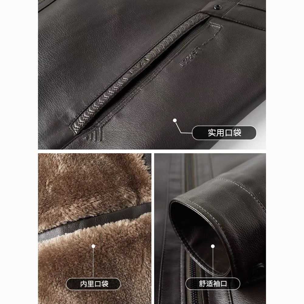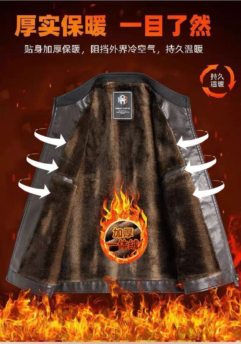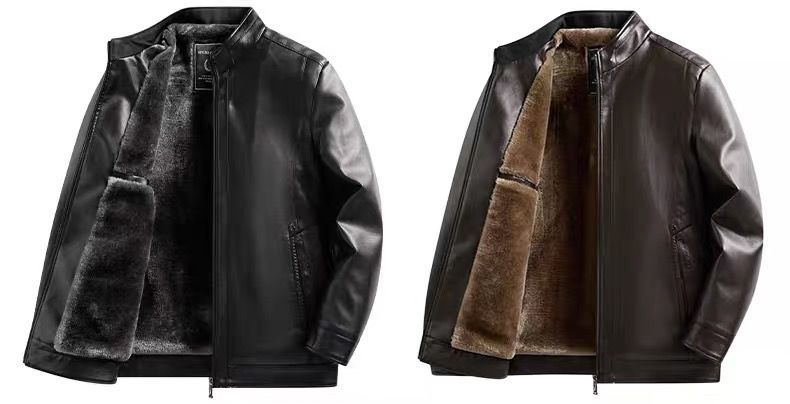 新款男士皮衣冬季加绒休闲加厚爸爸外套立领中老年宽松保暖上衣
