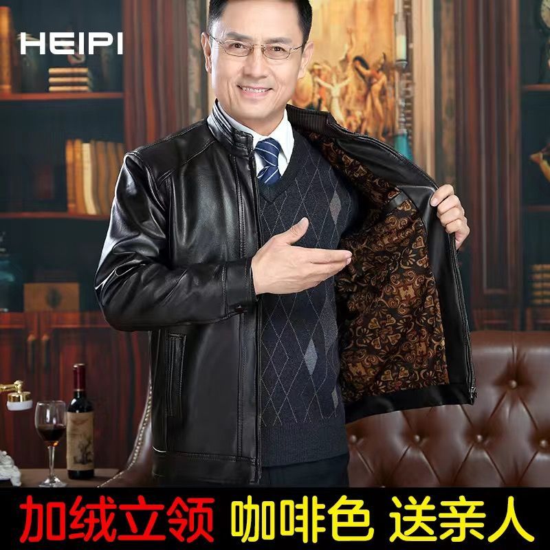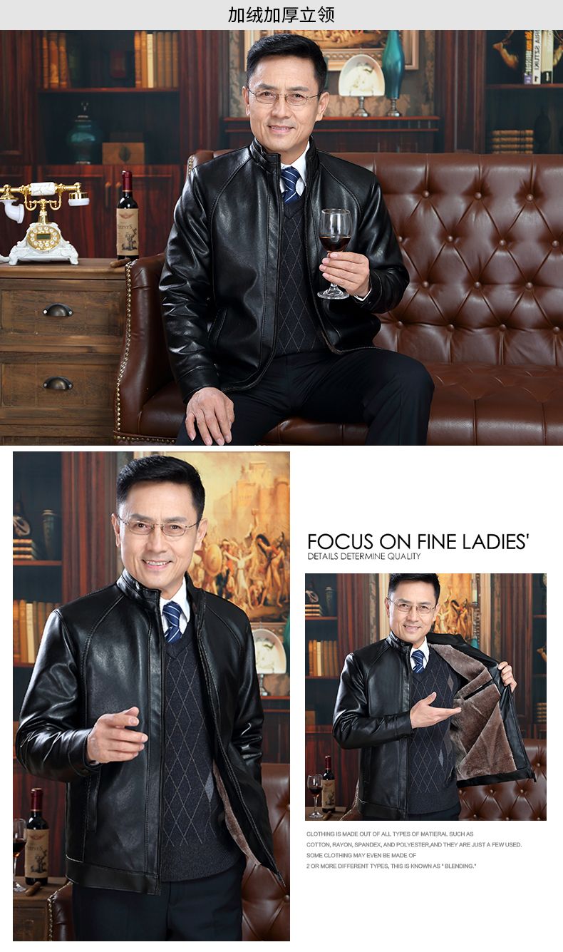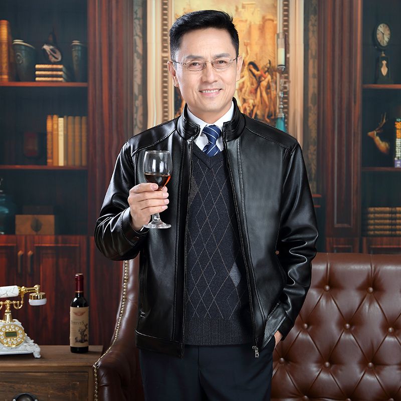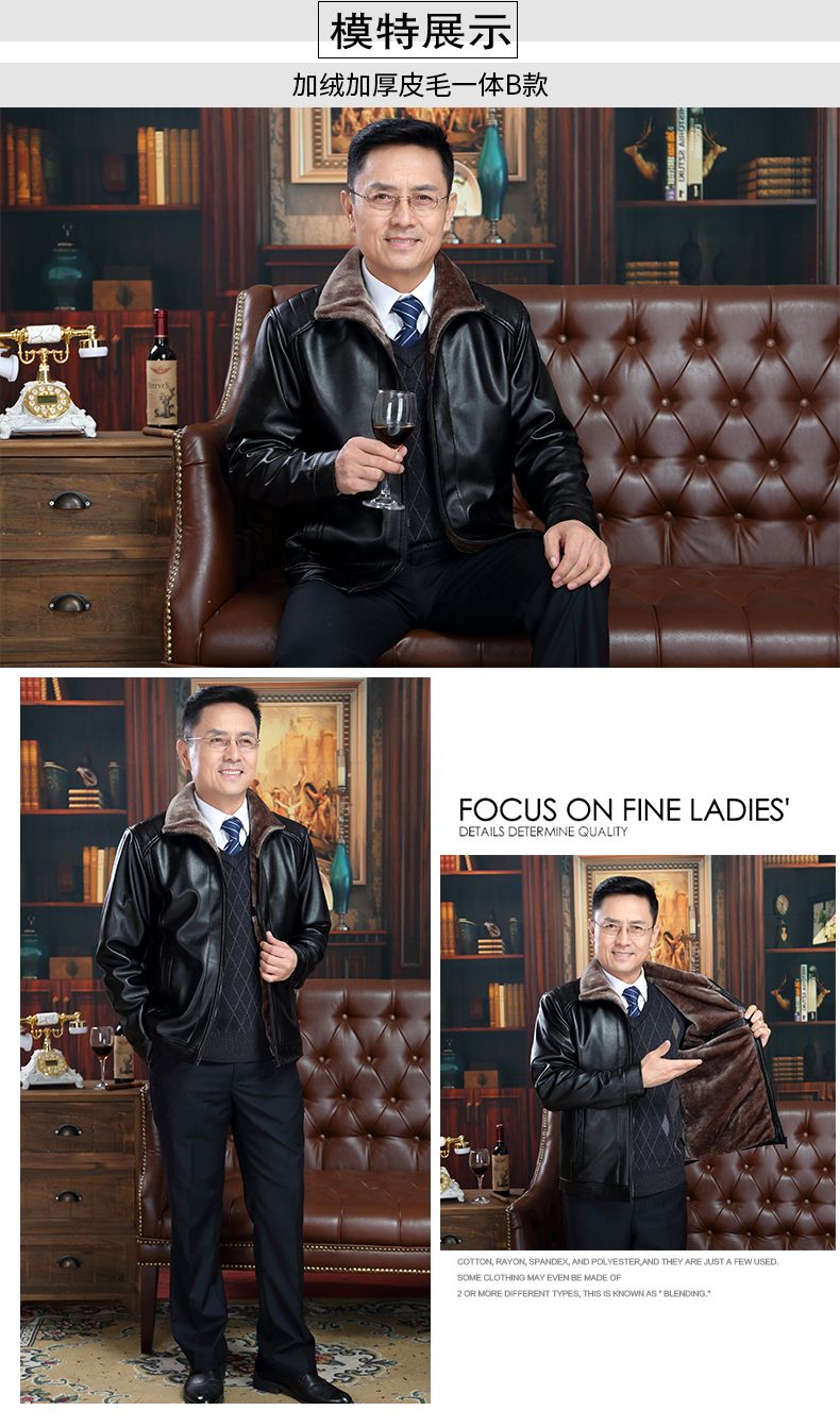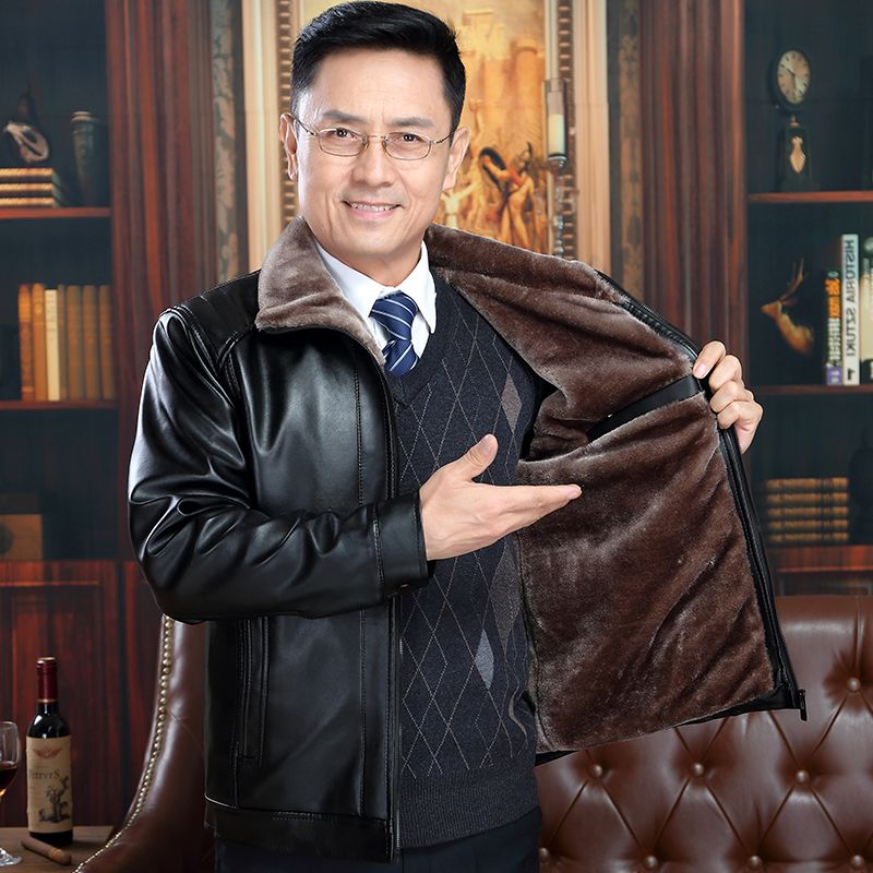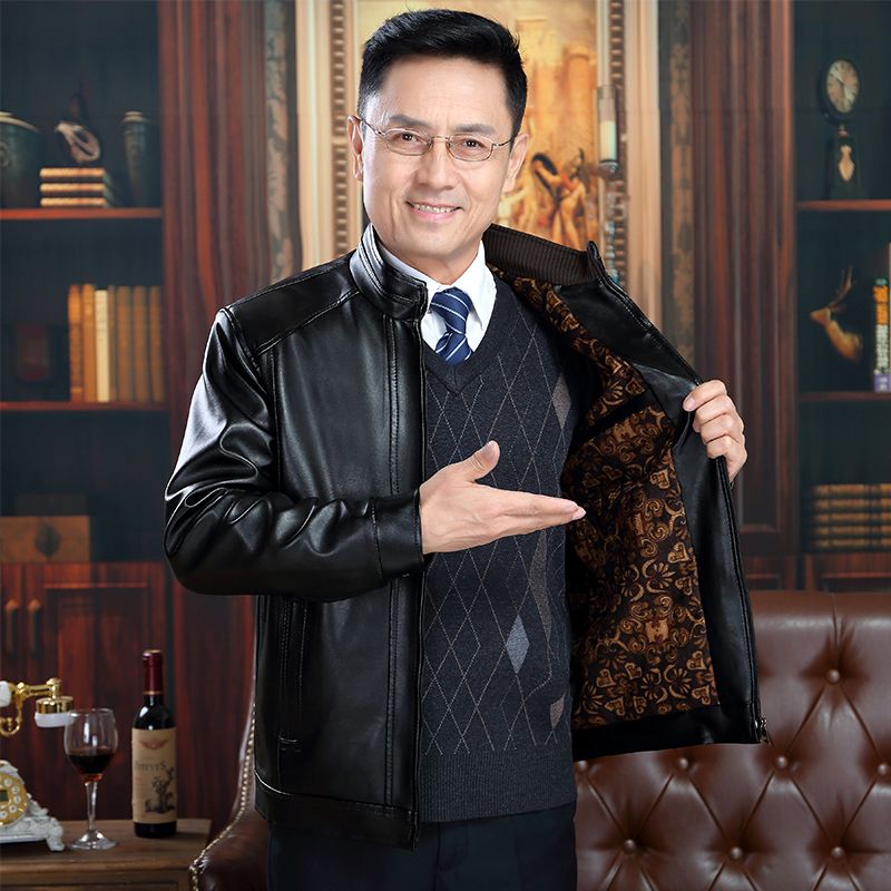 中年男士皮衣加绒皮衣男休闲皮夹克宽松大码皮衣外套中老年爸爸装
