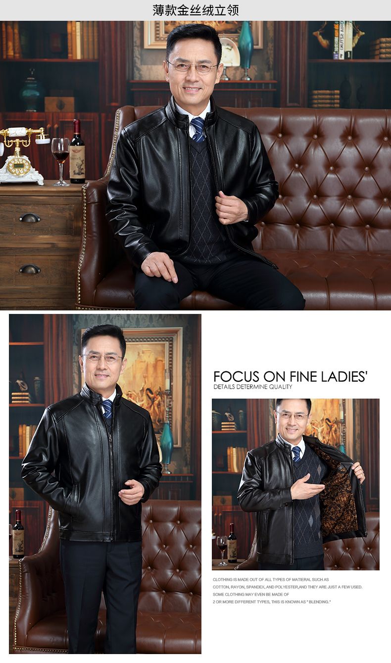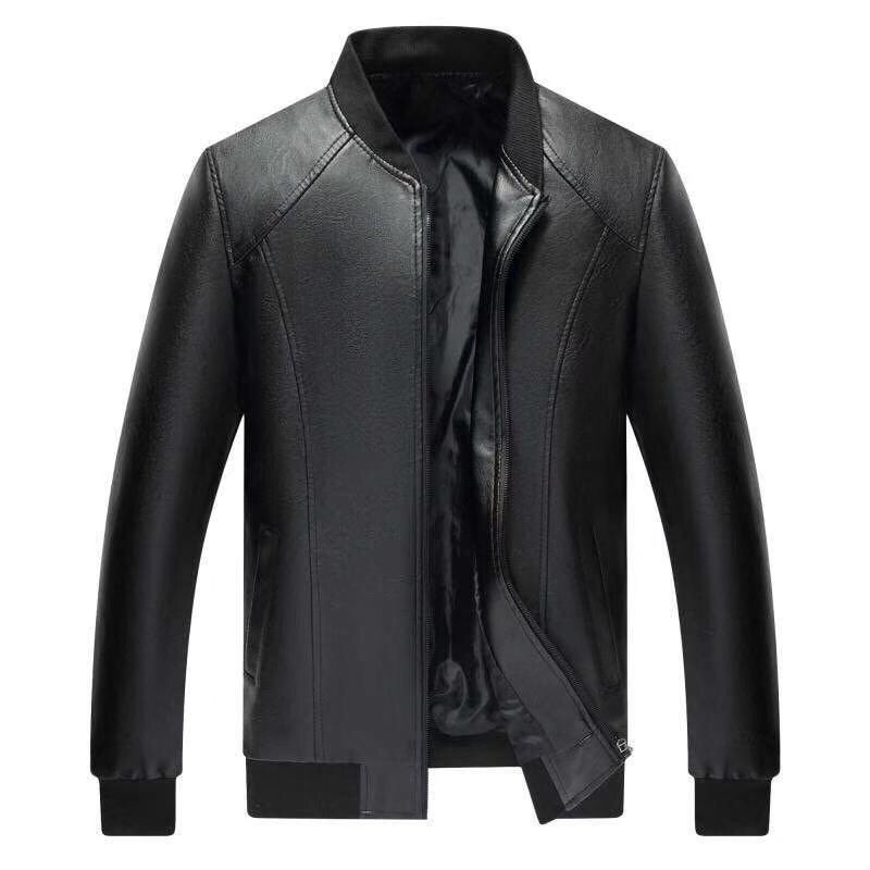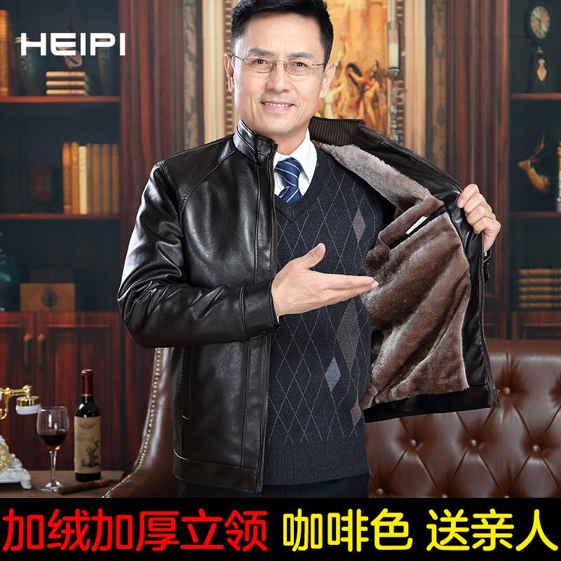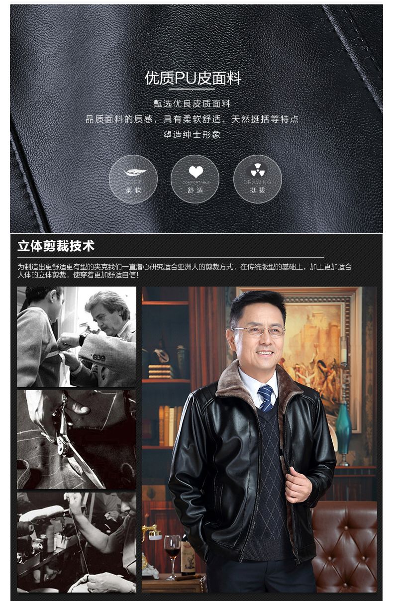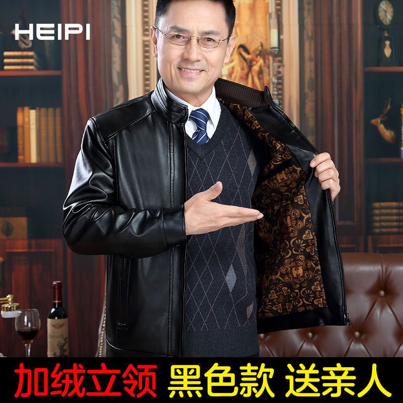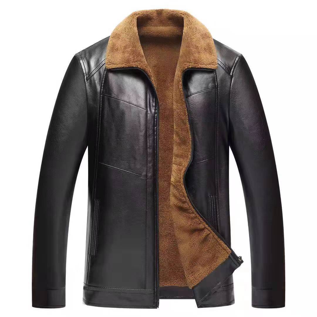 中年男士皮衣加绒皮衣男休闲皮夹克宽松大码皮衣外套中老年爸爸装