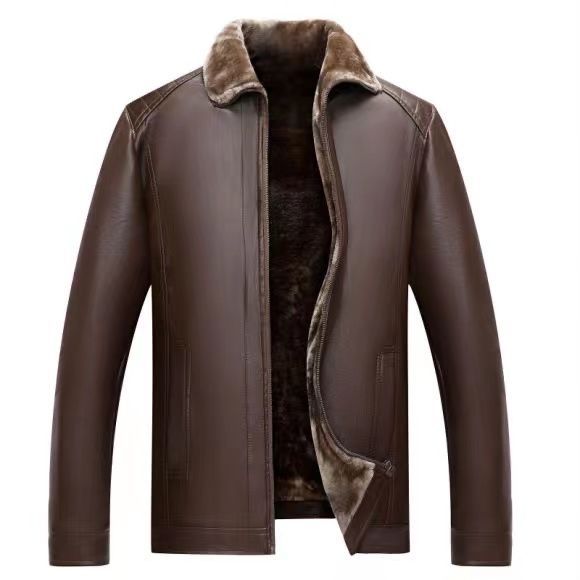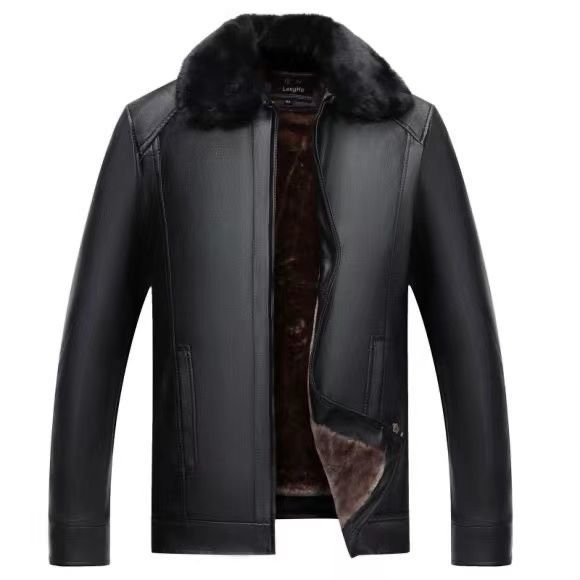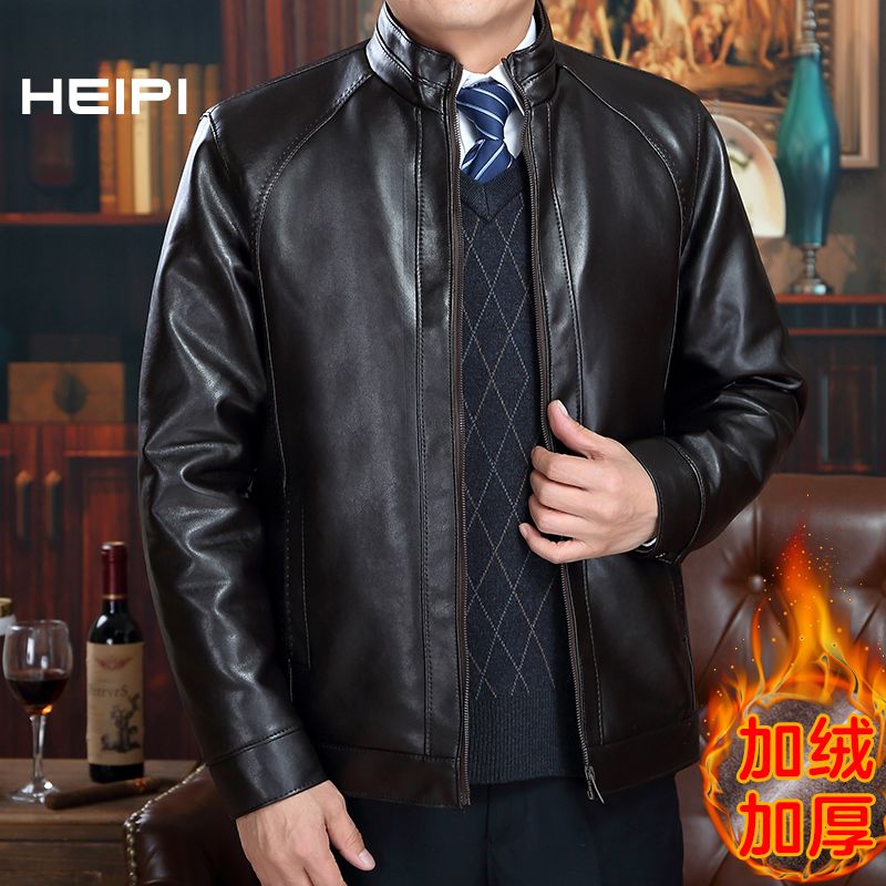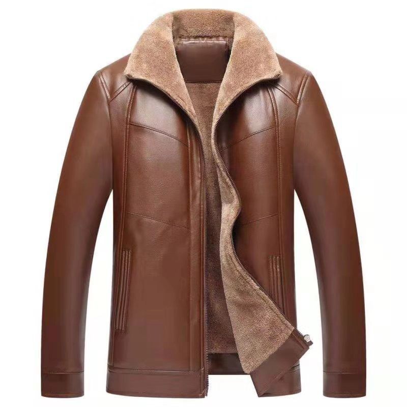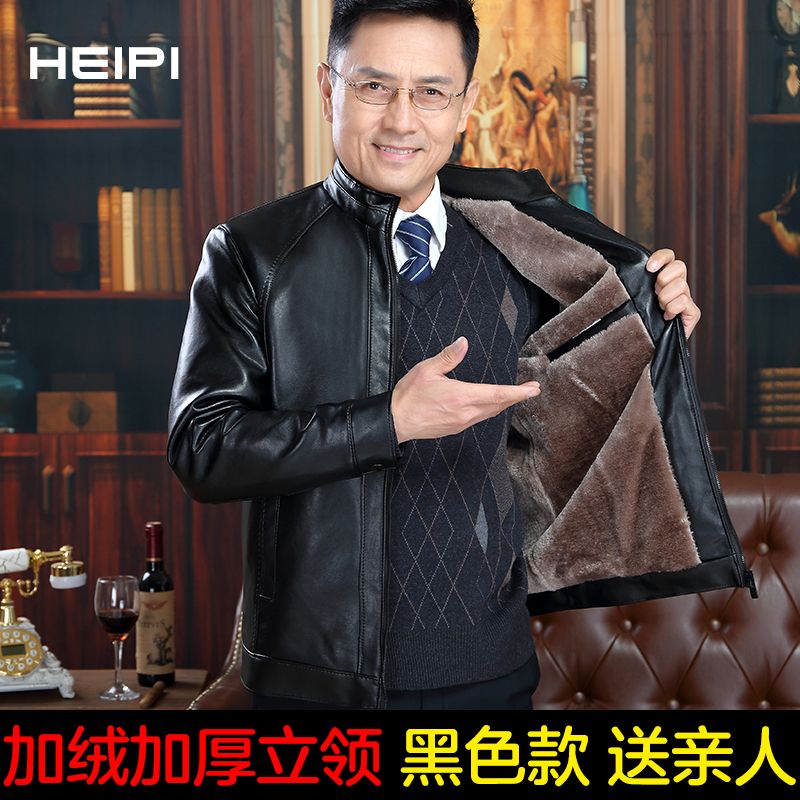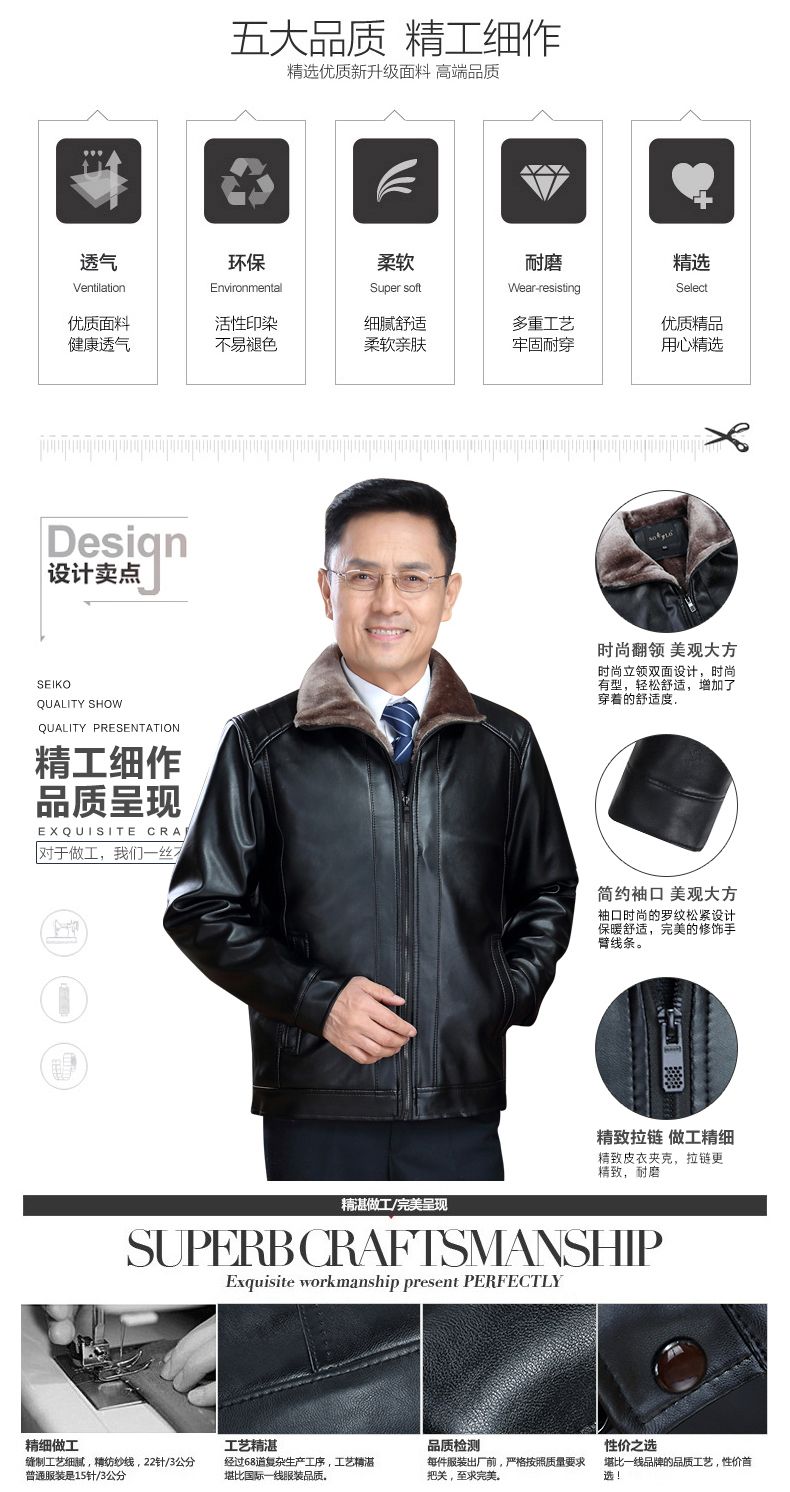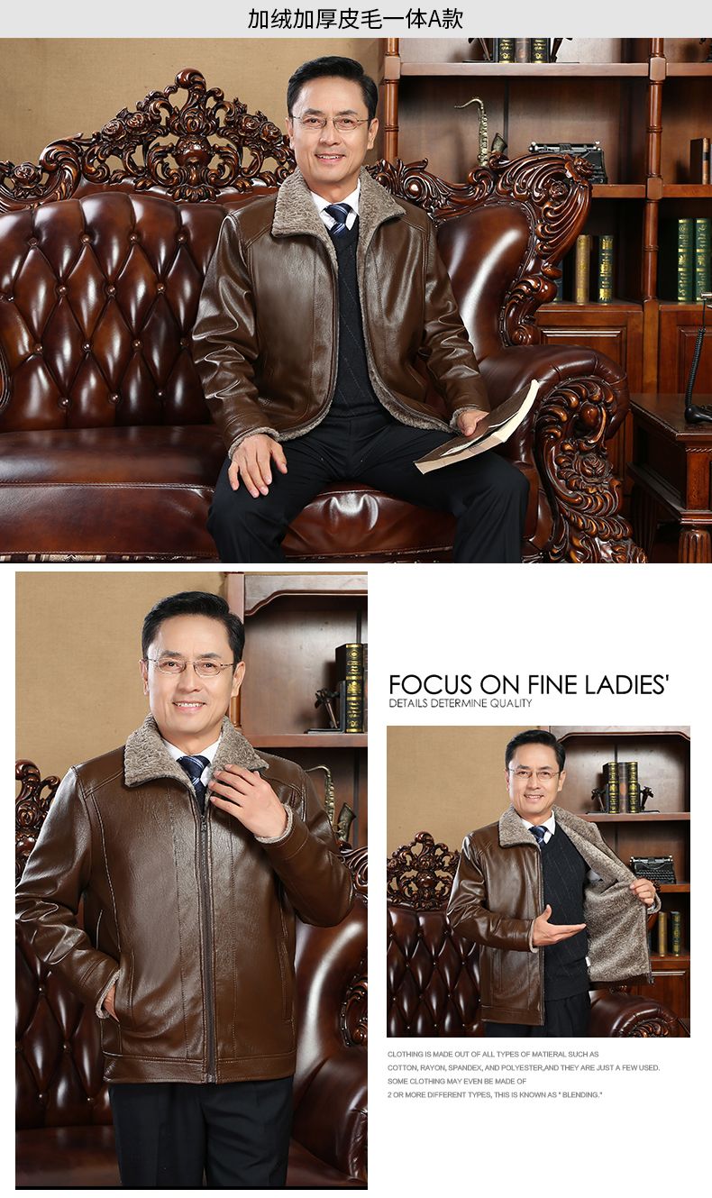 中年男士皮衣加绒皮衣男休闲皮夹克宽松大码皮衣外套中老年爸爸装