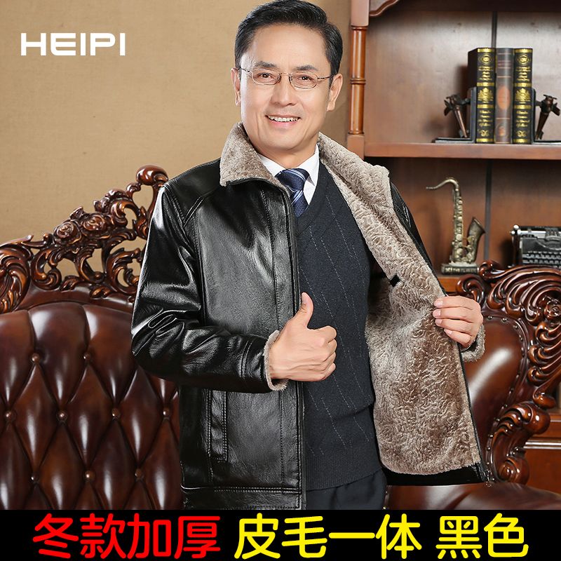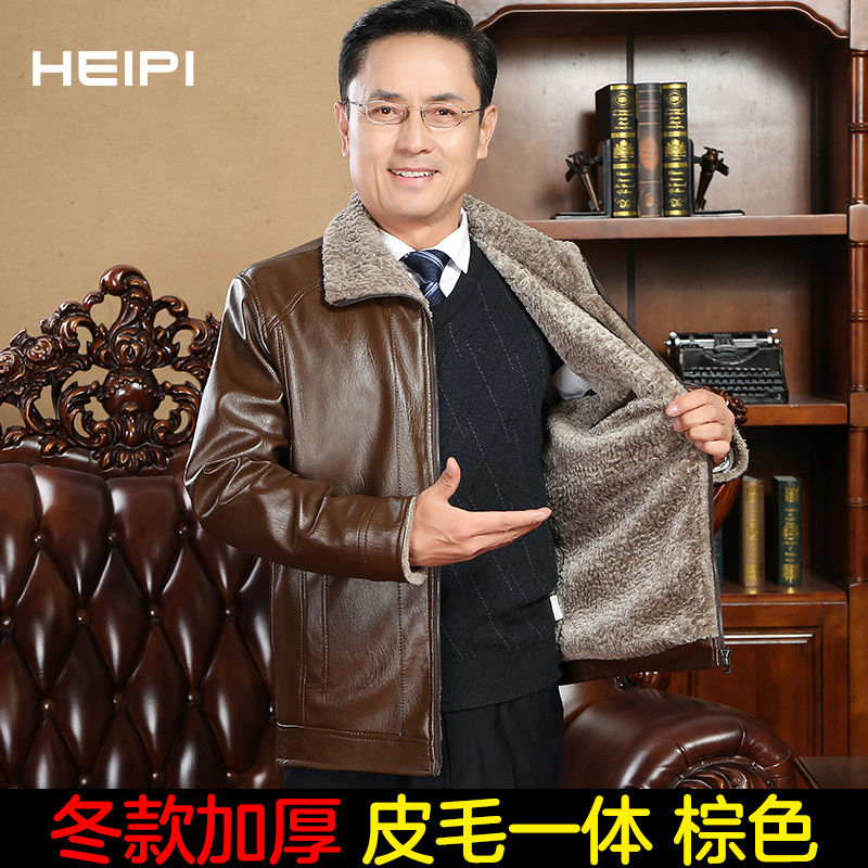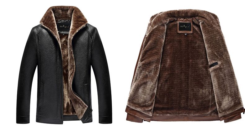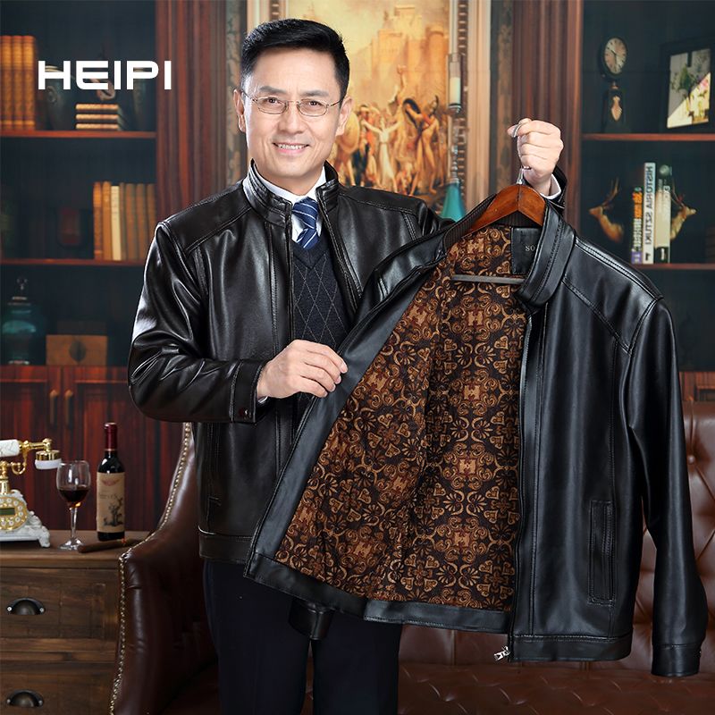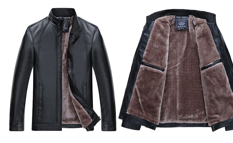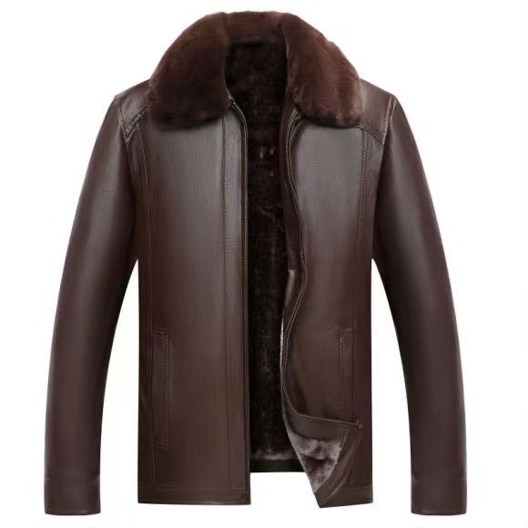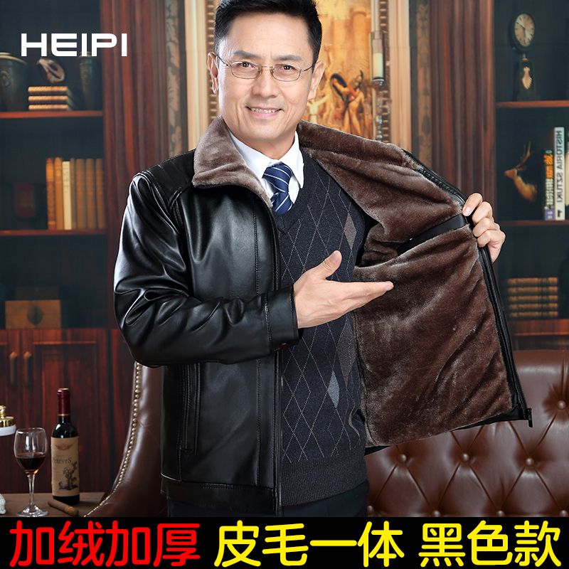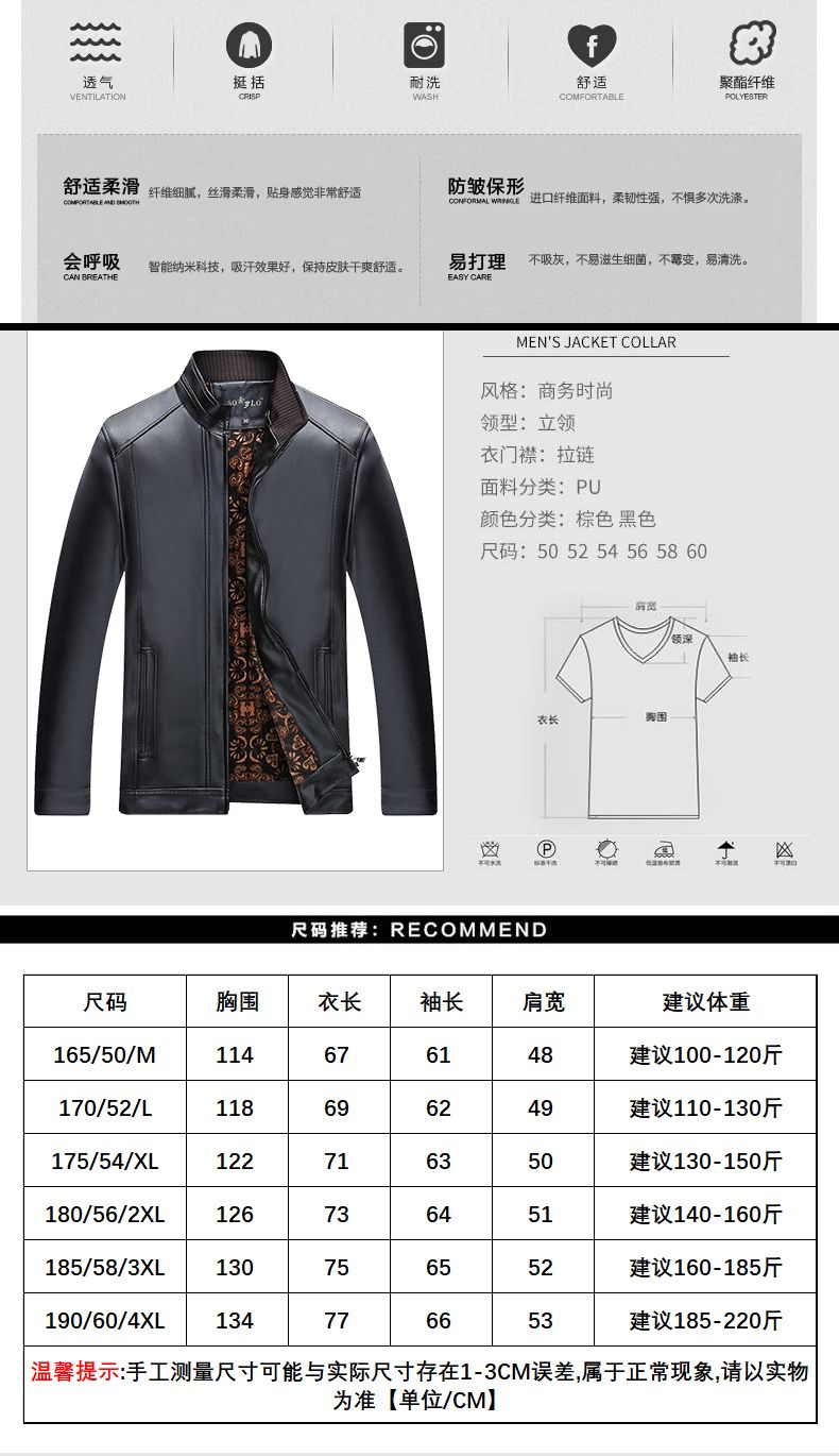 中年男士皮衣加绒皮衣男休闲皮夹克宽松大码皮衣外套中老年爸爸装