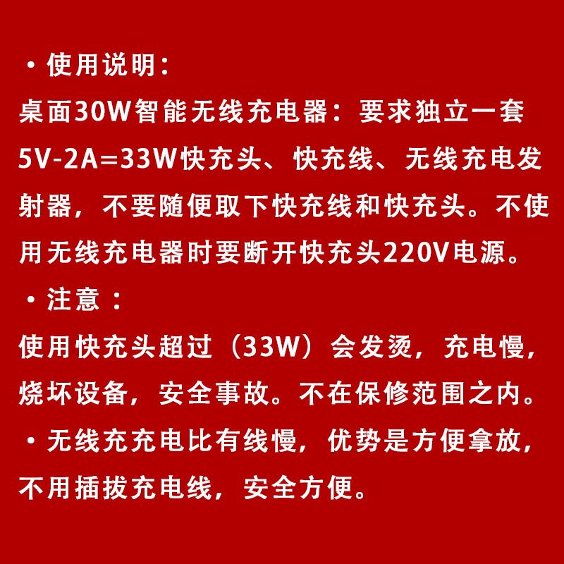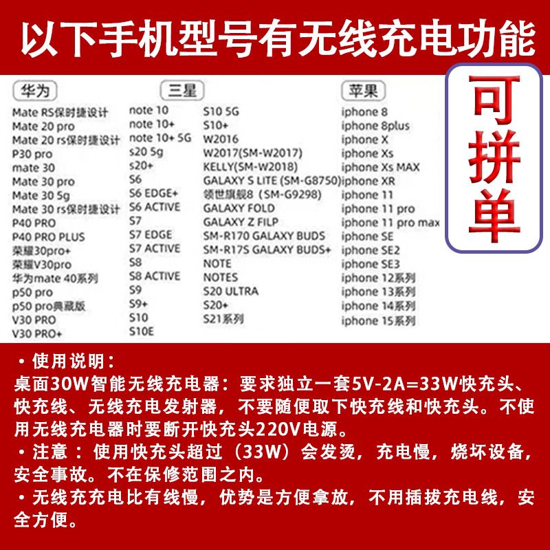 30 W智能全塑料壳无线充电器兼容华为苹果三星有无线充电功能手机