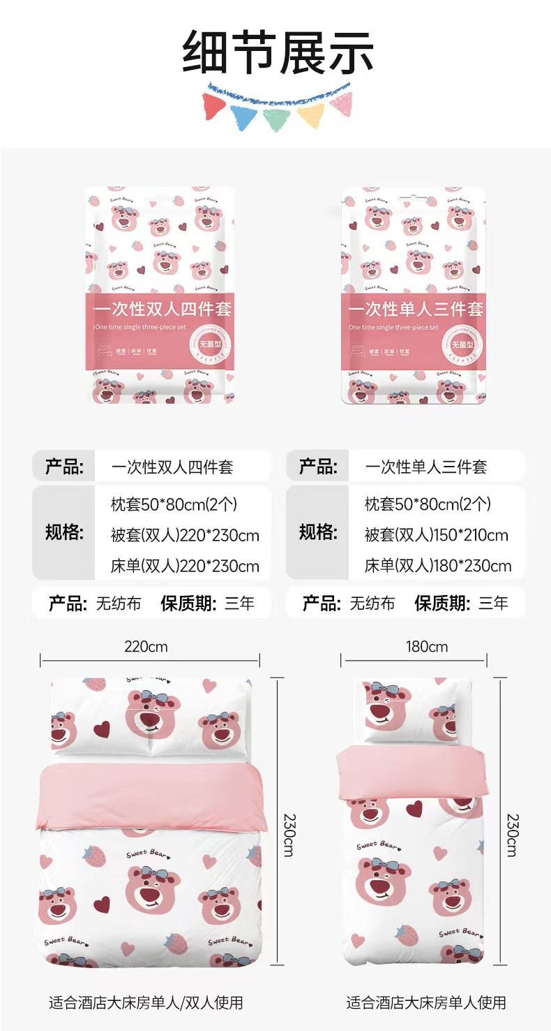 | single 3 pcs set [1 pack] soft and skin-friendly(单人三件套【1包】软糯亲肤) | USD $3.2 | 99999 piece available |