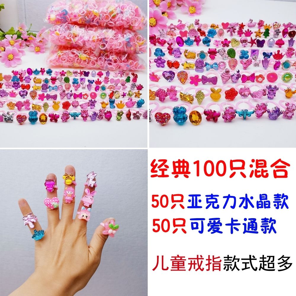 儿童戒指可爱卡通幼儿园赠品小孩女童礼物公主仿钻石水晶玩具宝石