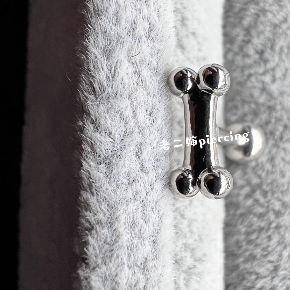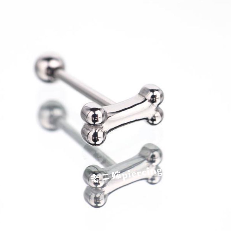 老二婶 钛钢银色骨头小狗可爱萌辣妹舌钉舌环土酷穿刺饰品