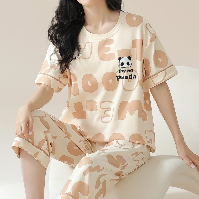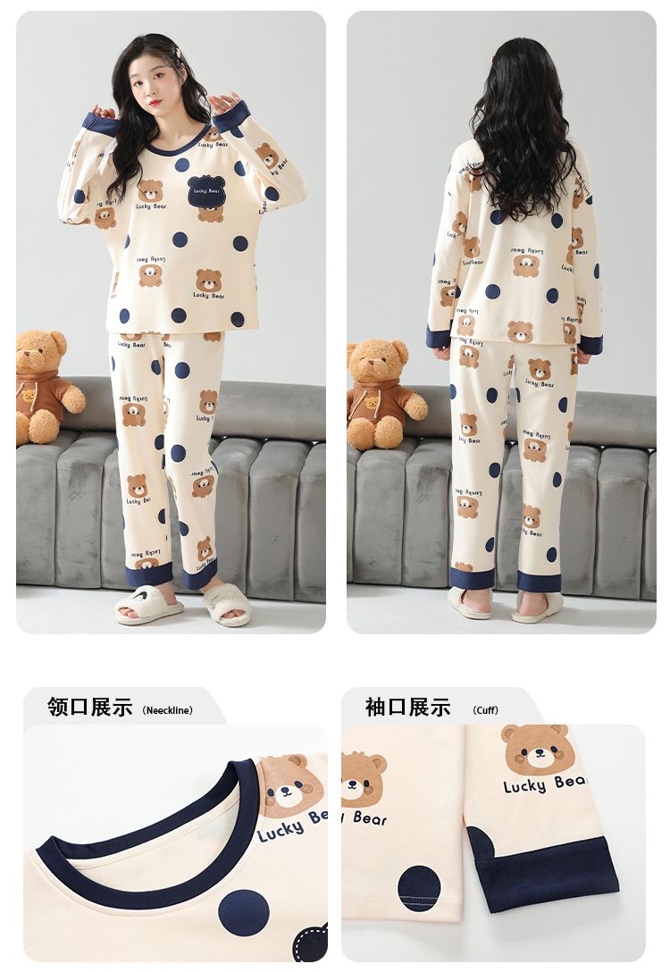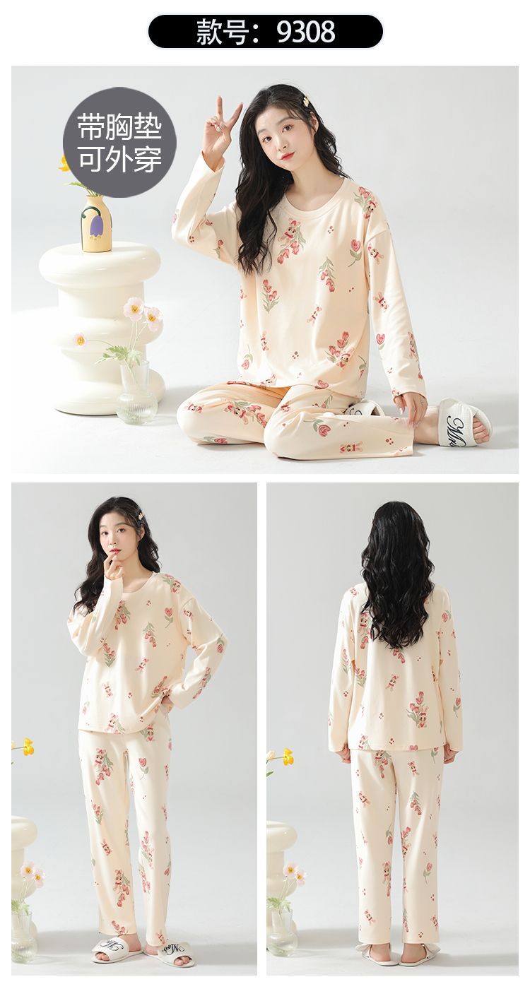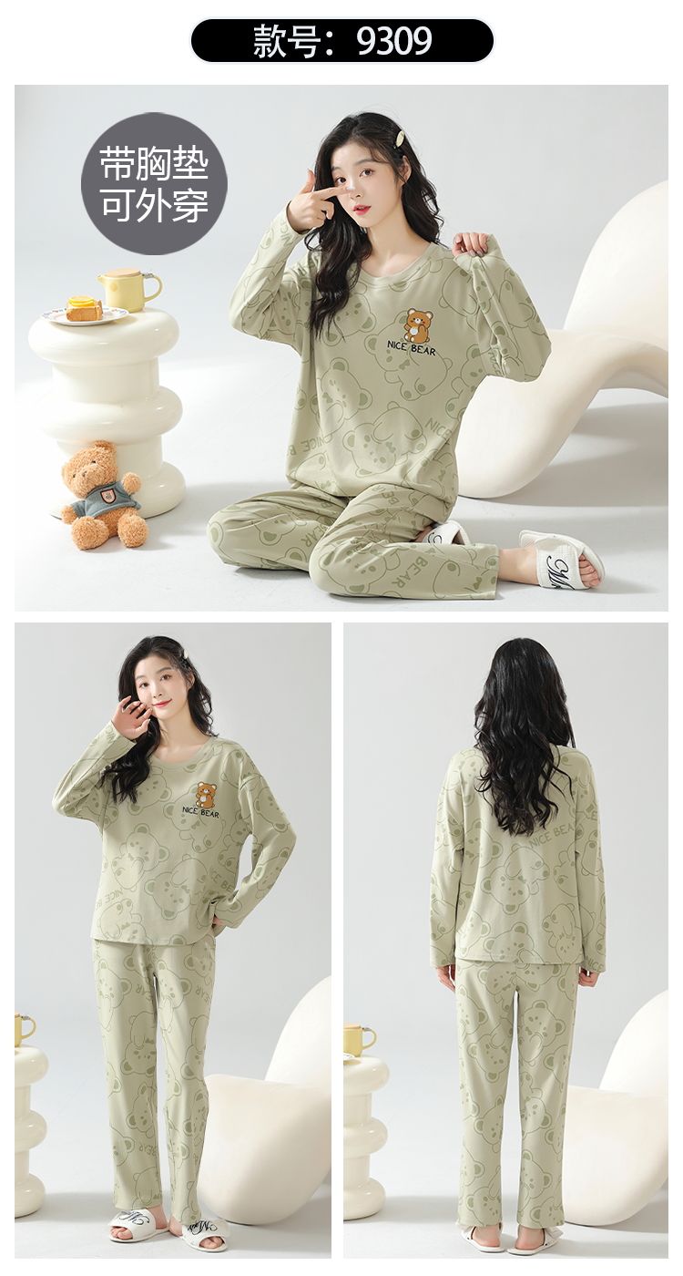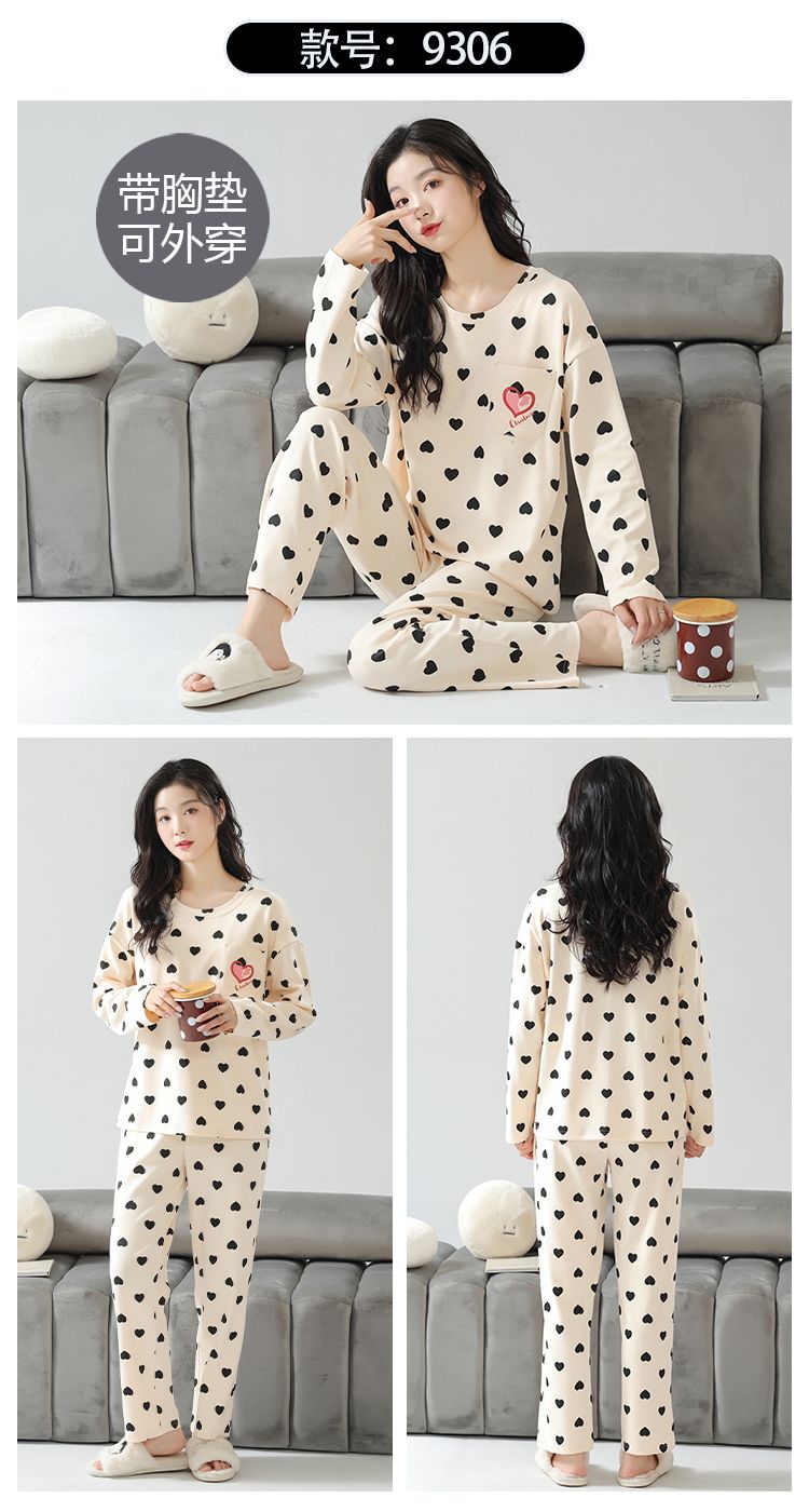 100%纯棉带胸垫睡衣女秋季长袖新款学生ins全棉春秋天家居服套装
