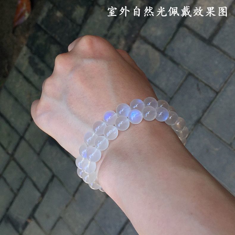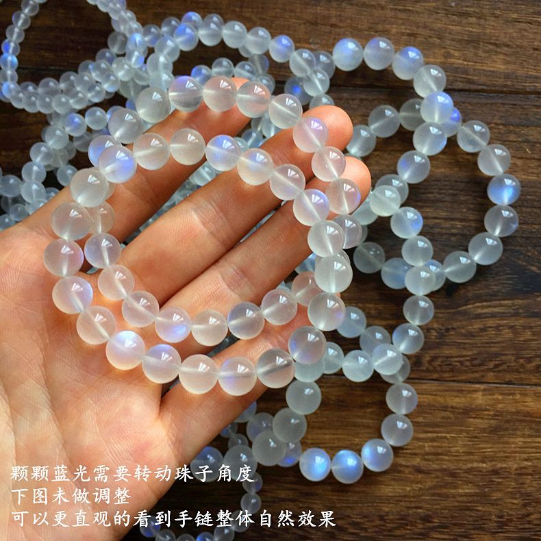 天然冰种蓝月光石手链女款奶油体月光石手串斯里兰卡情侣礼物闺蜜