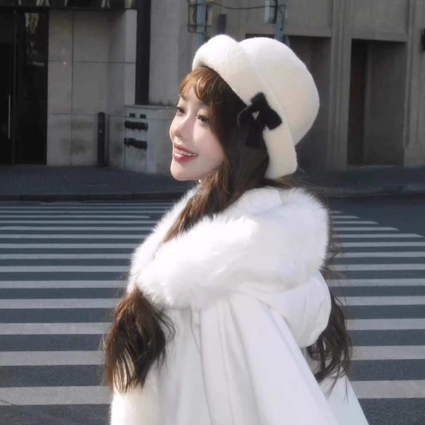 富家千金蝴蝶结礼帽女款小香风秋冬ins气质显脸小渔夫帽卷边盆帽