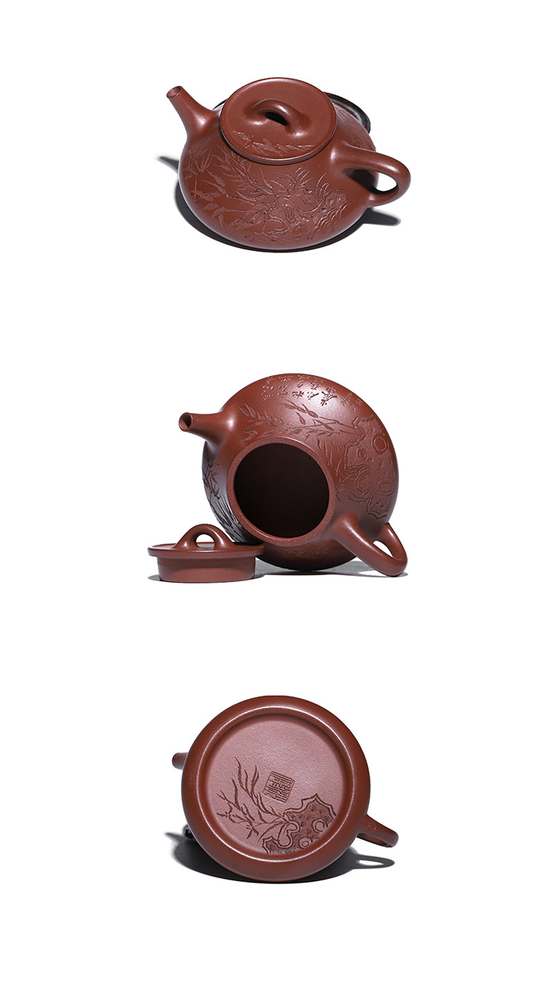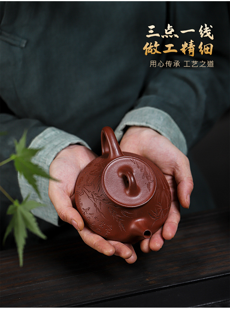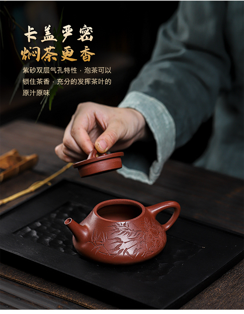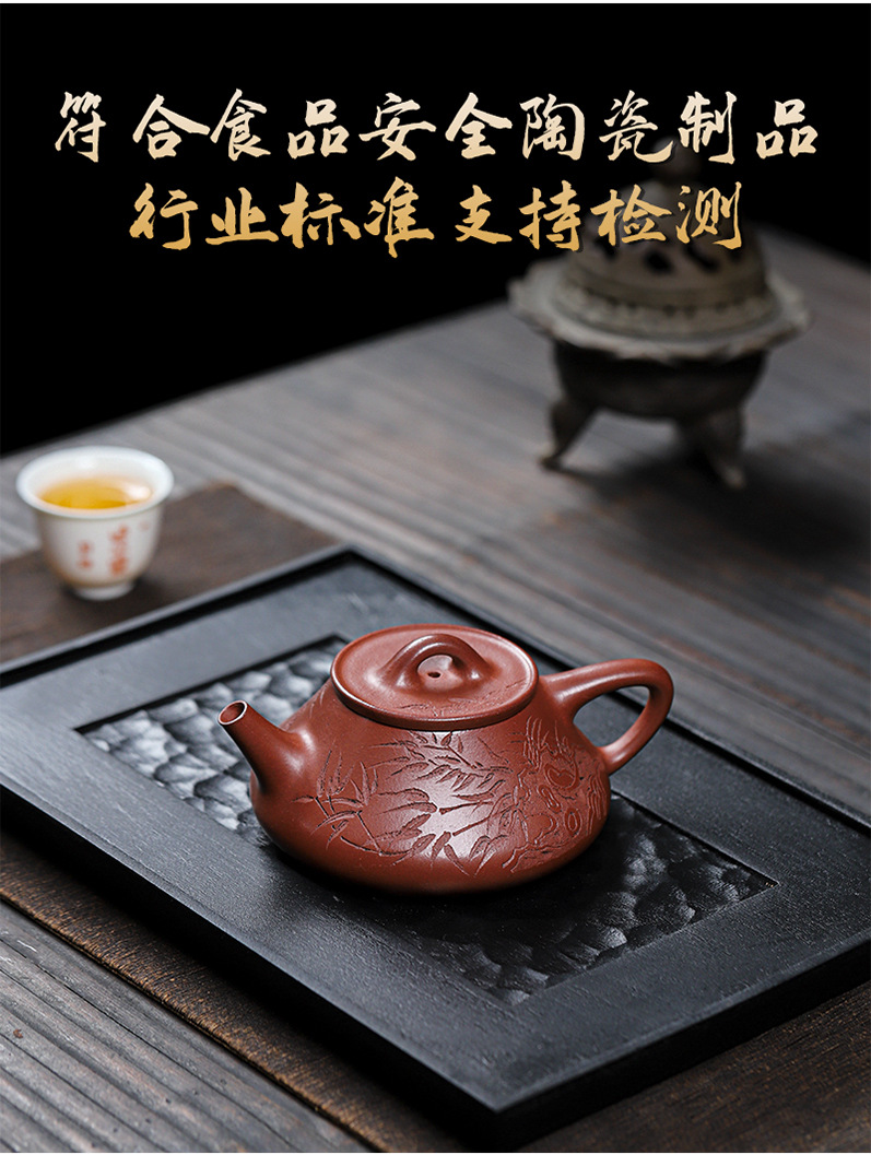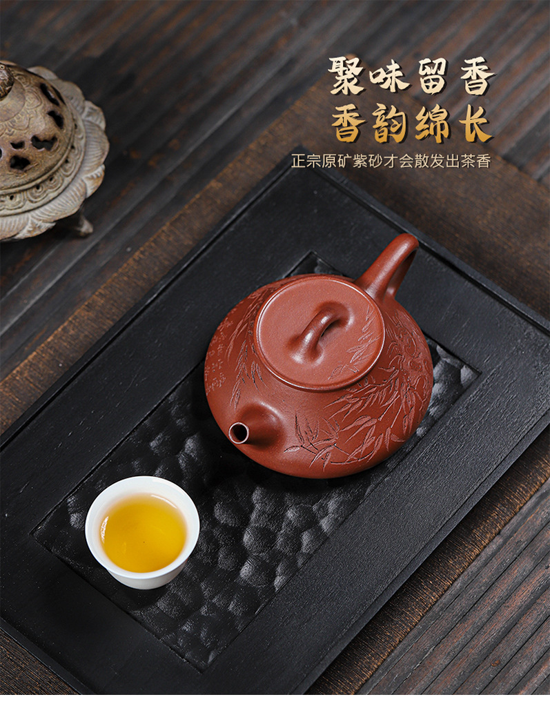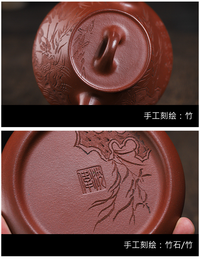 宜兴原矿无添加紫砂壶 红皮龙竹福满满 附检测报告家用茶具茶壶