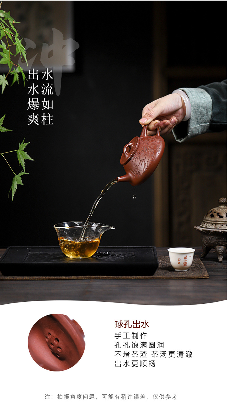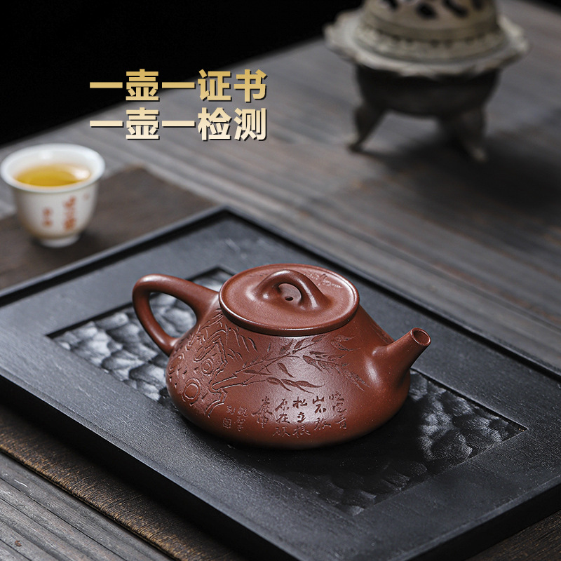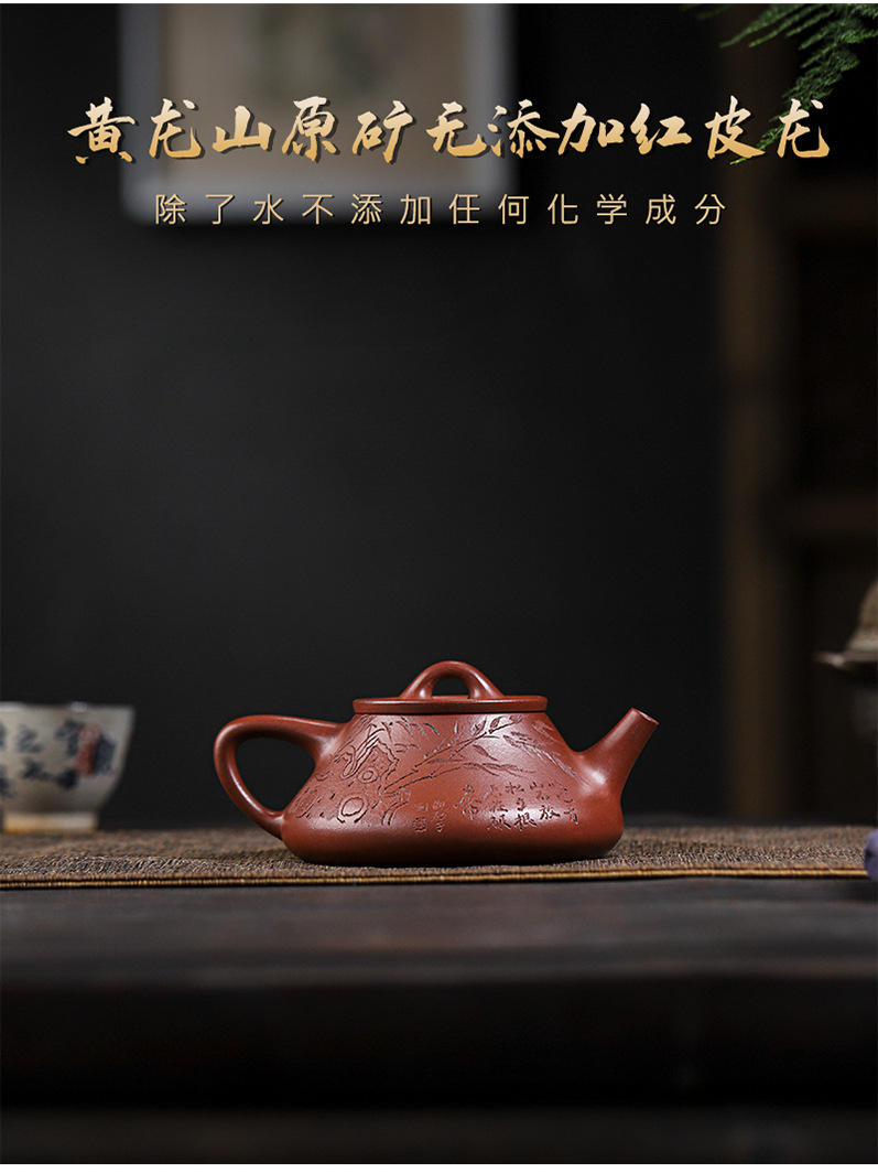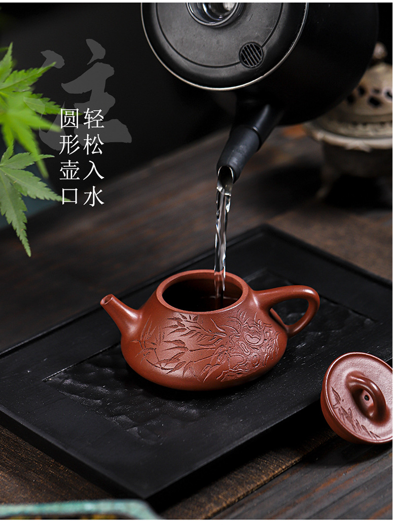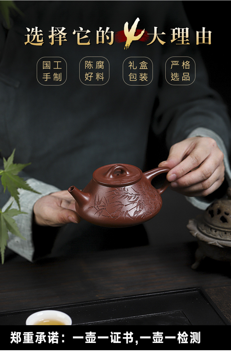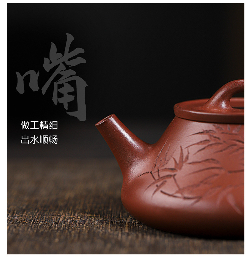宜兴原矿无添加紫砂壶 红皮龙竹福满满 附检测报告家用茶具茶壶