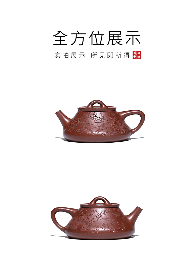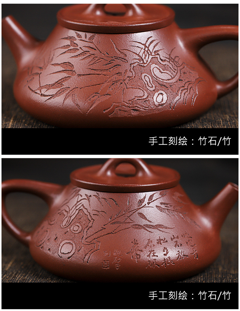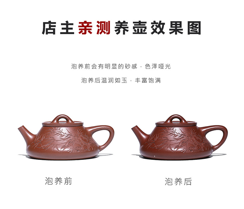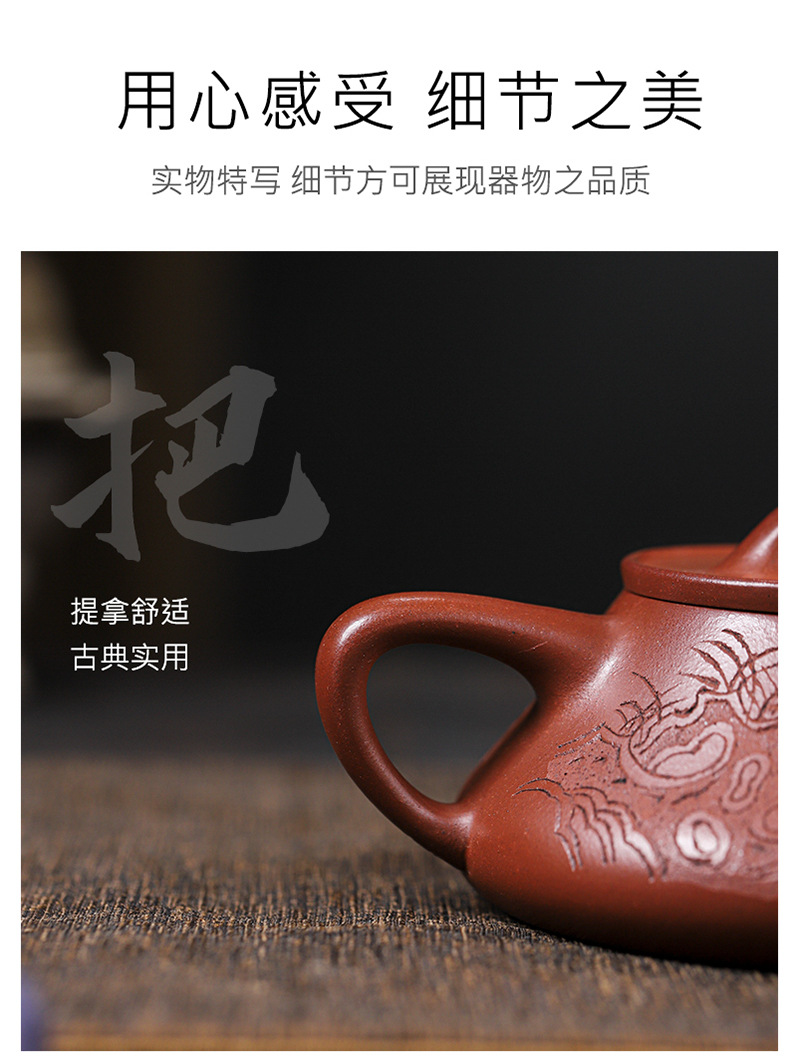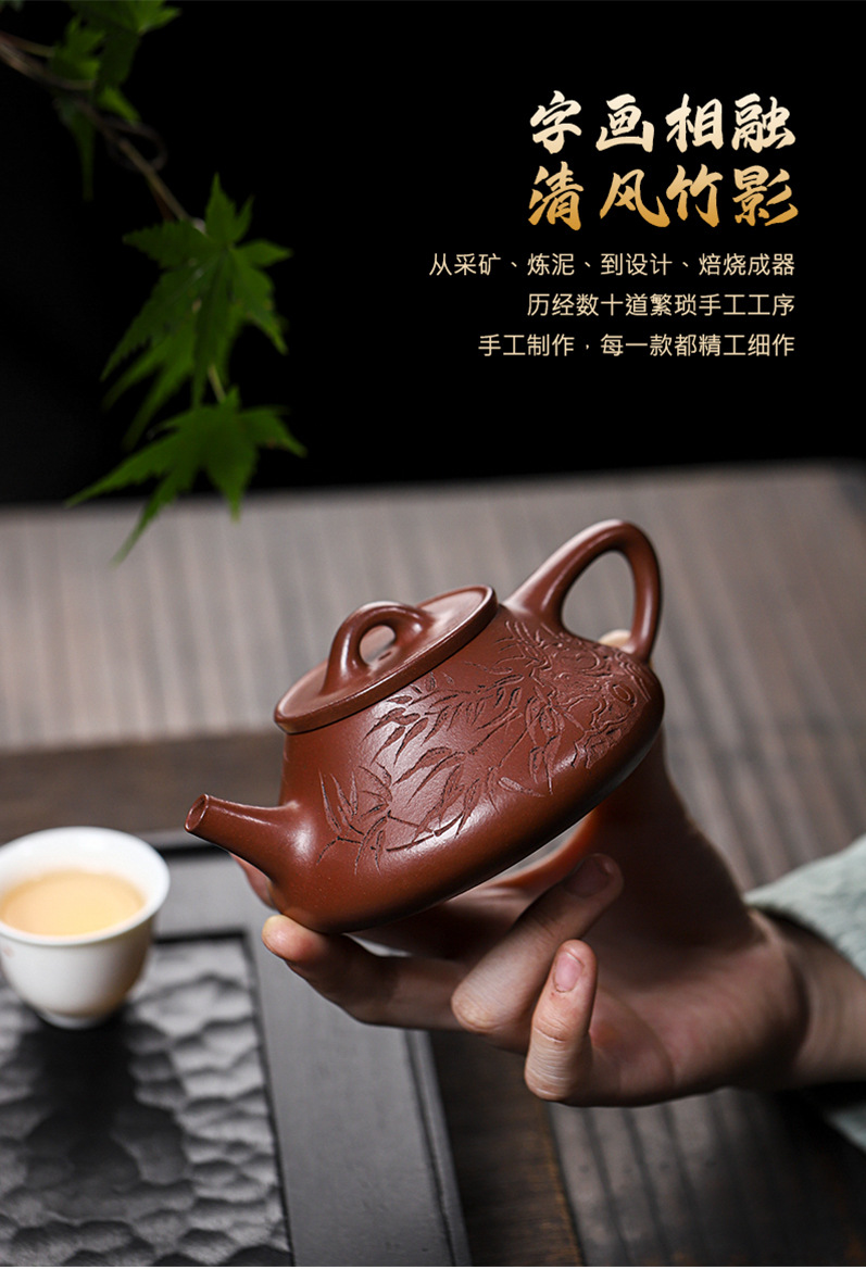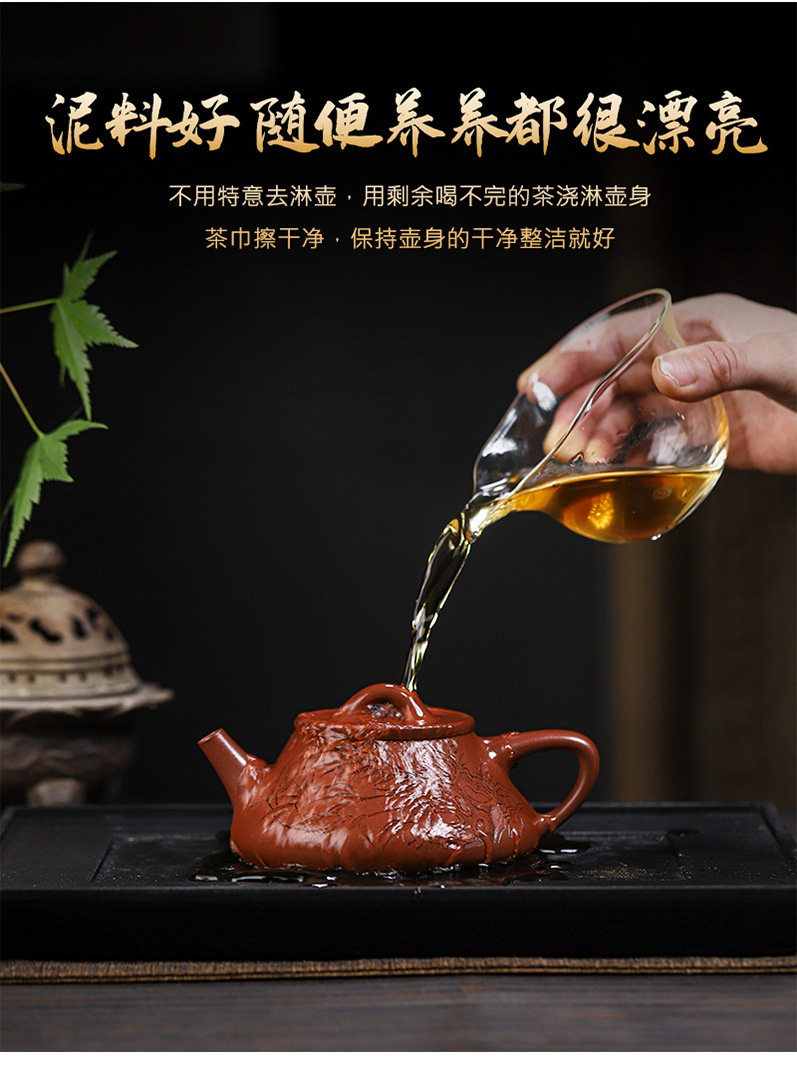 宜兴原矿无添加紫砂壶 红皮龙竹福满满 附检测报告家用茶具茶壶