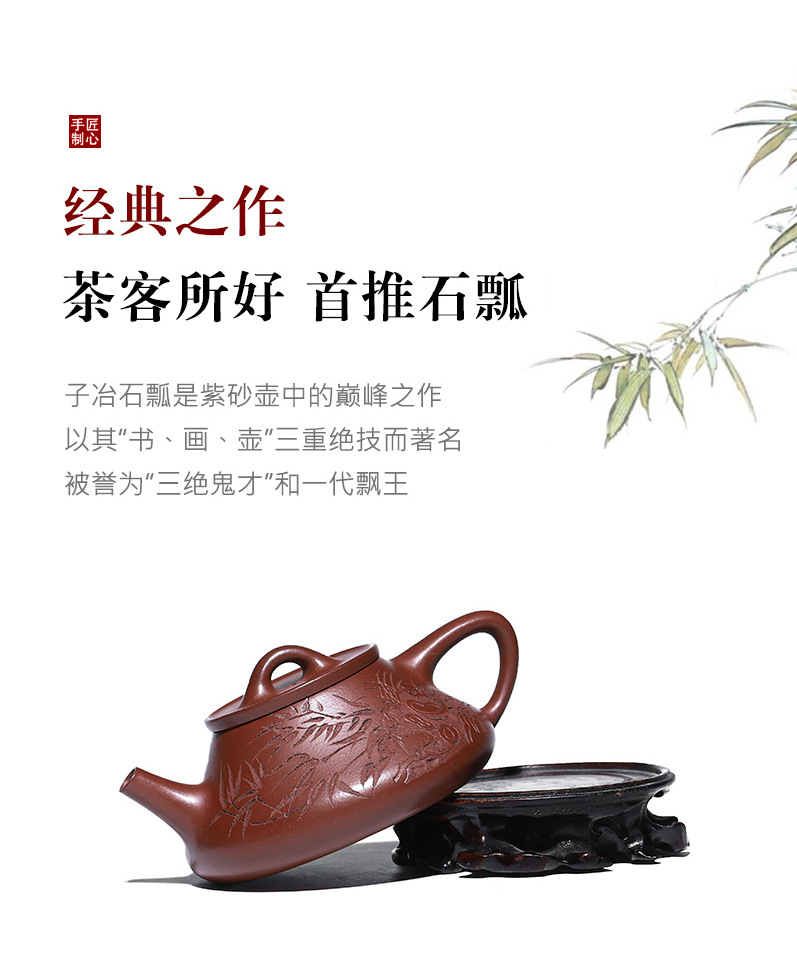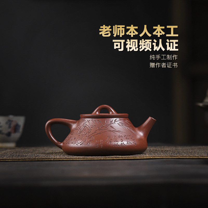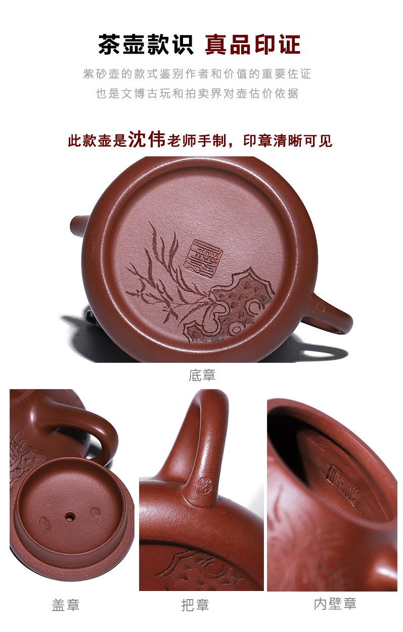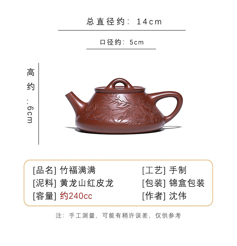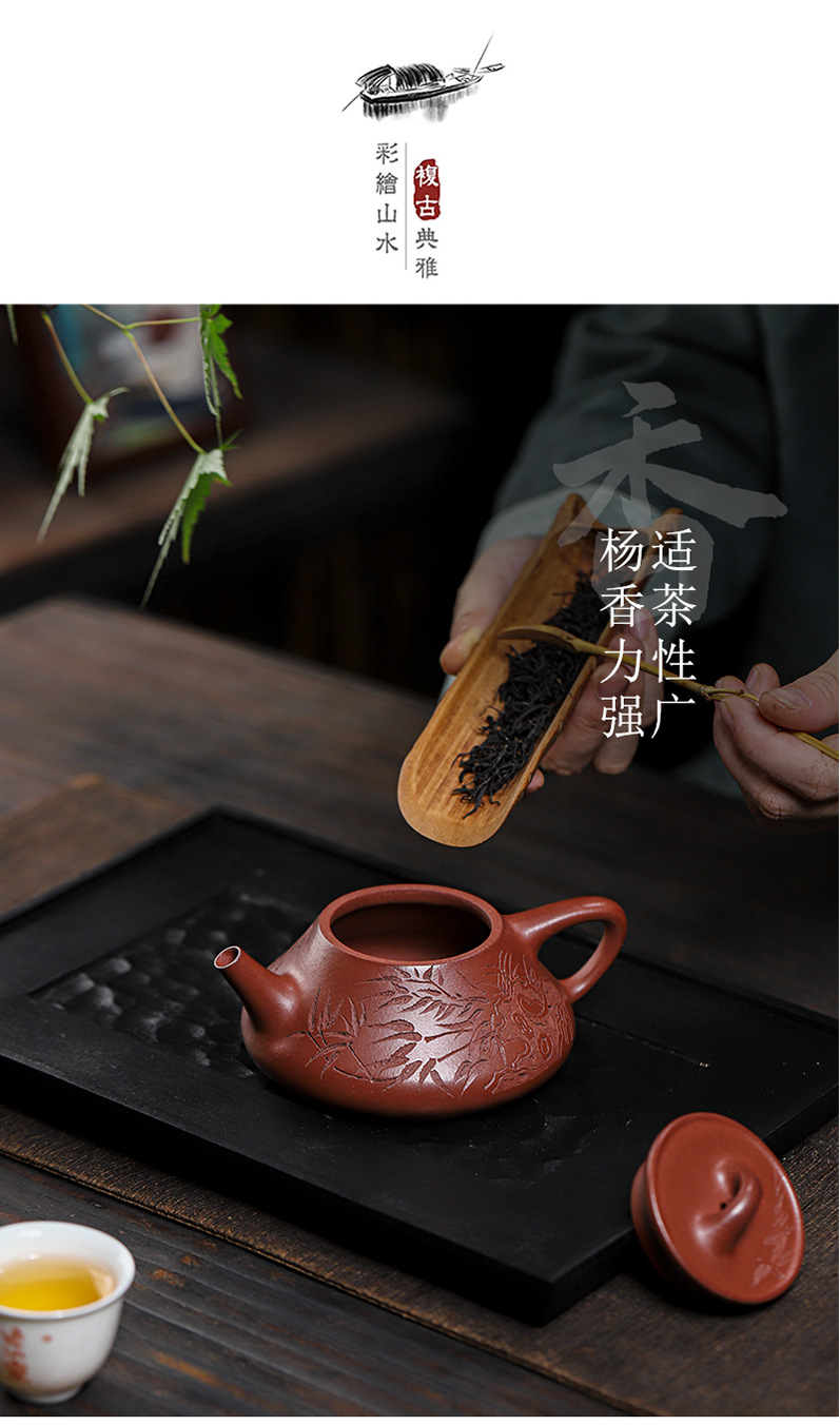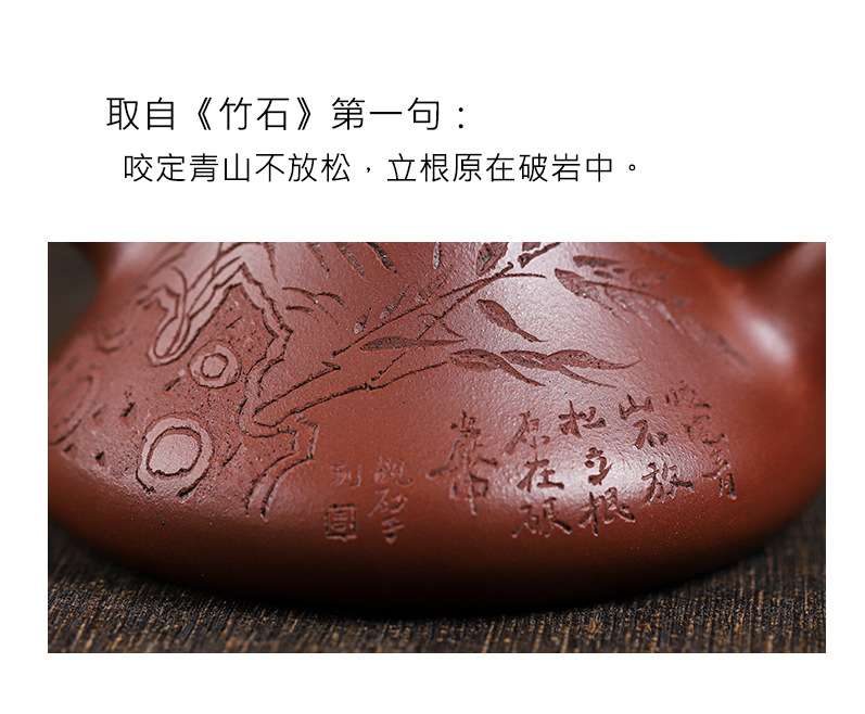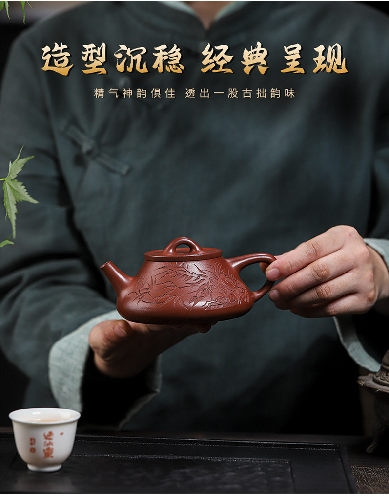 宜兴原矿无添加紫砂壶 红皮龙竹福满满 附检测报告家用茶具茶壶