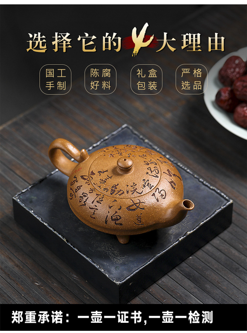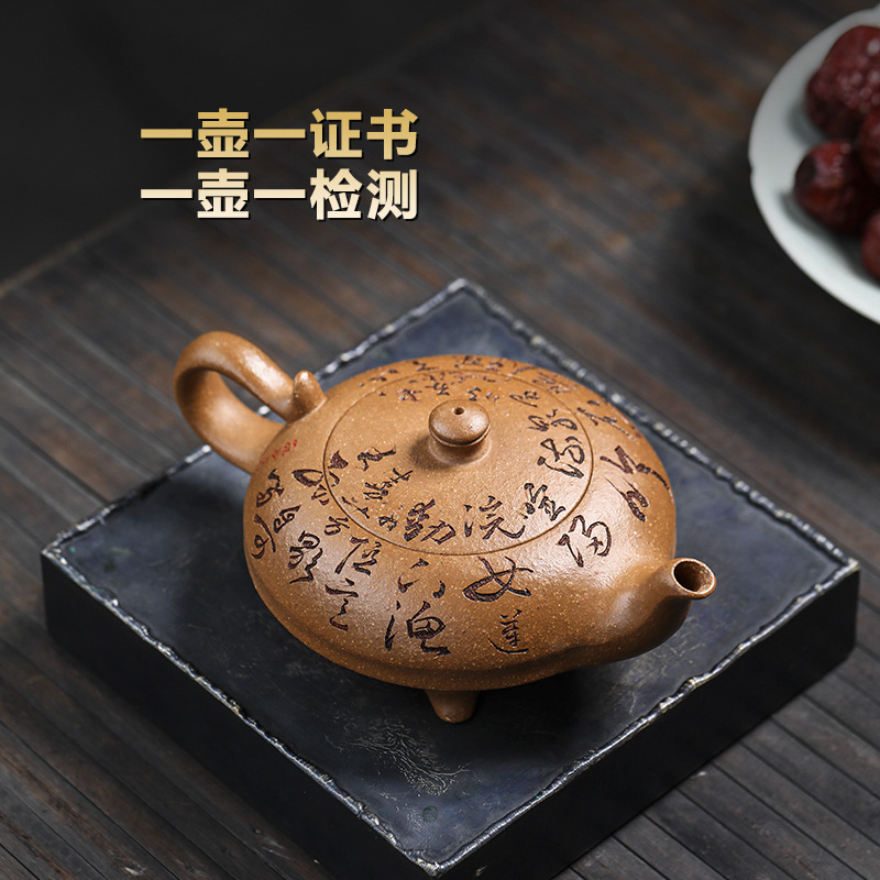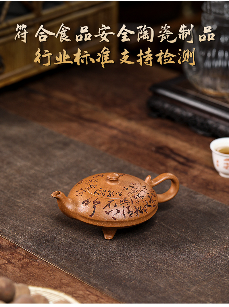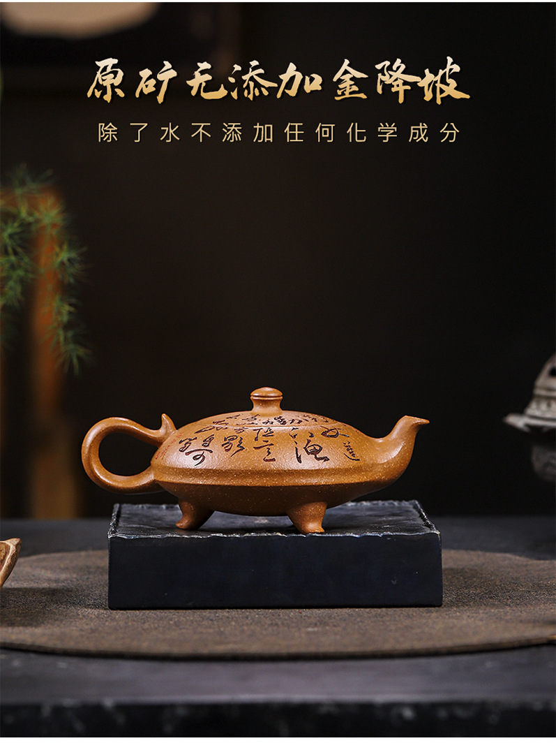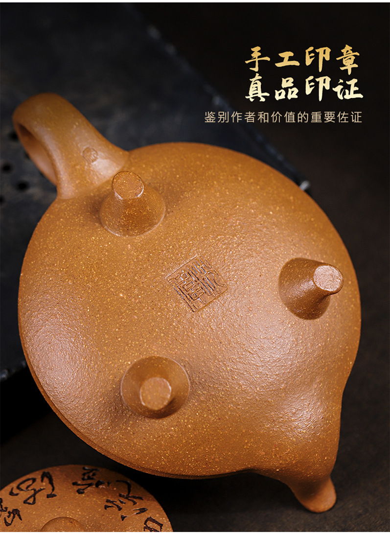 宜兴手工紫砂壶原矿金降坡三足鼎立证书齐全出水爆爽家用茶具茶壶