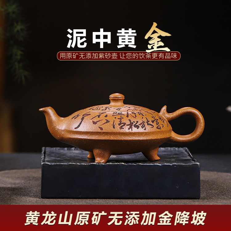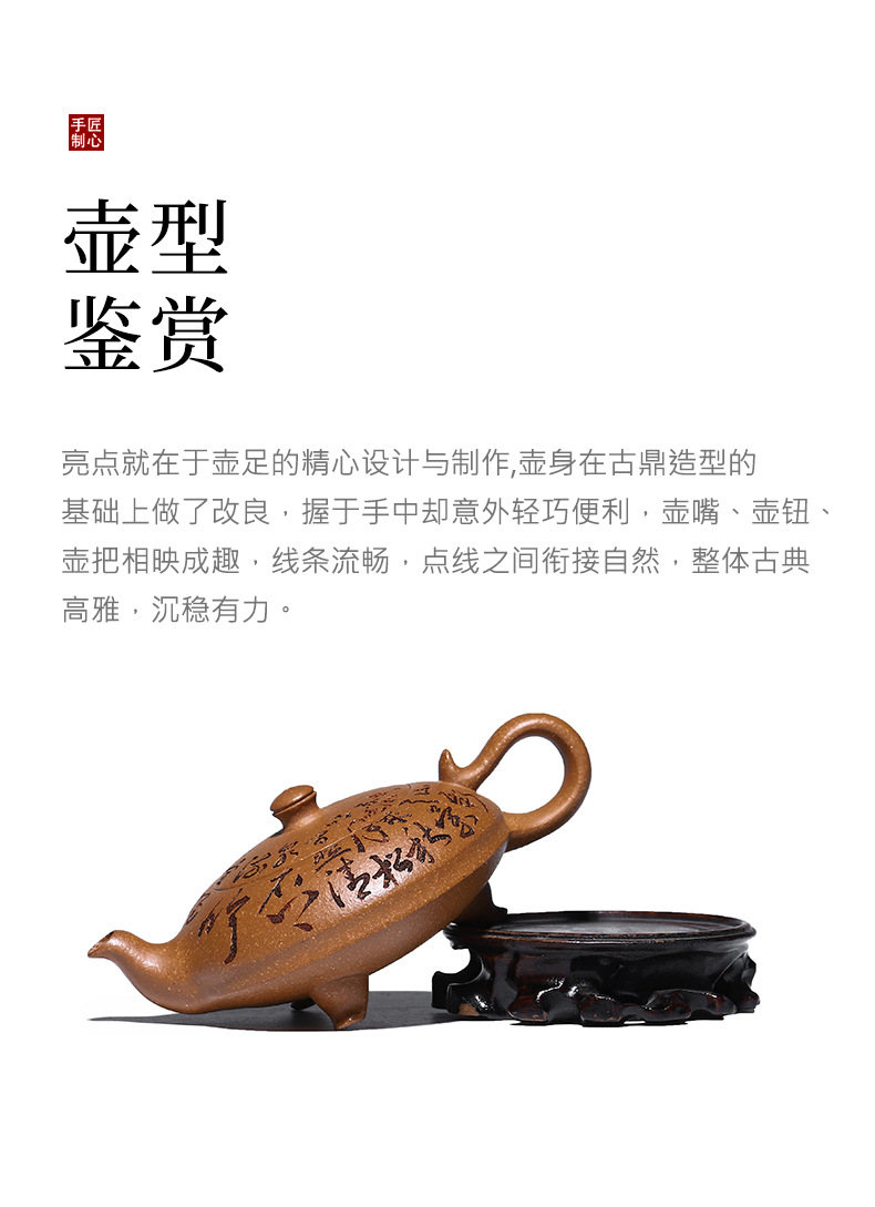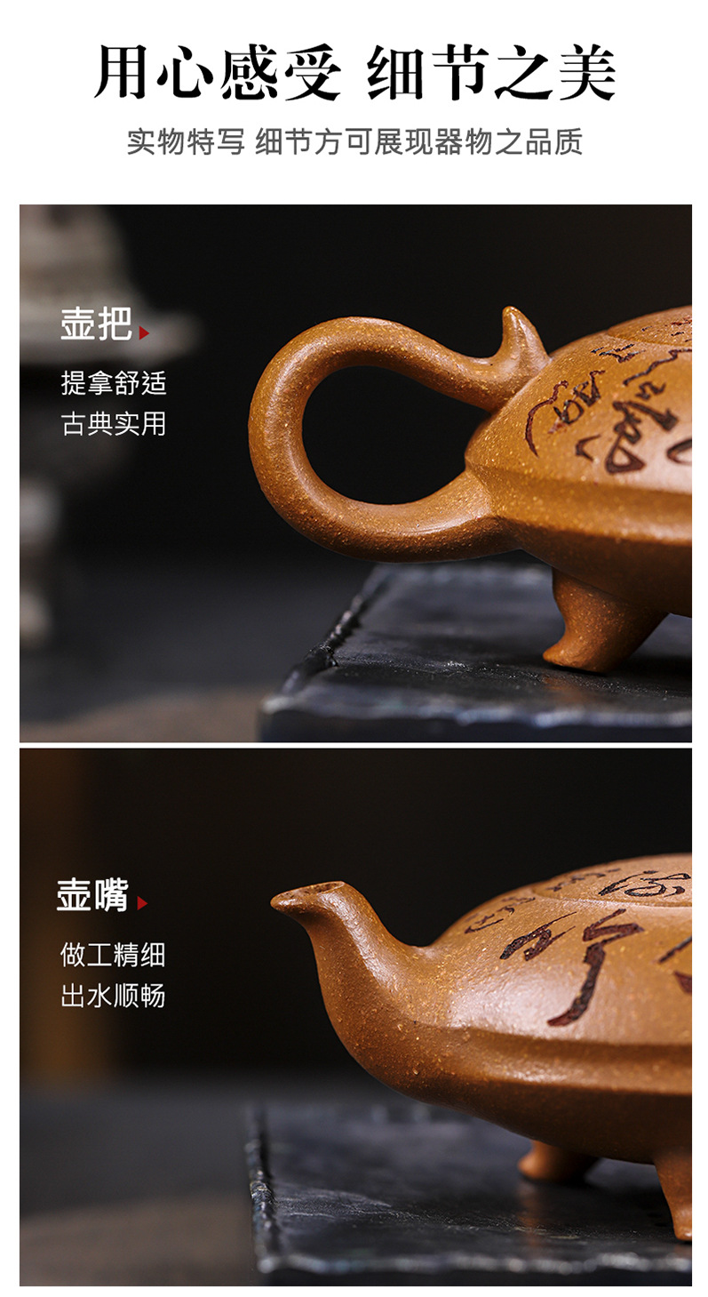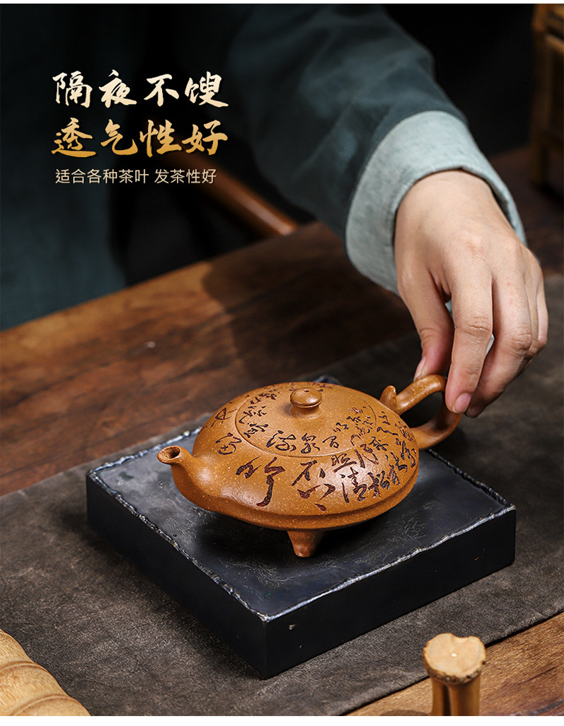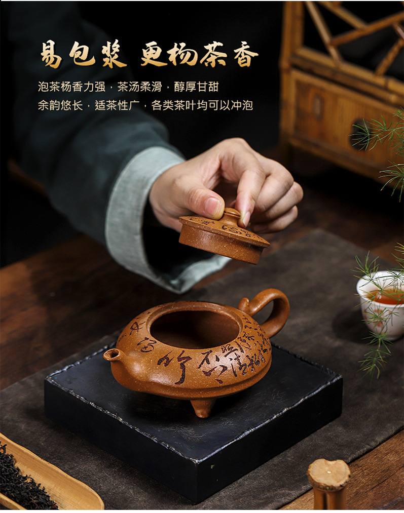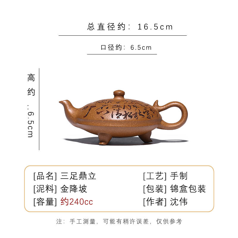 宜兴手工紫砂壶原矿金降坡三足鼎立证书齐全出水爆爽家用茶具茶壶