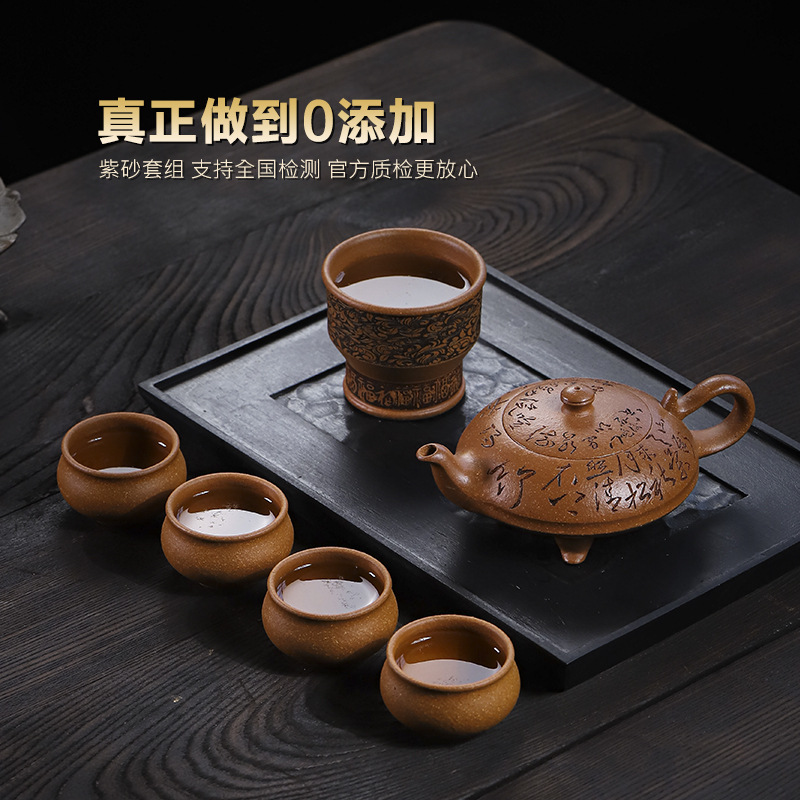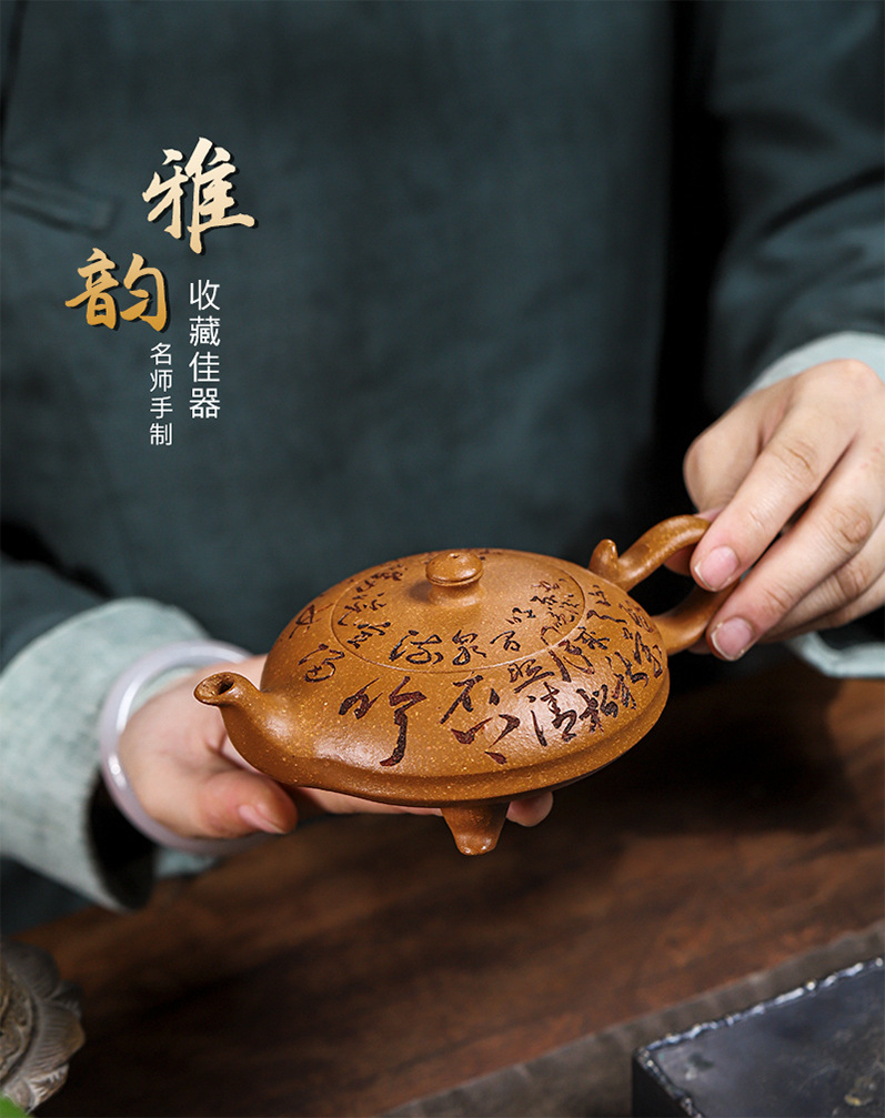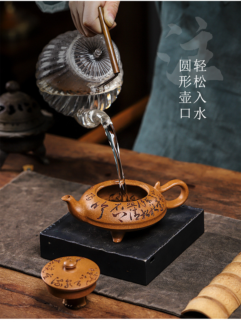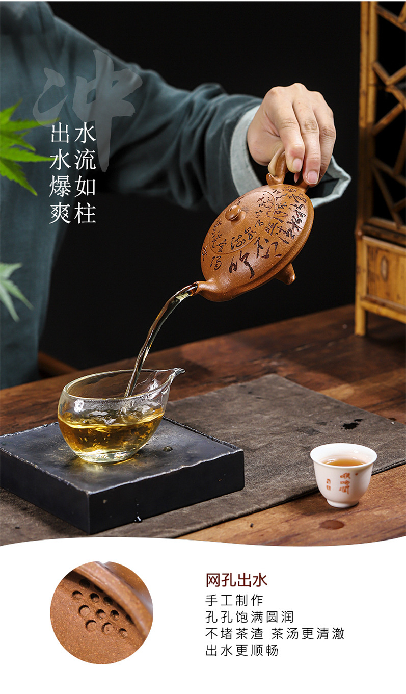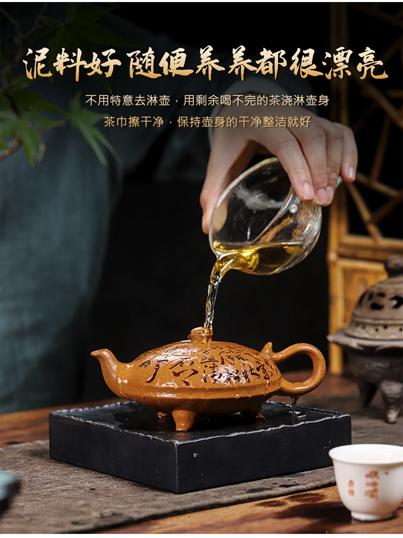宜兴手工紫砂壶原矿金降坡三足鼎立证书齐全出水爆爽家用茶具茶壶