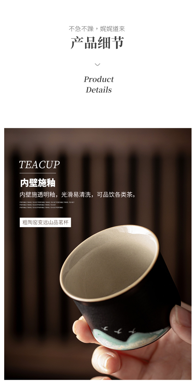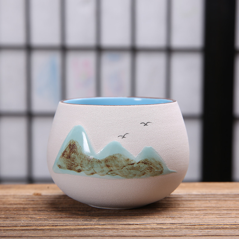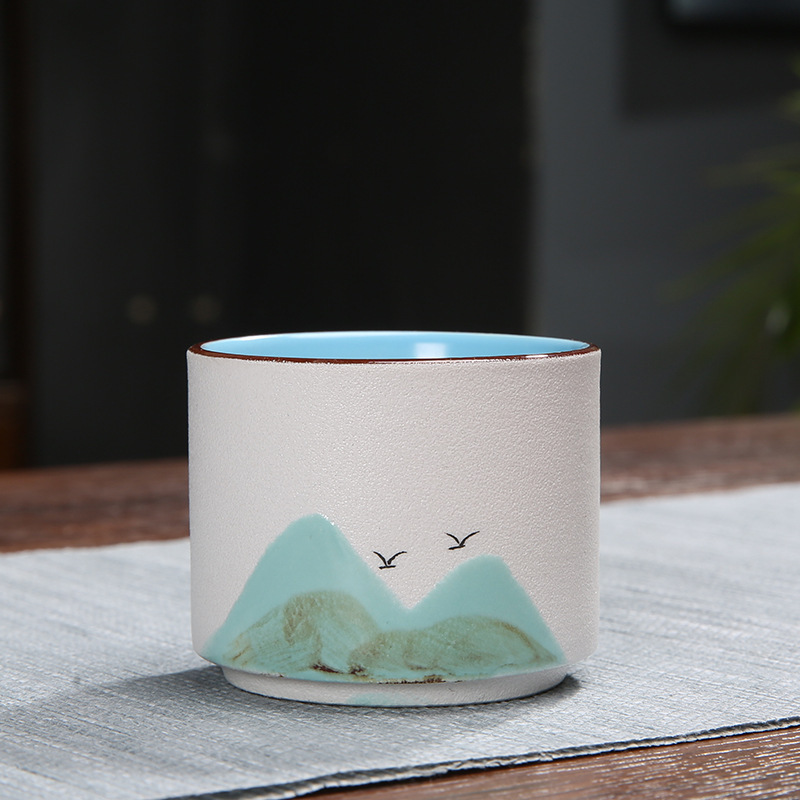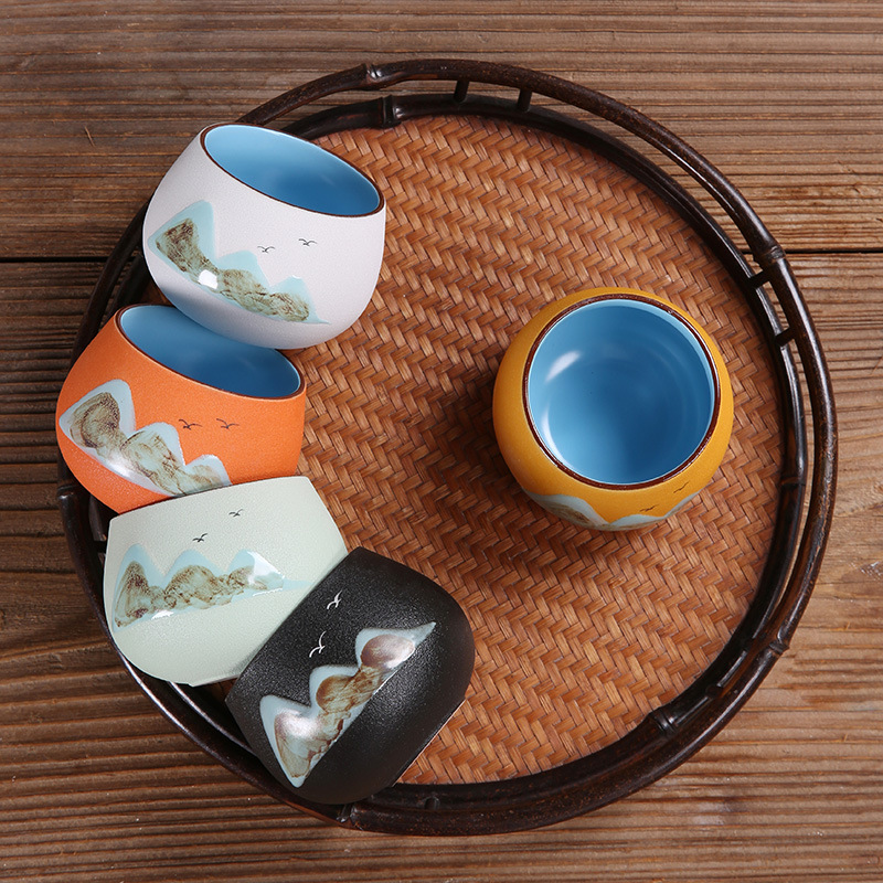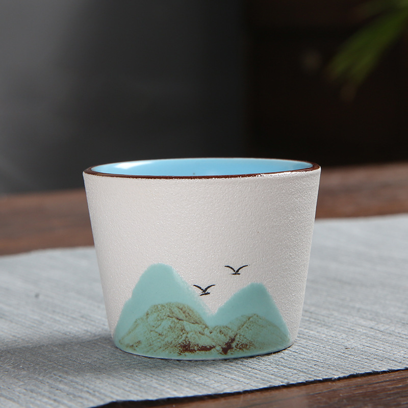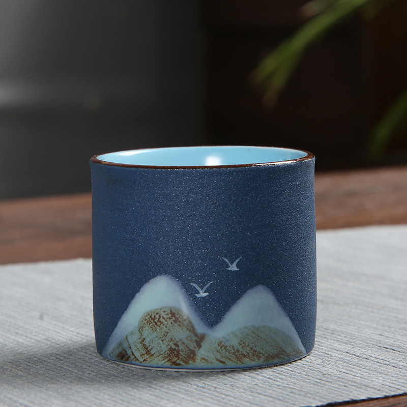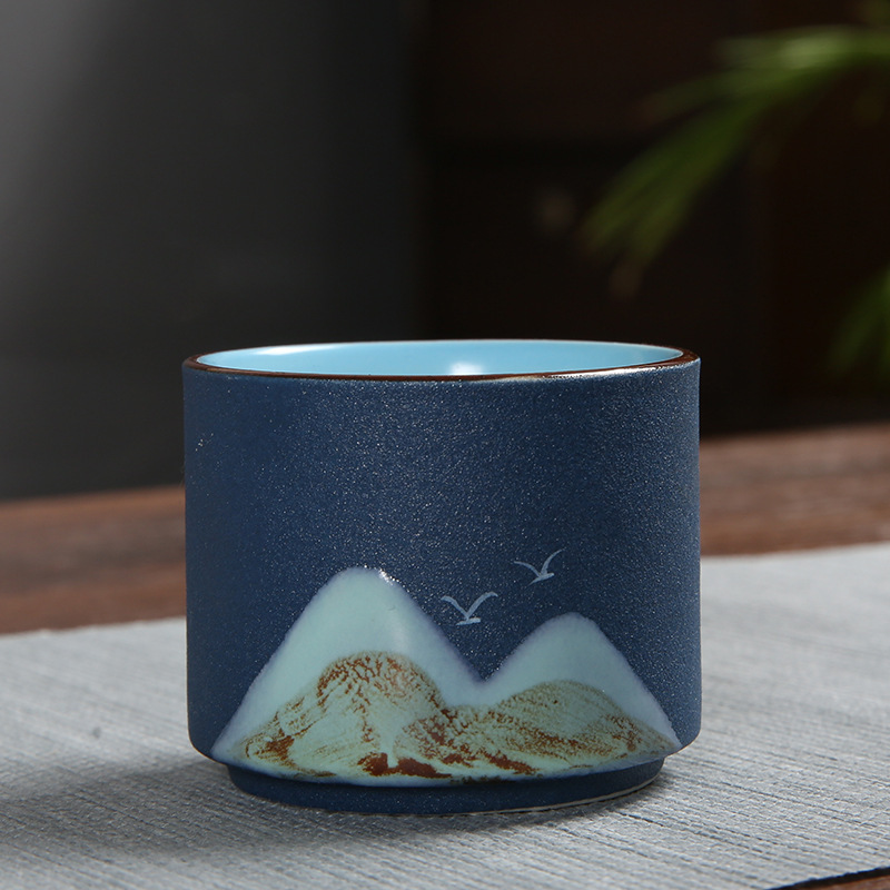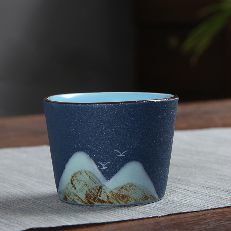 黑陶手绘远山茶杯禅意复古主人杯功夫茶具陶瓷品茗杯家用待客喝茶