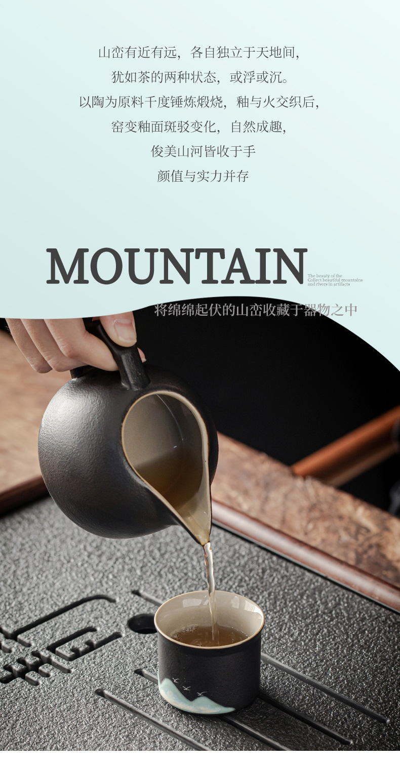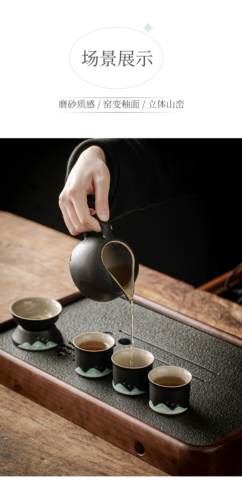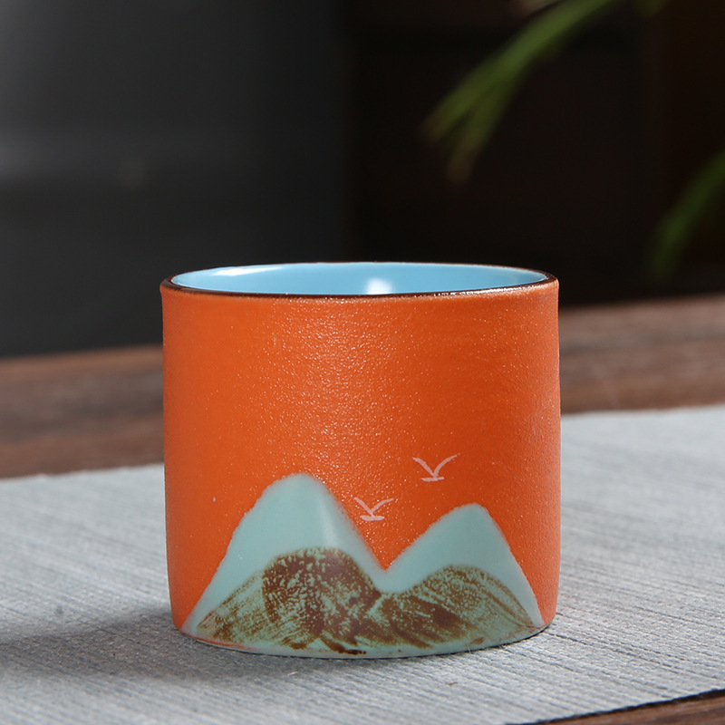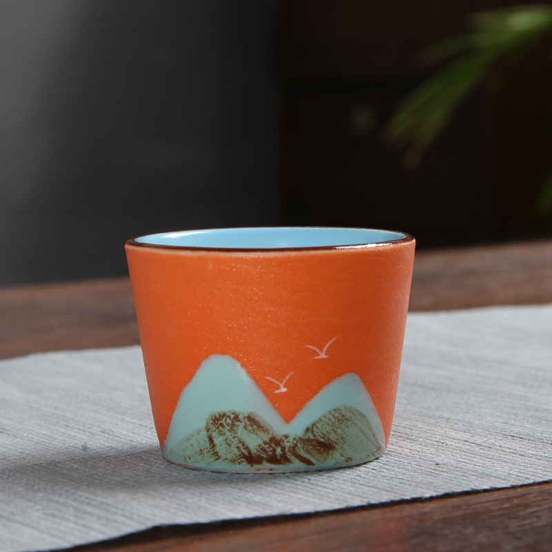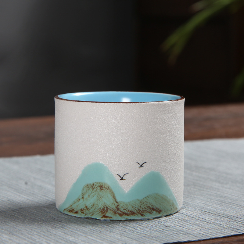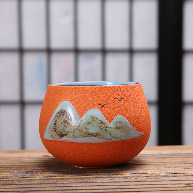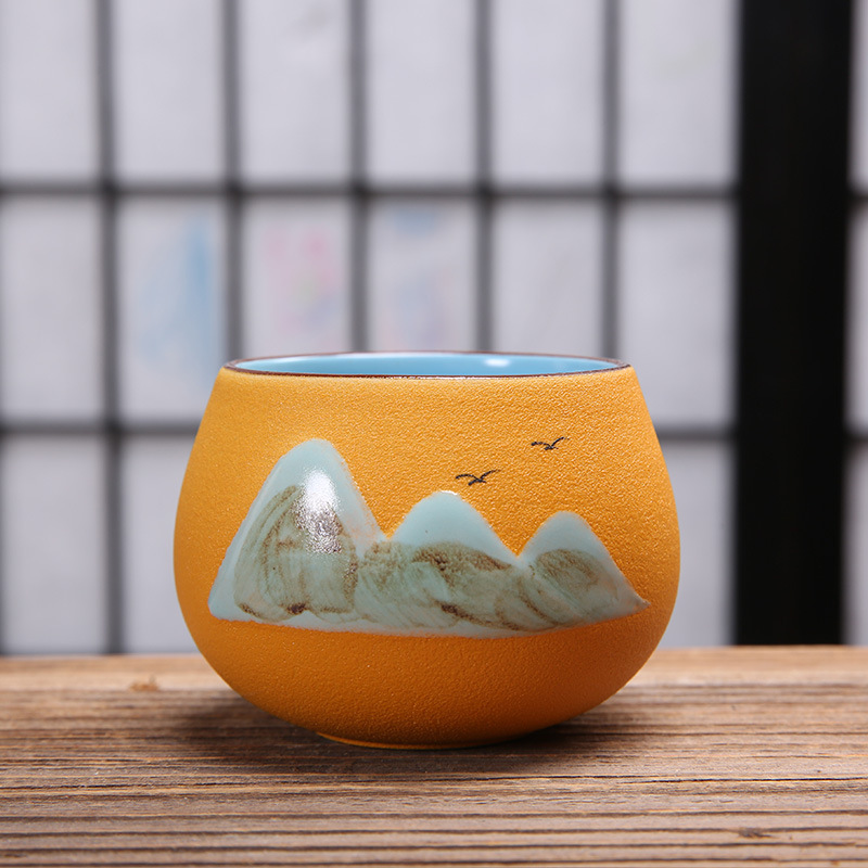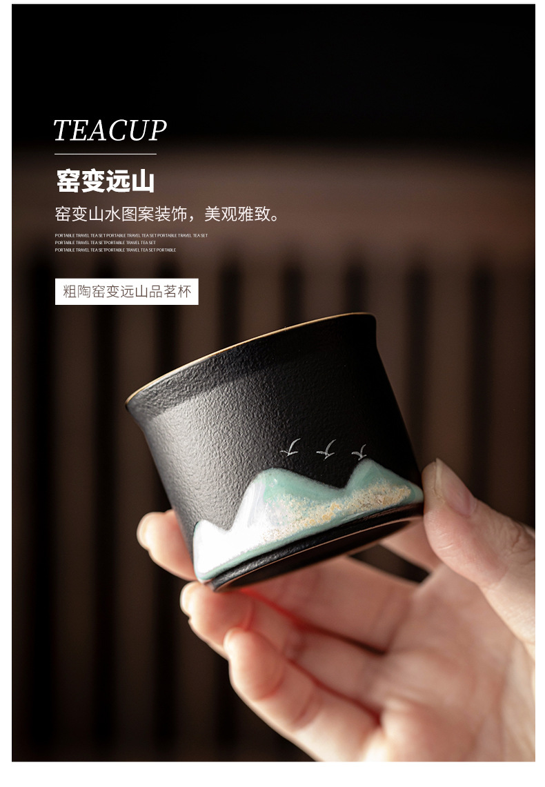 黑陶手绘远山茶杯禅意复古主人杯功夫茶具陶瓷品茗杯家用待客喝茶