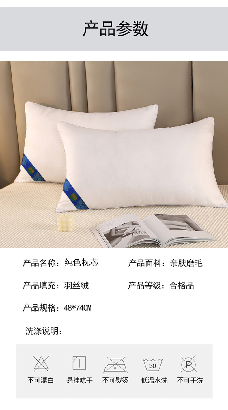 酒店枕头48x74cm枕套用高枕不塌羽丝绒单人宿舍枕芯带枕套一套装