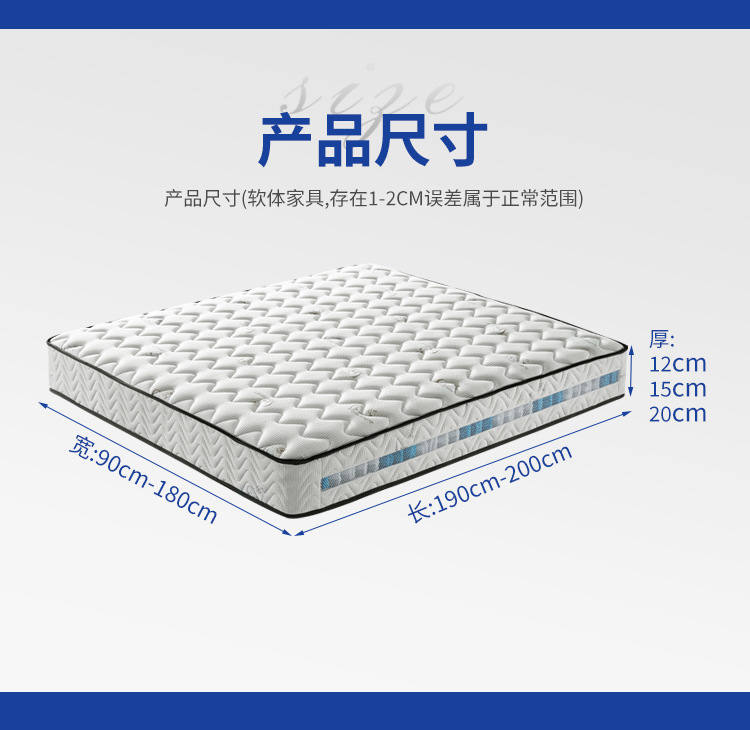 家用独立弹簧床垫乳胶袋装20cm偏软厚大厅酒店民宿学生用席梦思