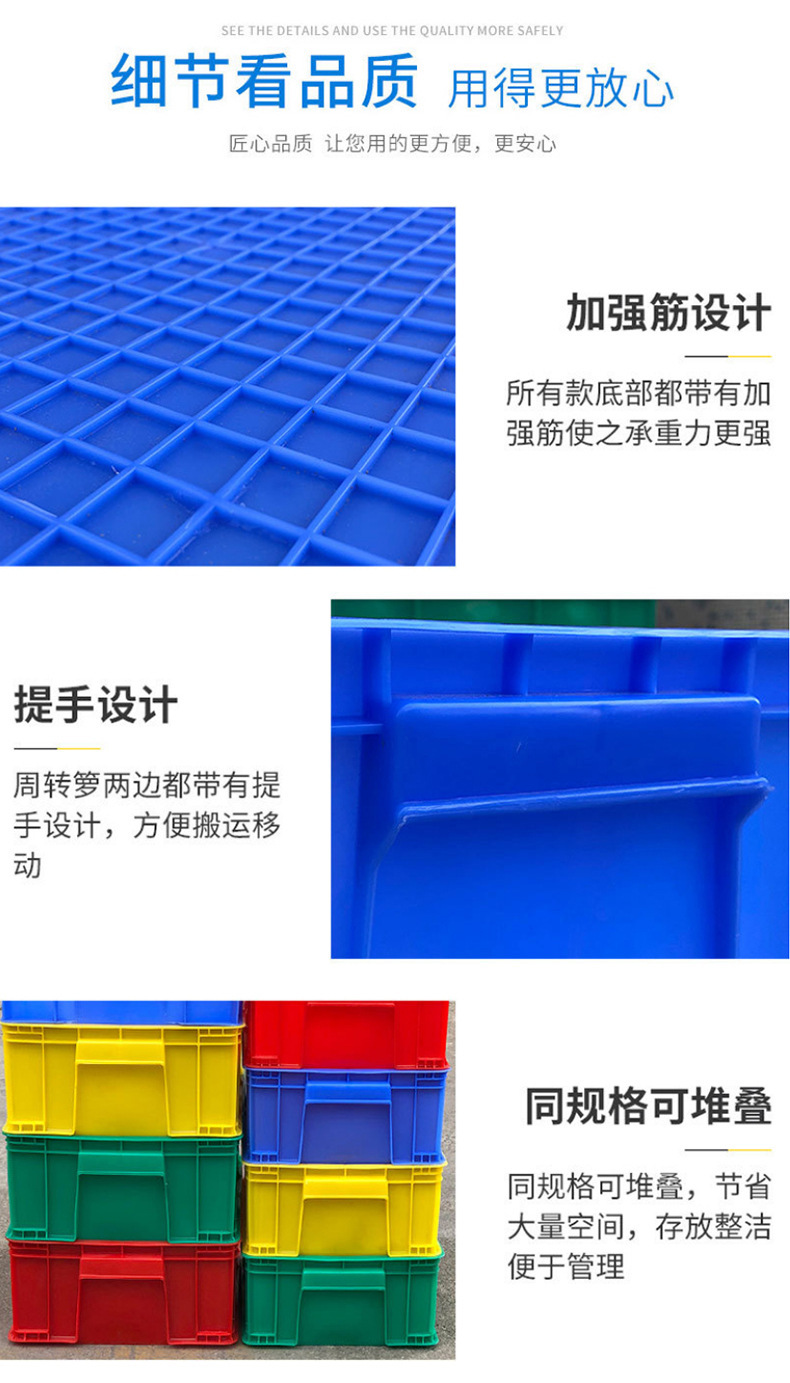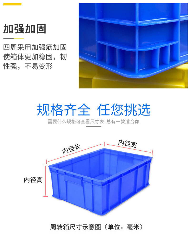 塑料周转箱可带箱盖长方形加厚蓝色塑料箱仓库物流中转箱大号胶箱