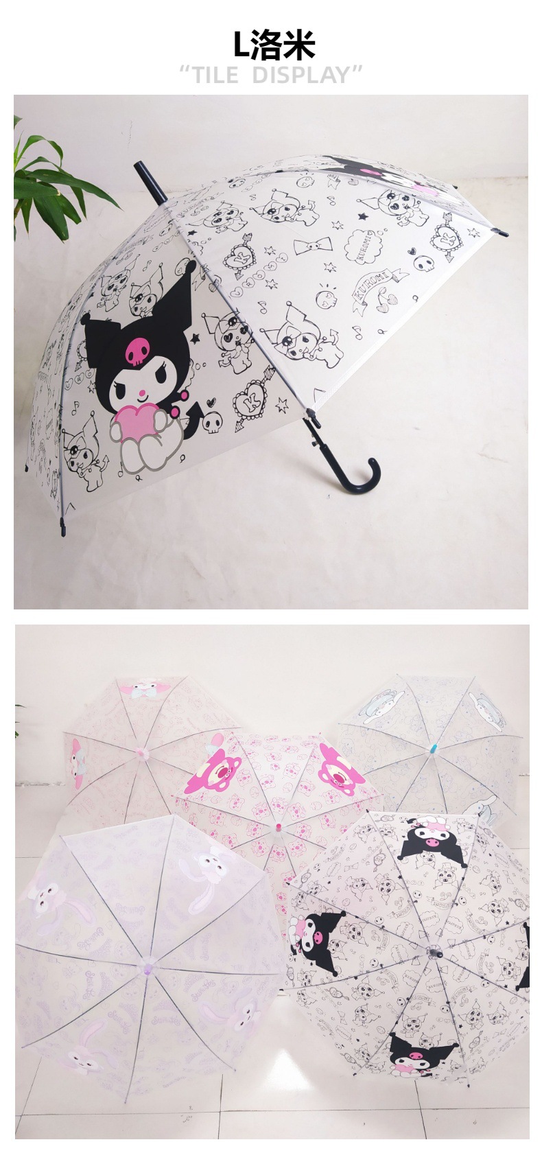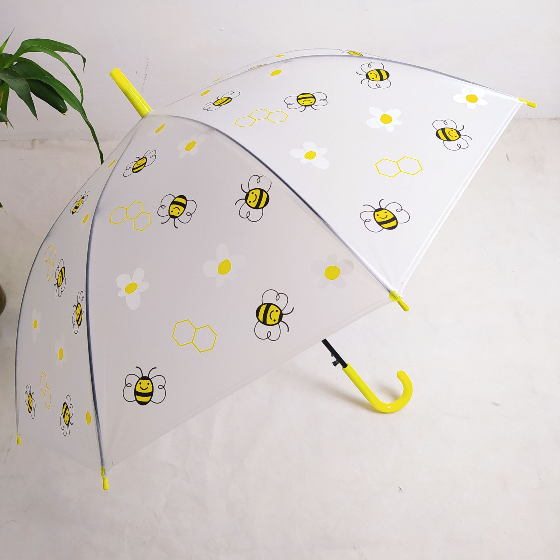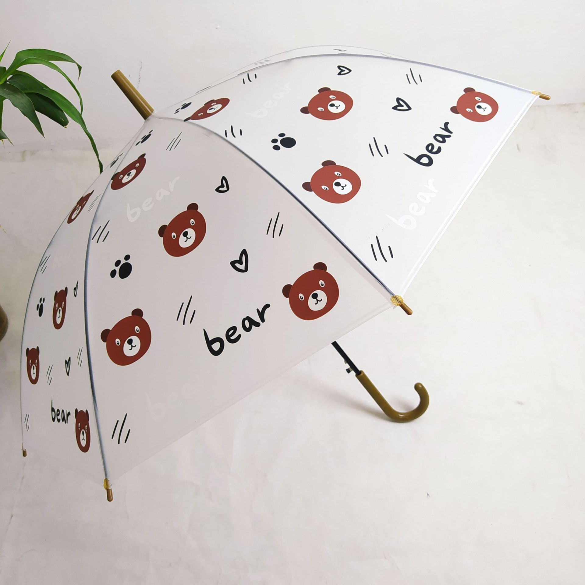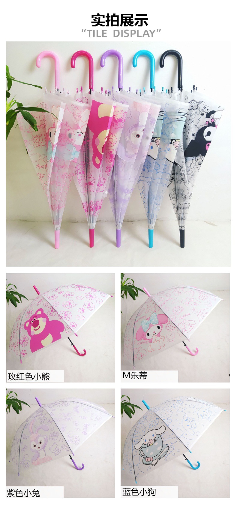 可爱小清新半自动透明雨伞直杆长柄儿童伞卡通学生磨砂透明伞批发
