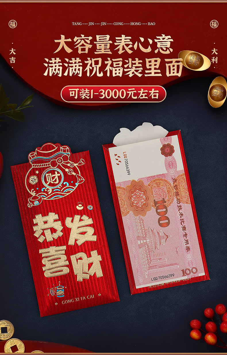 红包批发包邮新款利是封高档硬纸磨砂新年结婚千元百元红包袋