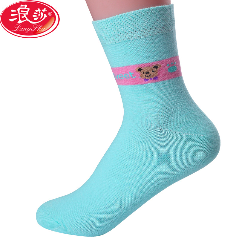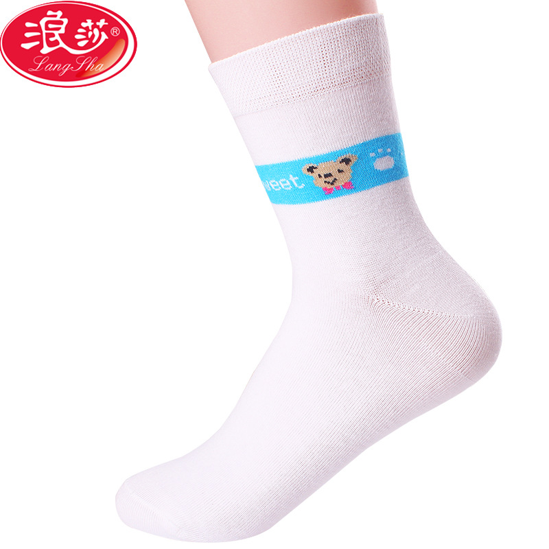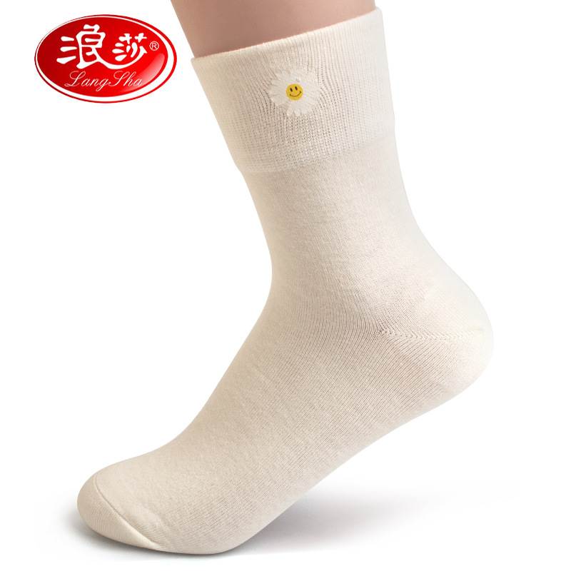 浪莎女棉袜秋冬纯棉厚款袜子清新时尚全棉防臭女袜中筒袜运动休闲