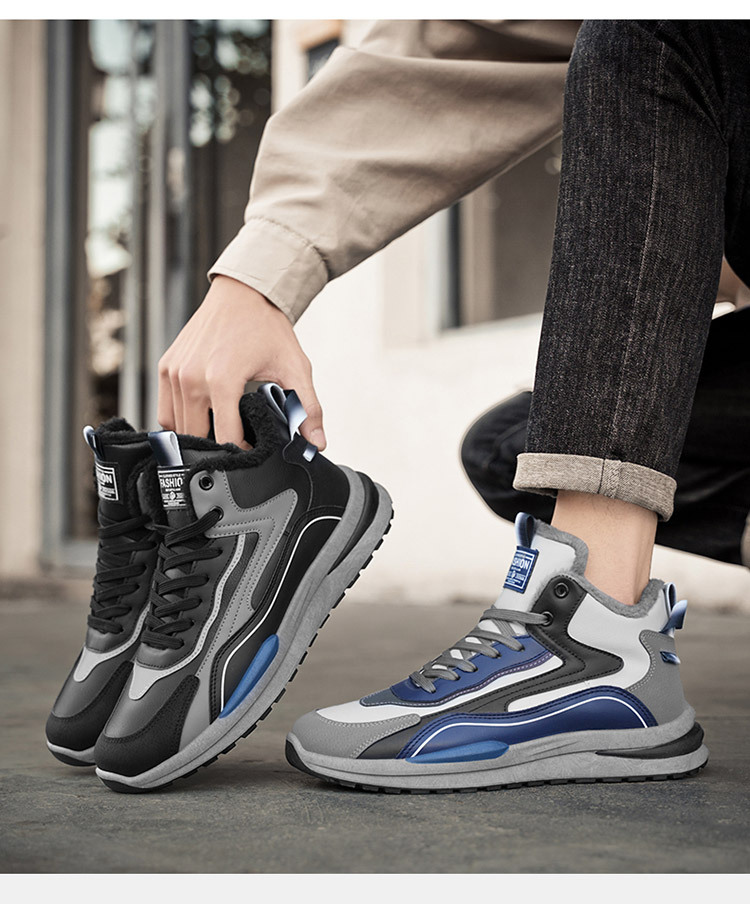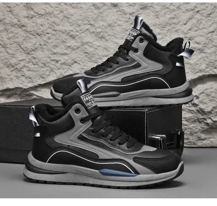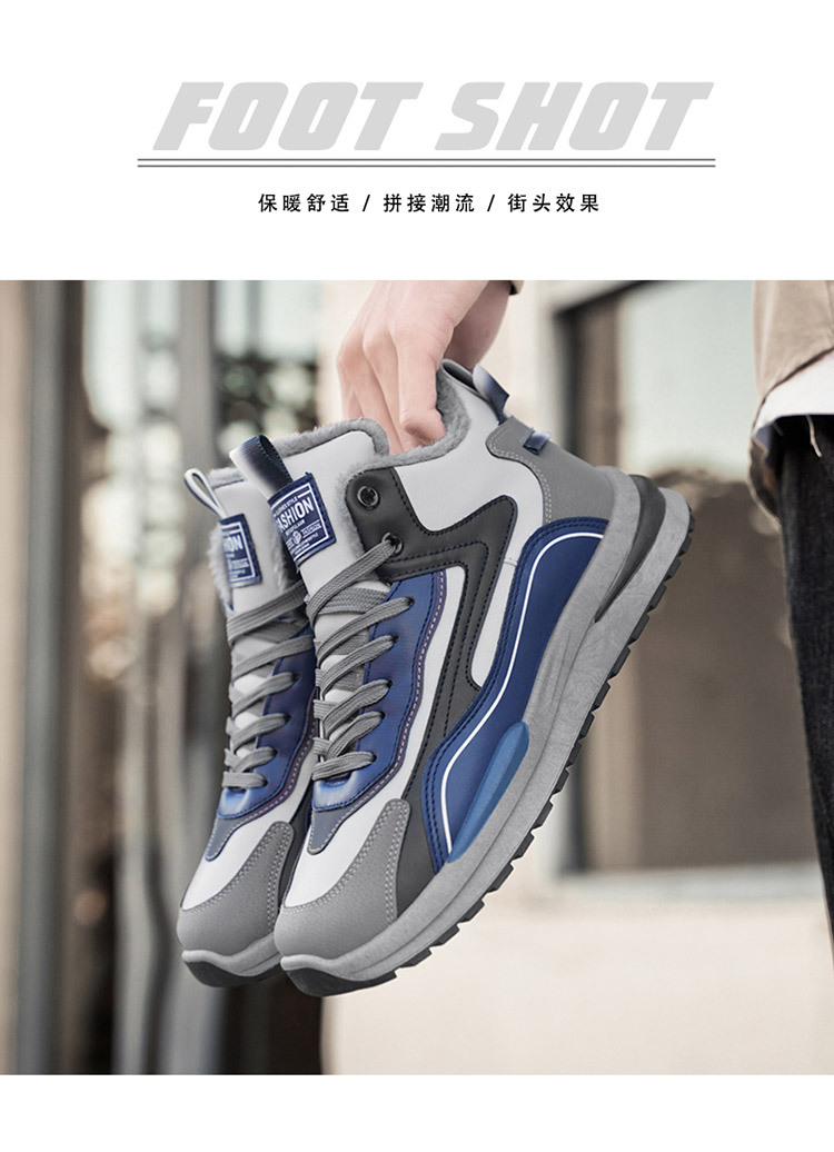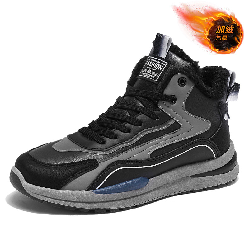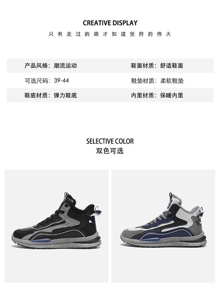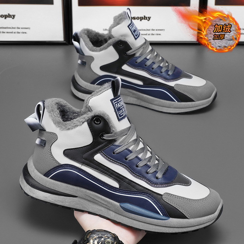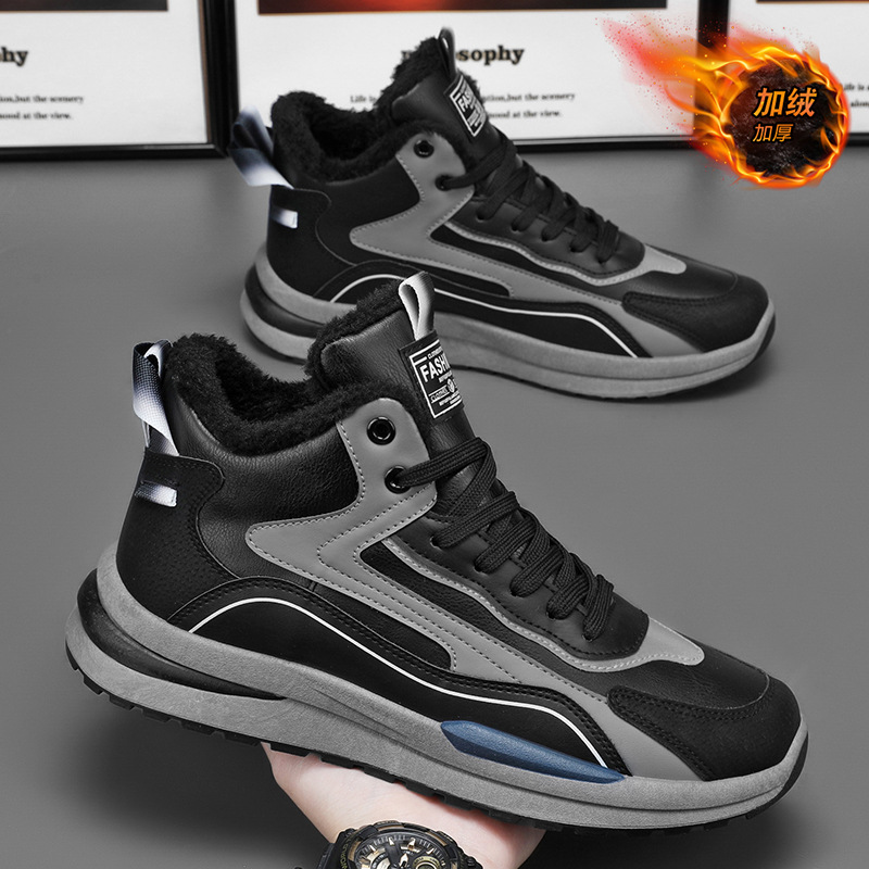 高帮男鞋2024冬季加绒鞋子男潮流百搭防滑加厚保暖棉鞋运动休闲鞋
