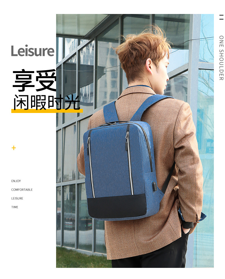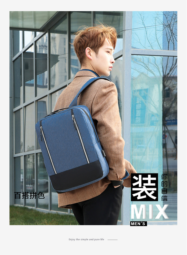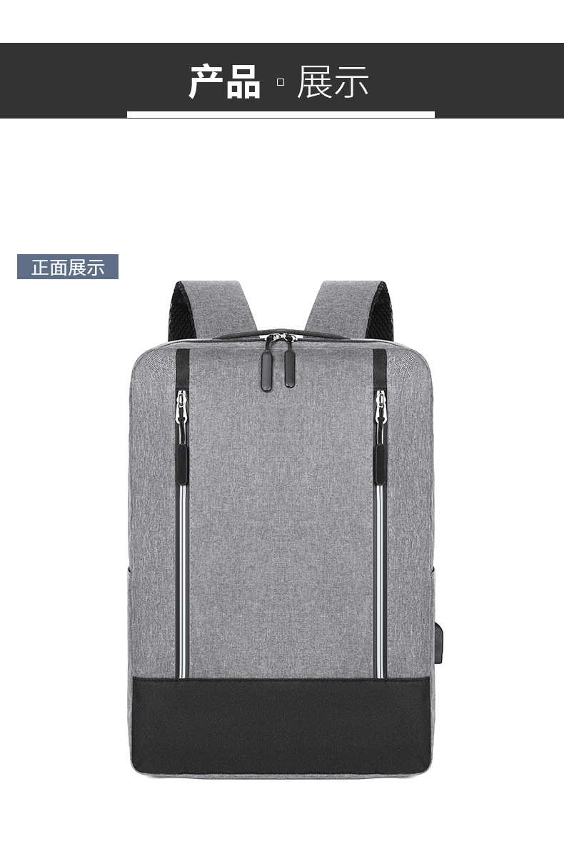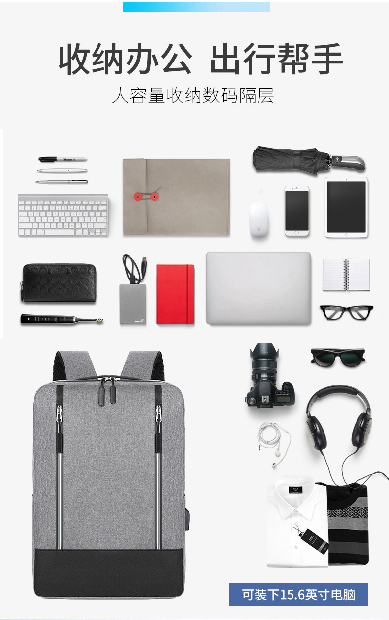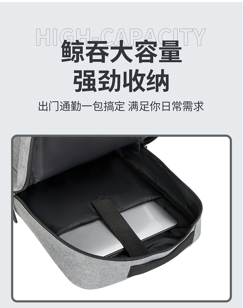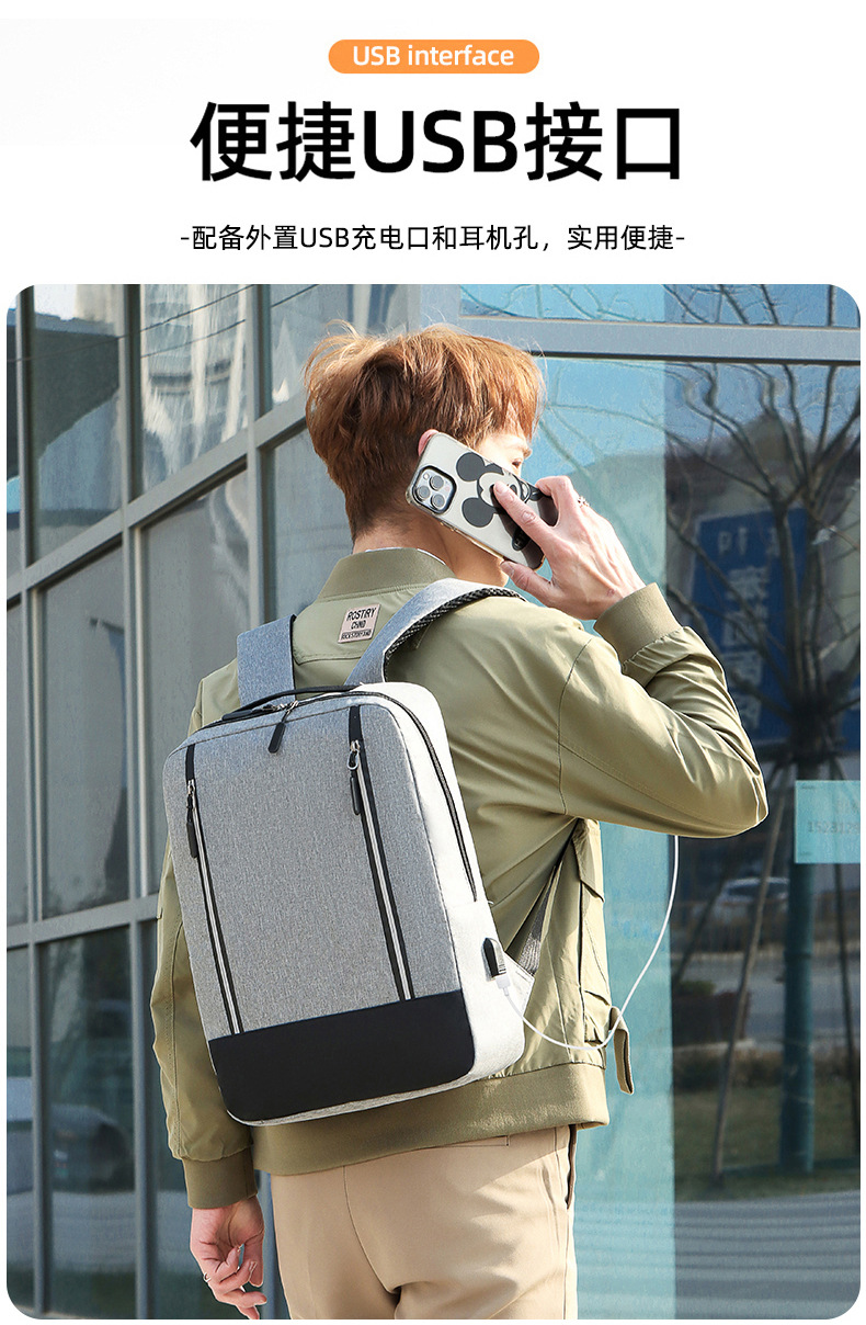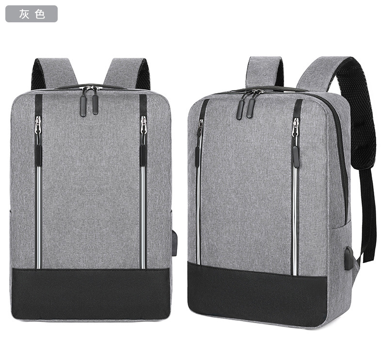 双肩背包跨境新款男士16寸电脑背包休闲商务USB充电纯色三件套