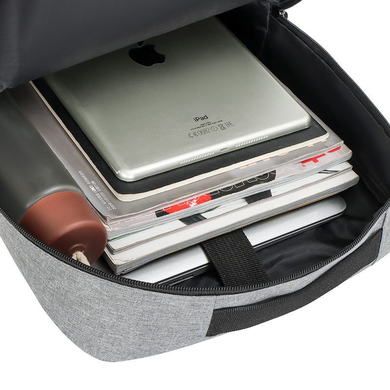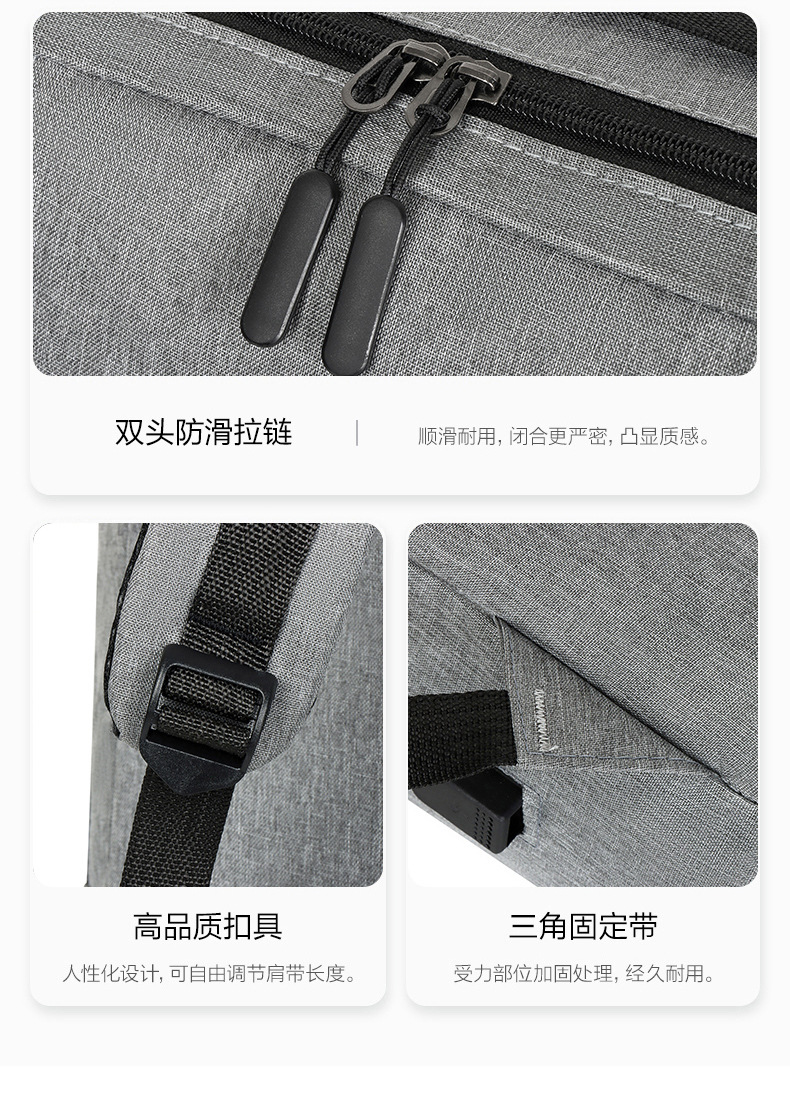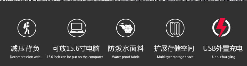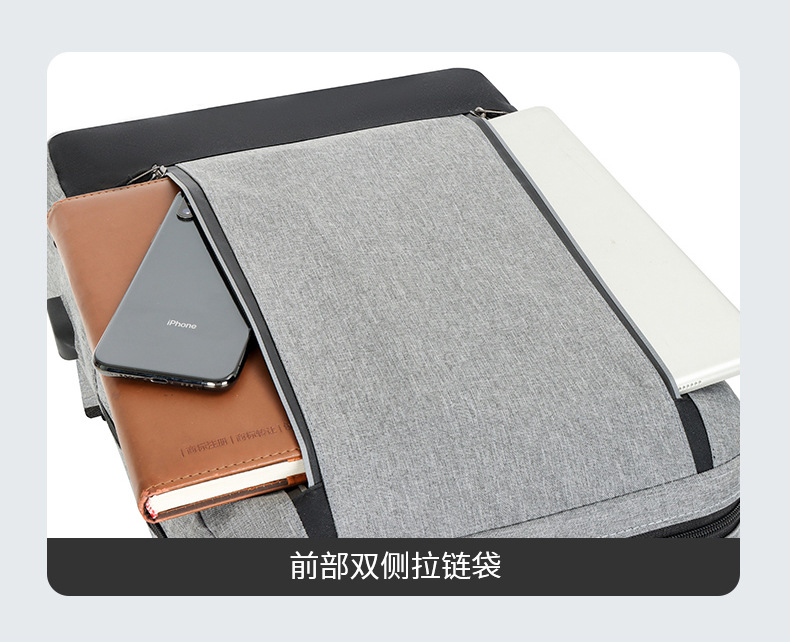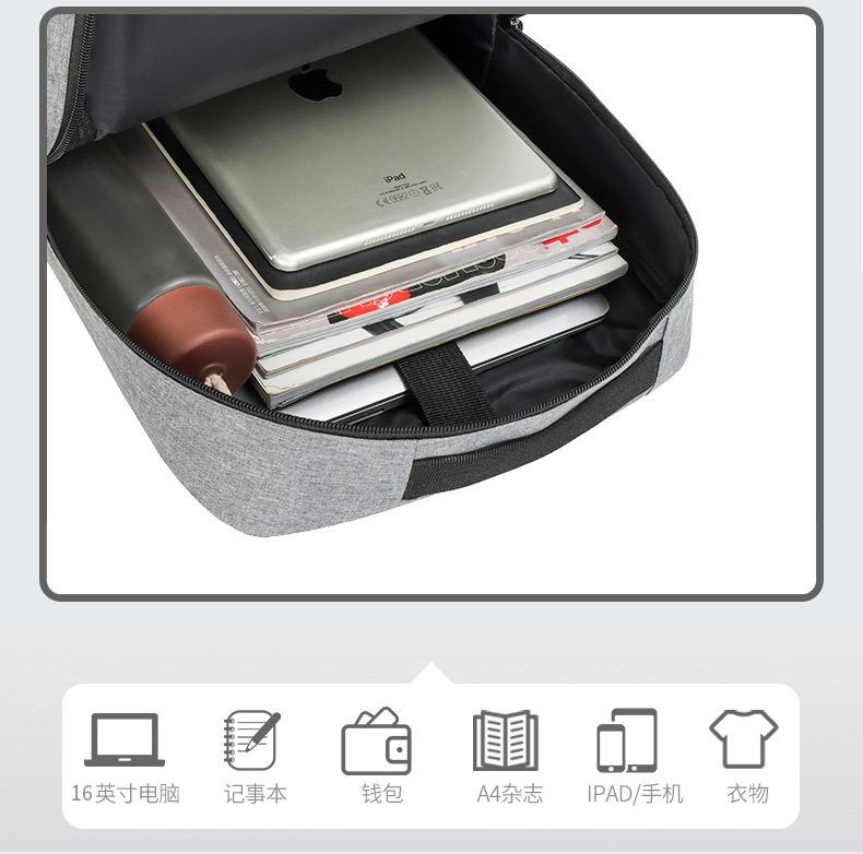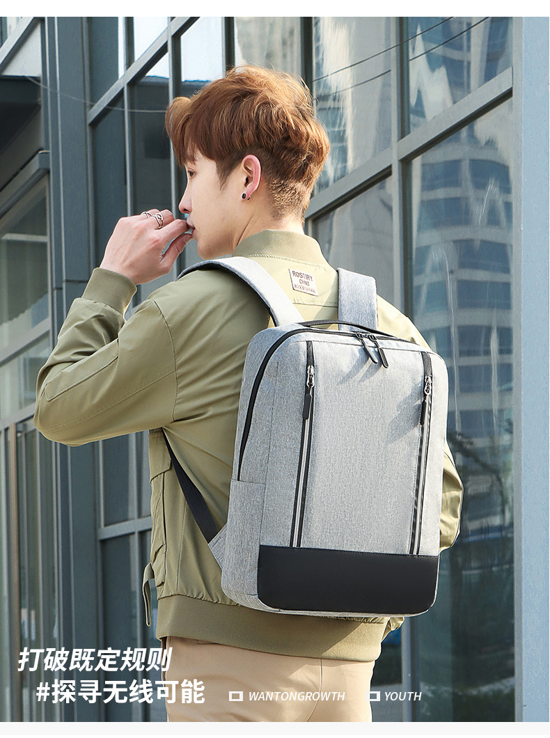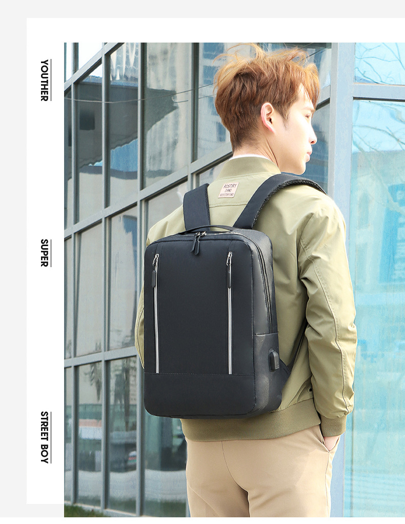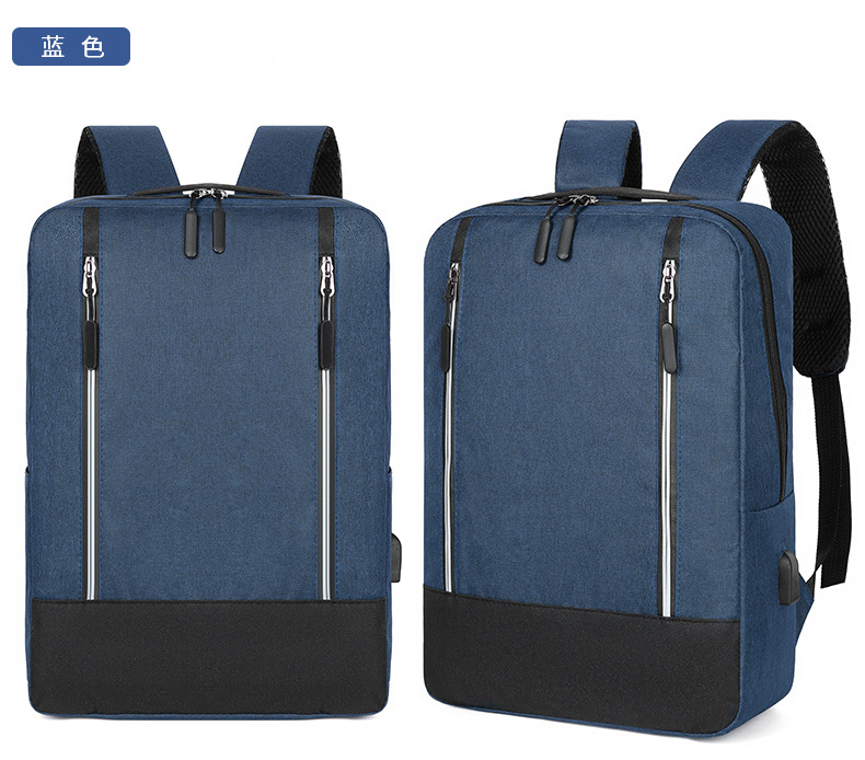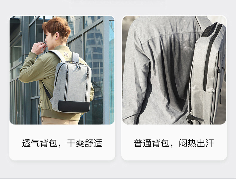 双肩背包跨境新款男士16寸电脑背包休闲商务USB充电纯色三件套