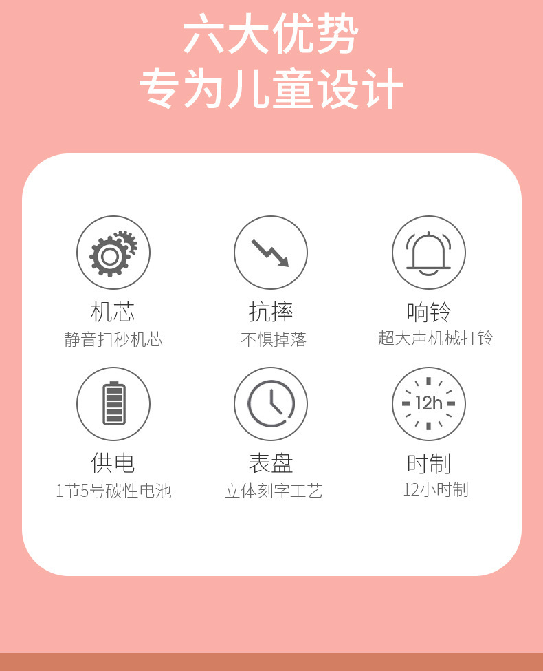 静音起床小学无声学习儿童闹钟床头儿童钟表闹钟早教神器闹钟启蒙