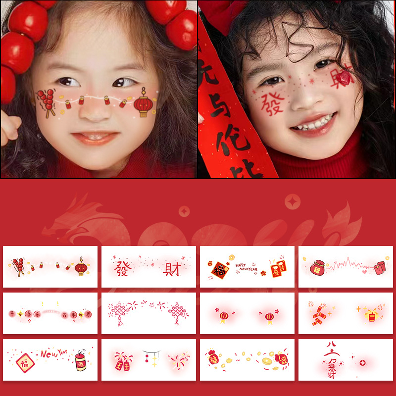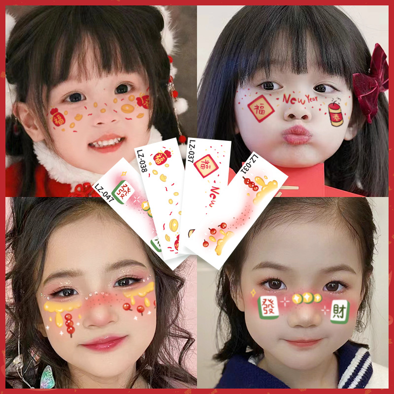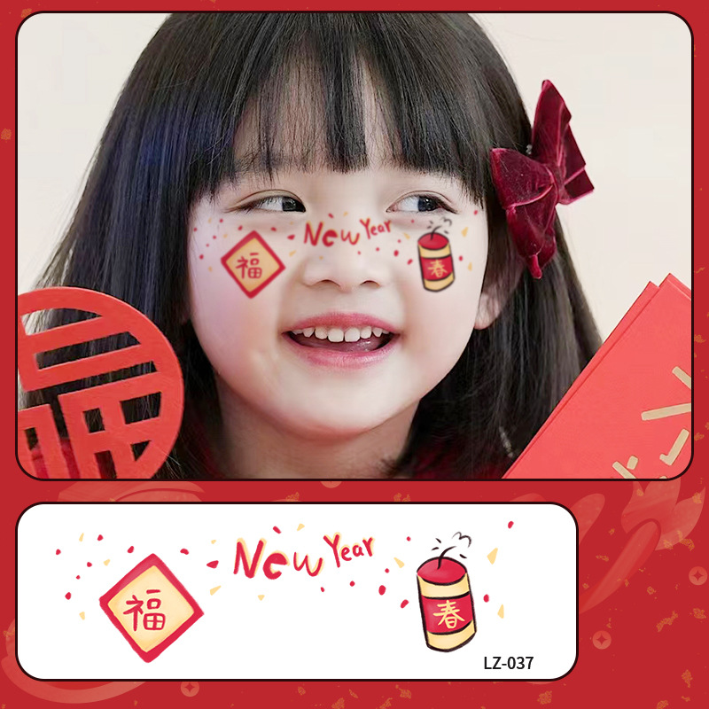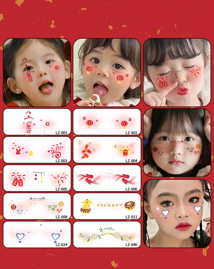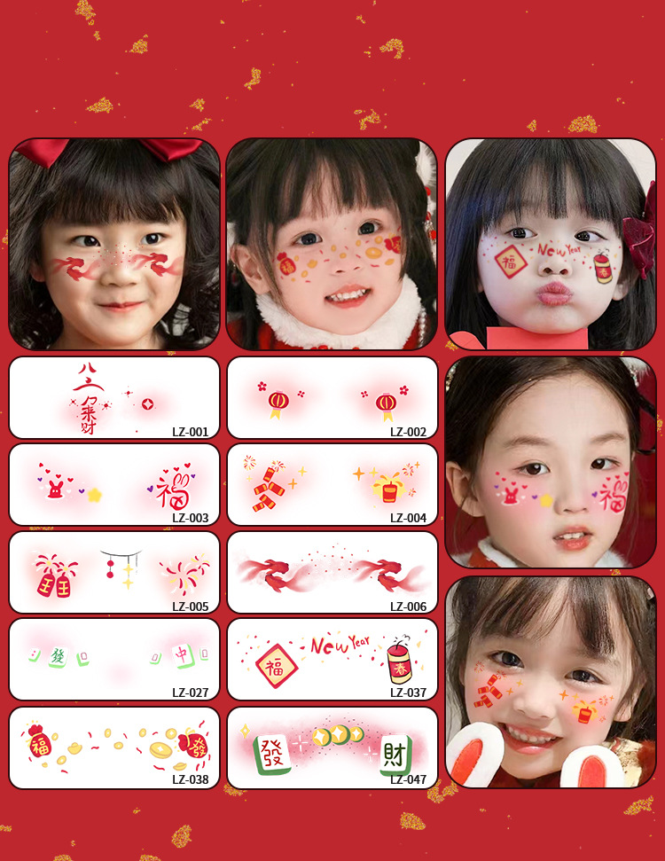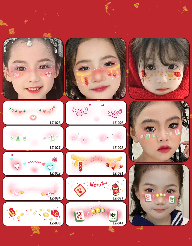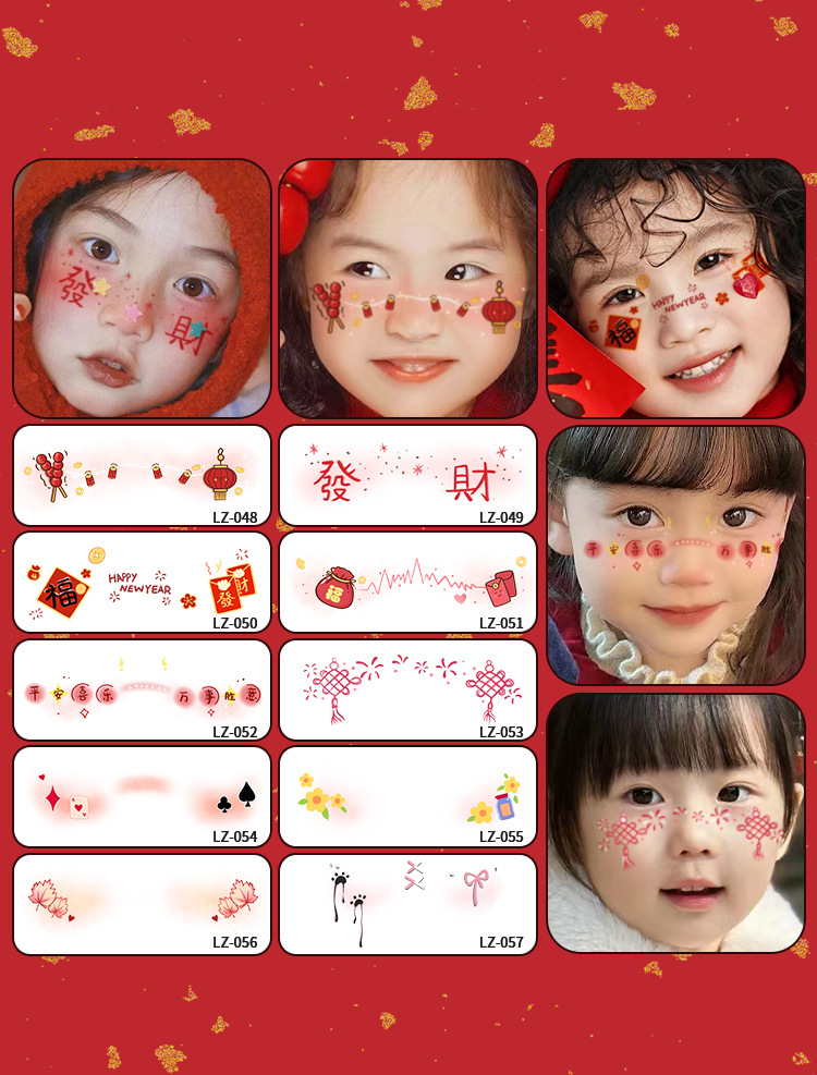 新年脸部贴纸圣诞节贴纸脸元旦妆容新年纹身贴高级感儿童脸上彩绘