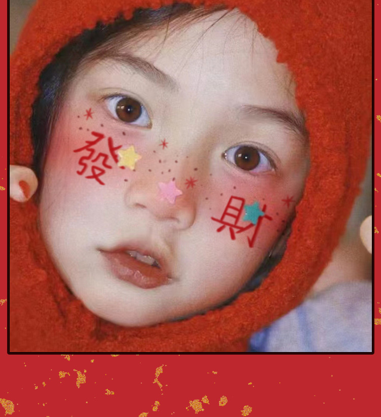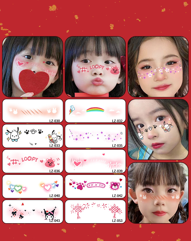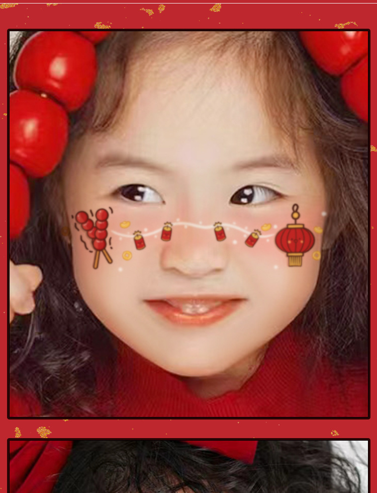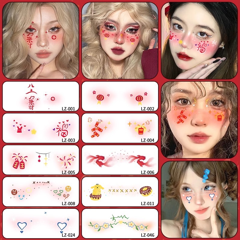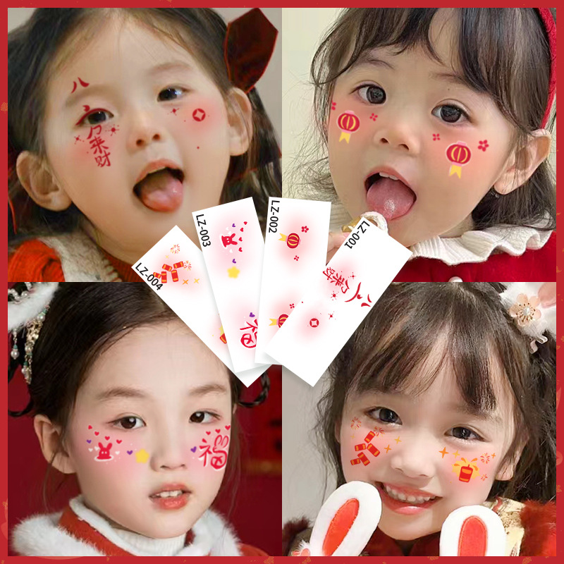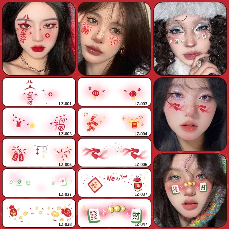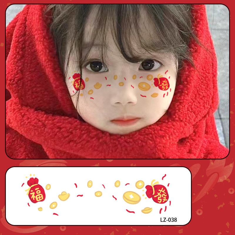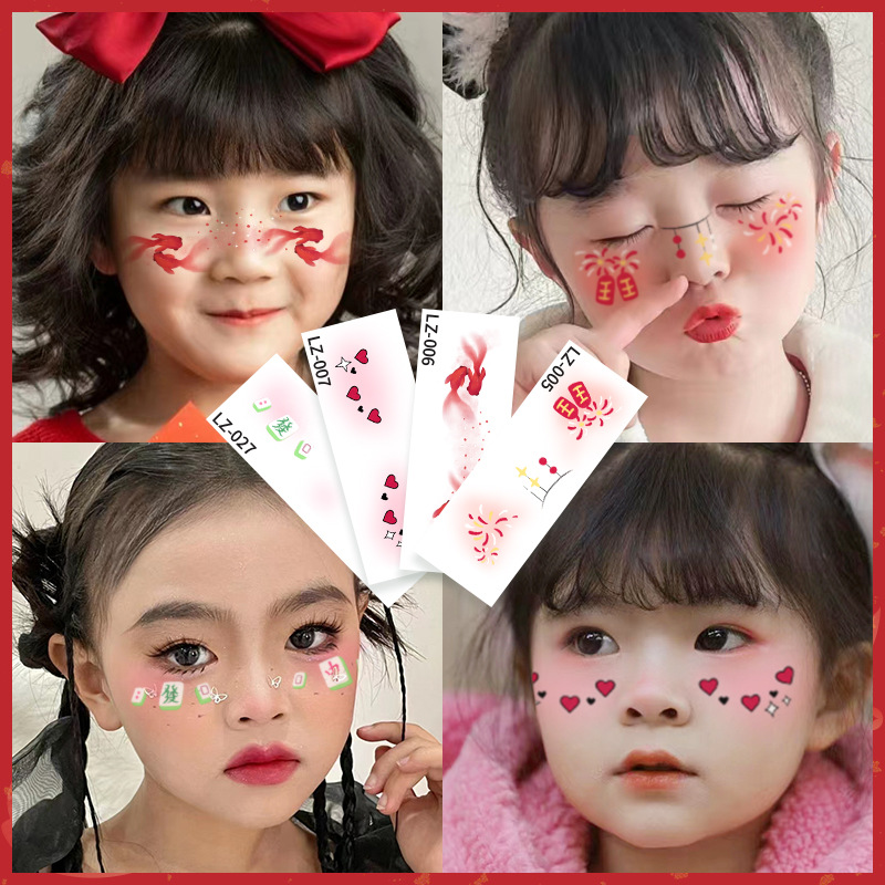 新年脸部贴纸圣诞节贴纸脸元旦妆容新年纹身贴高级感儿童脸上彩绘