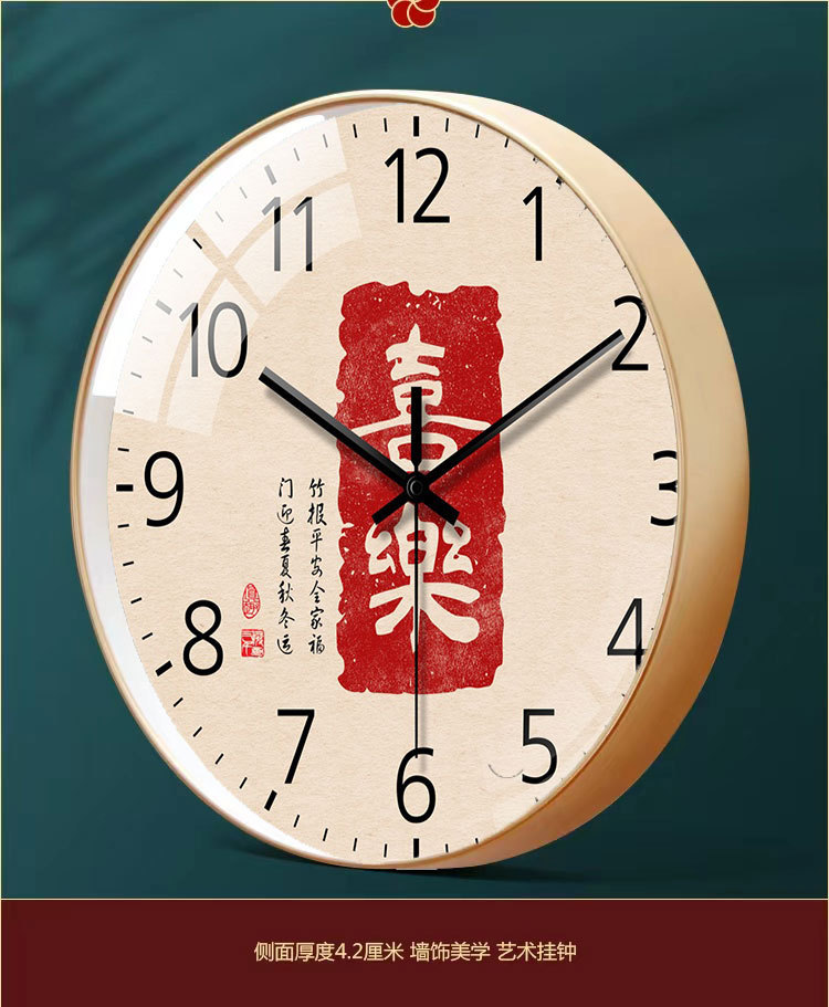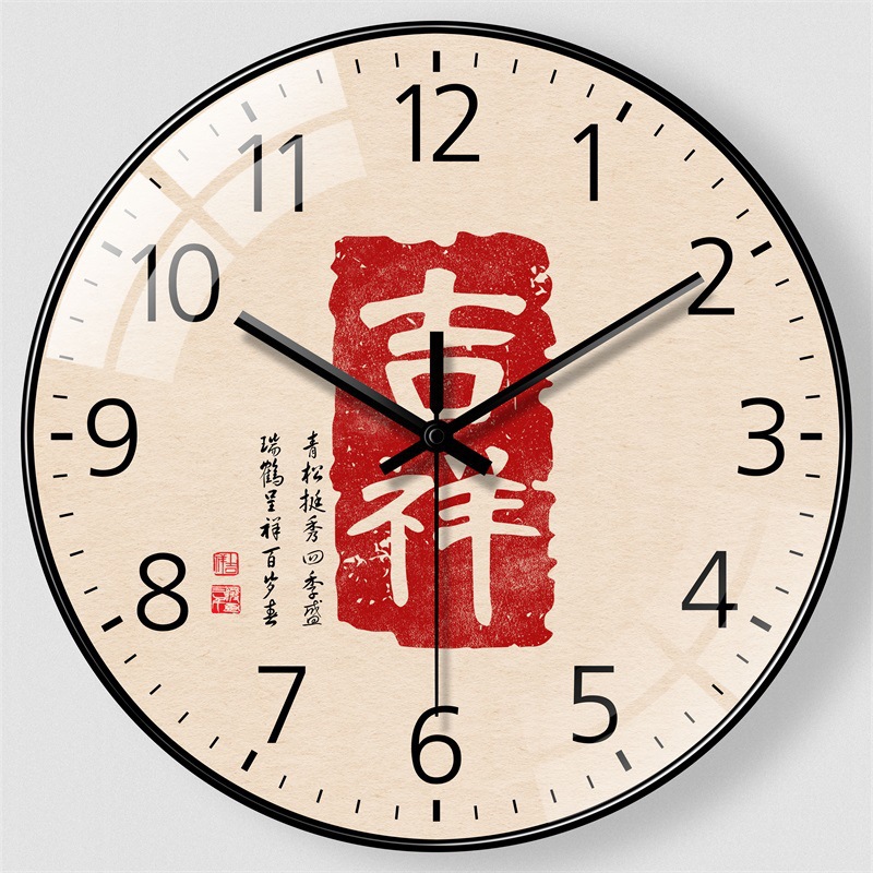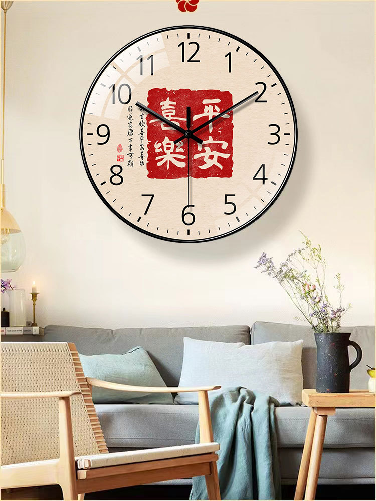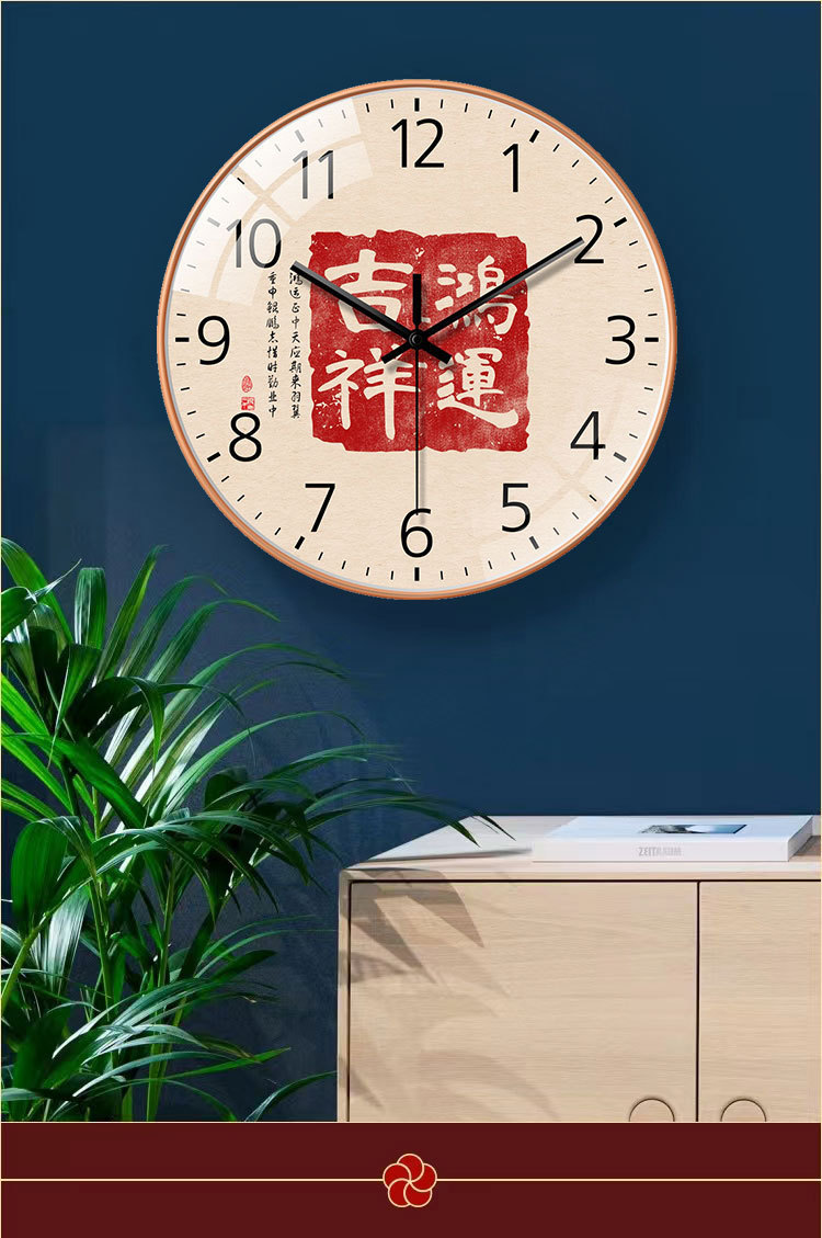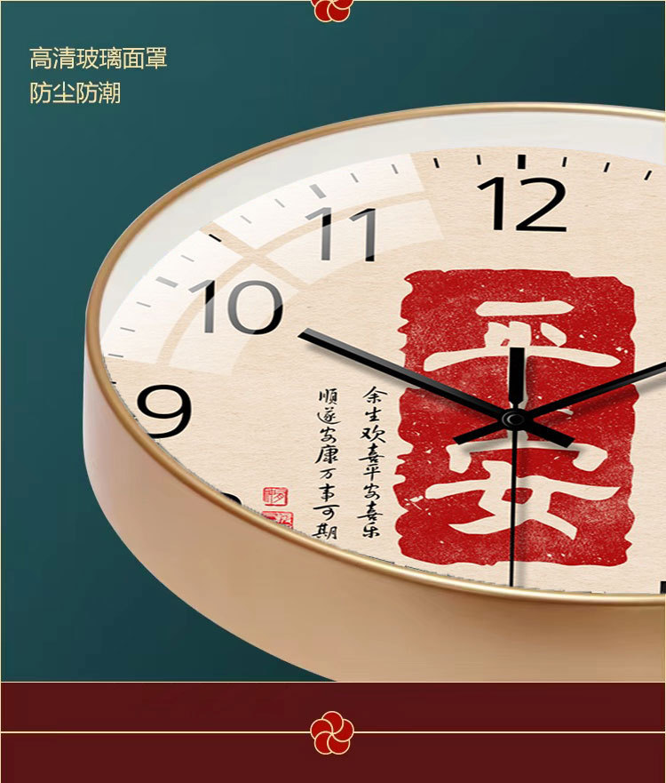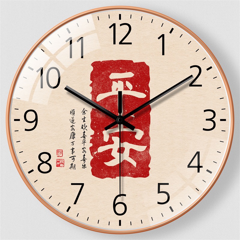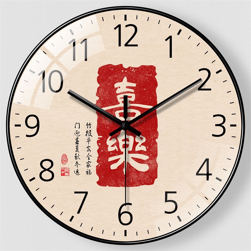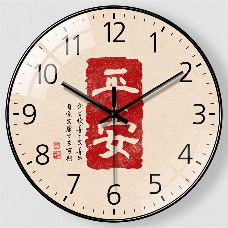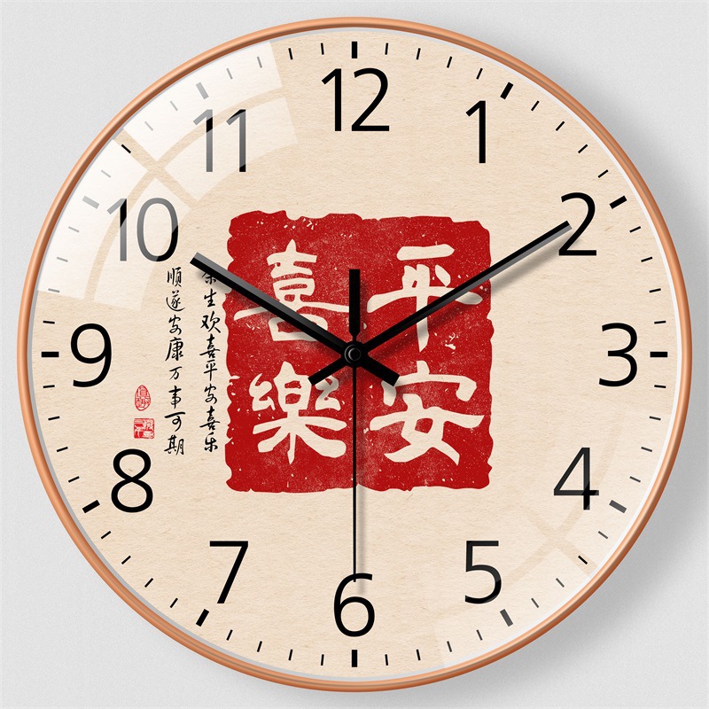 8寸20CM平安喜乐挂钟印章时钟吉祥如意字墙上挂表字挂钟中国风厂