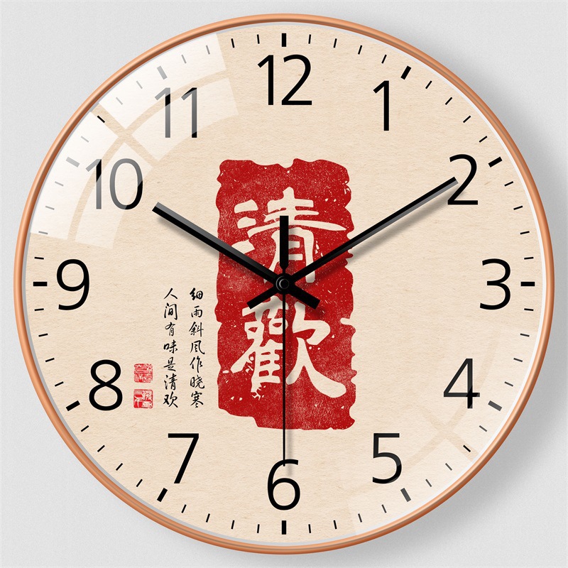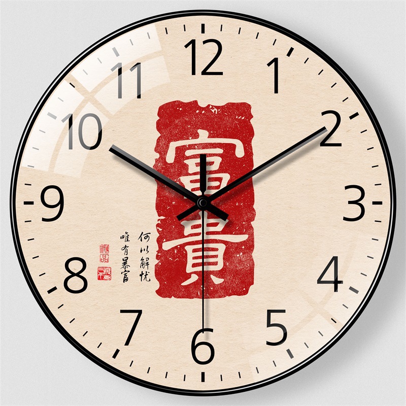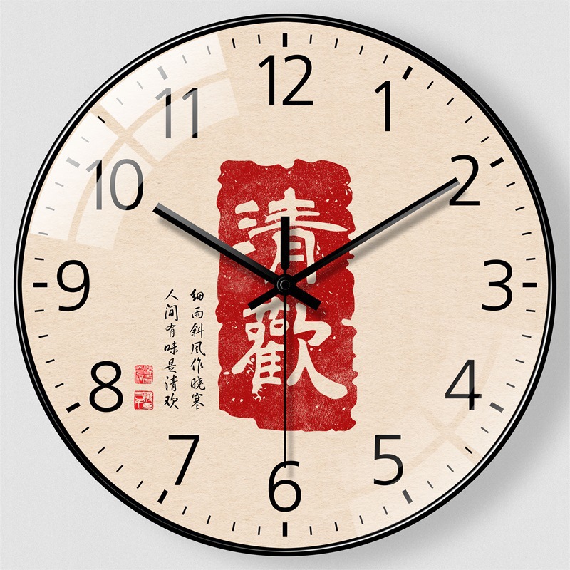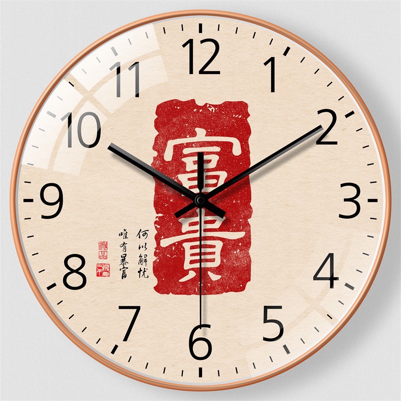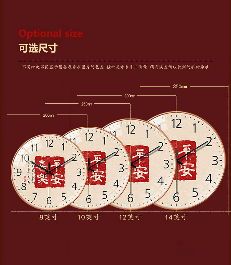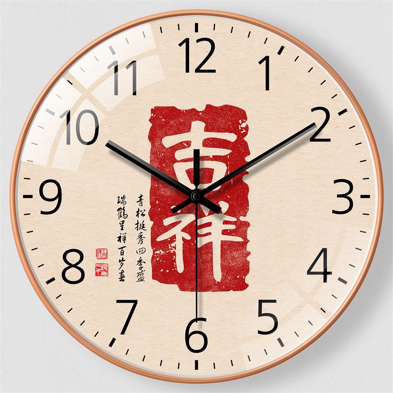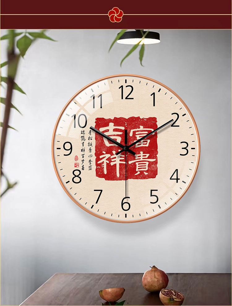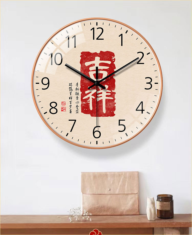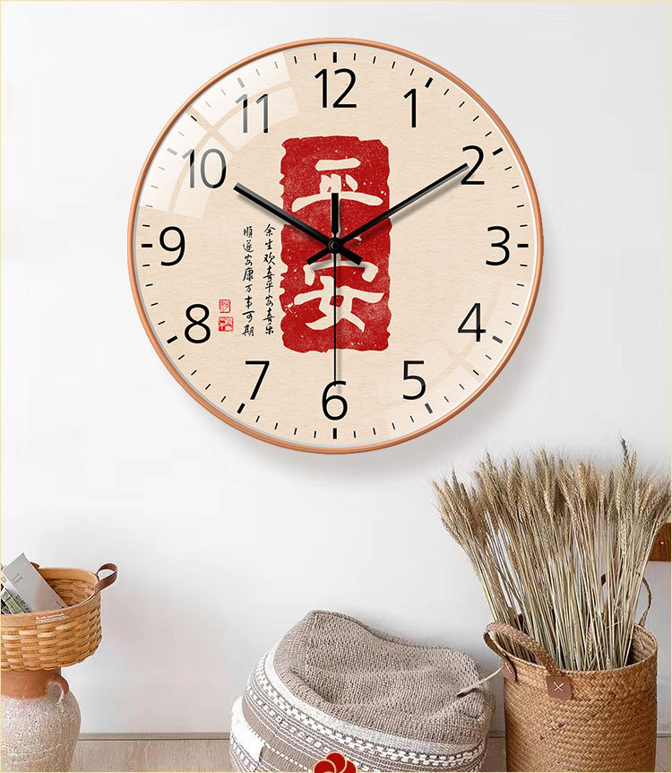8寸20CM平安喜乐挂钟印章时钟吉祥如意字墙上挂表字挂钟中国风厂