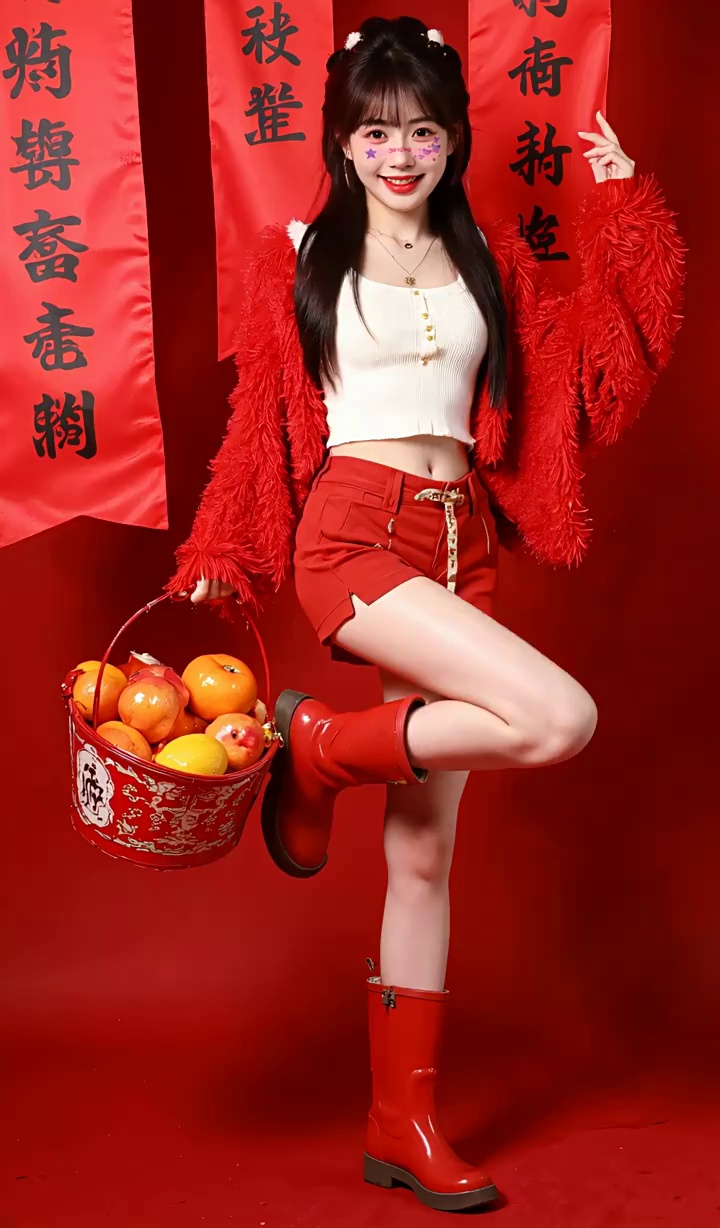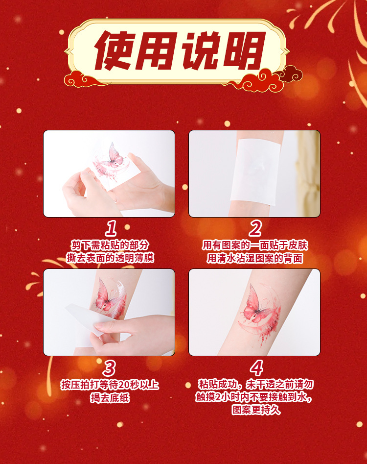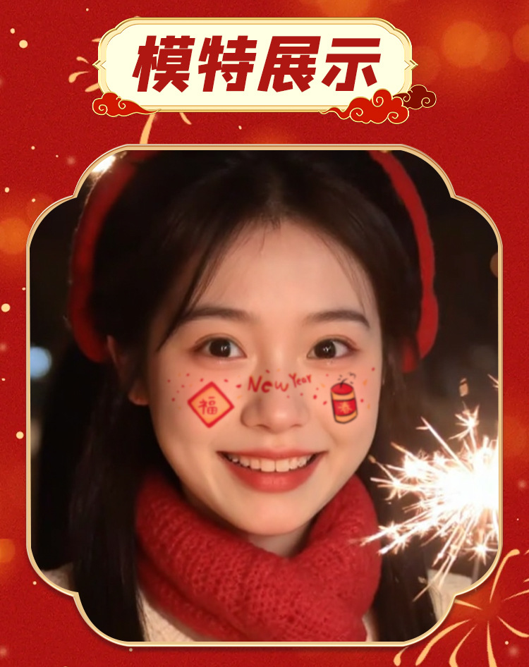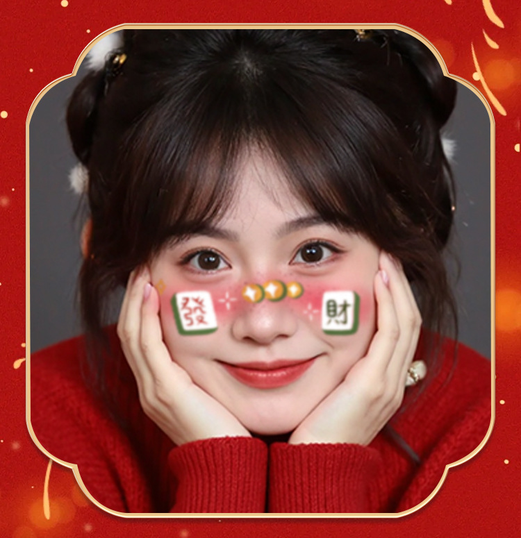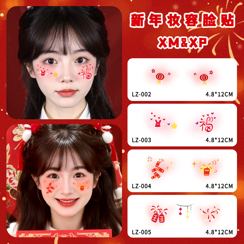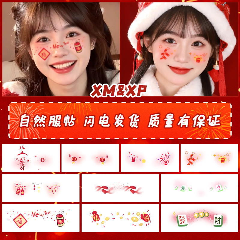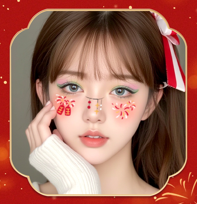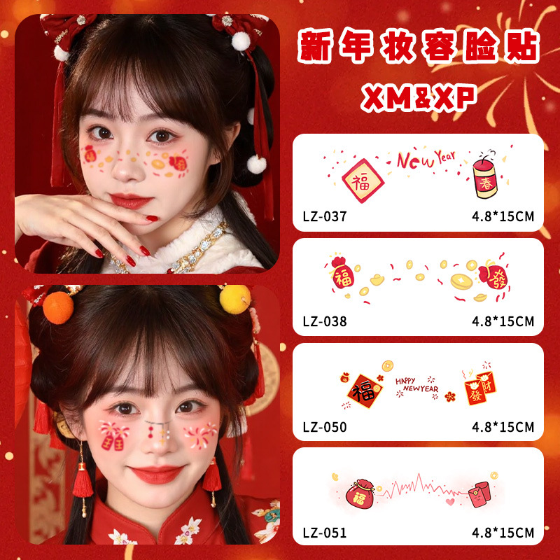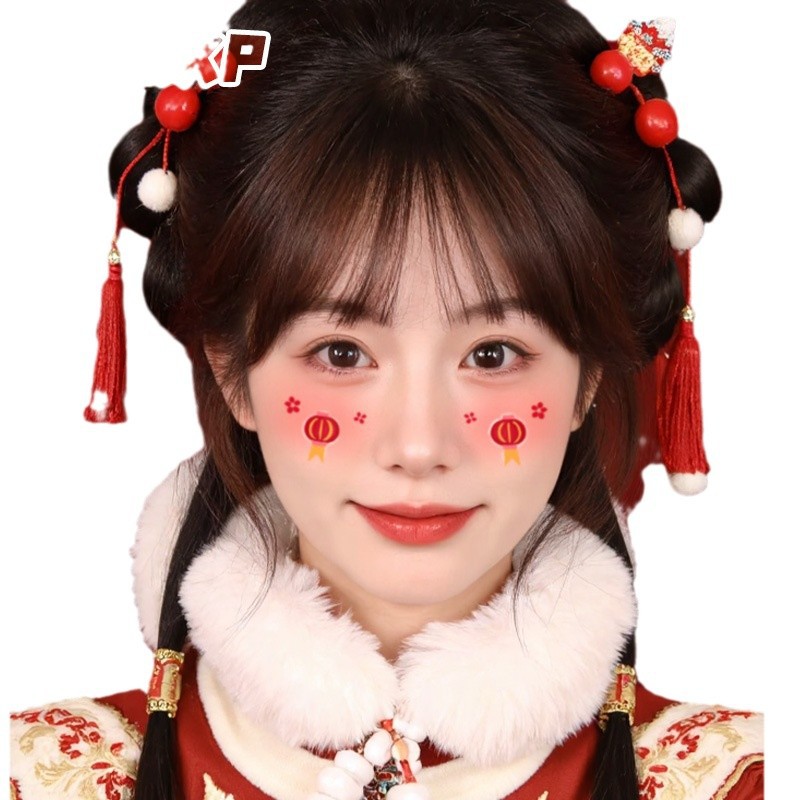新年跨年妆容脸贴纹身贴纸创意国风发财中国结可爱少女腮红妆COS