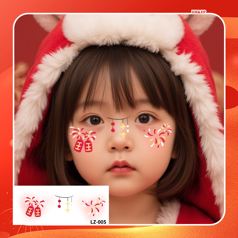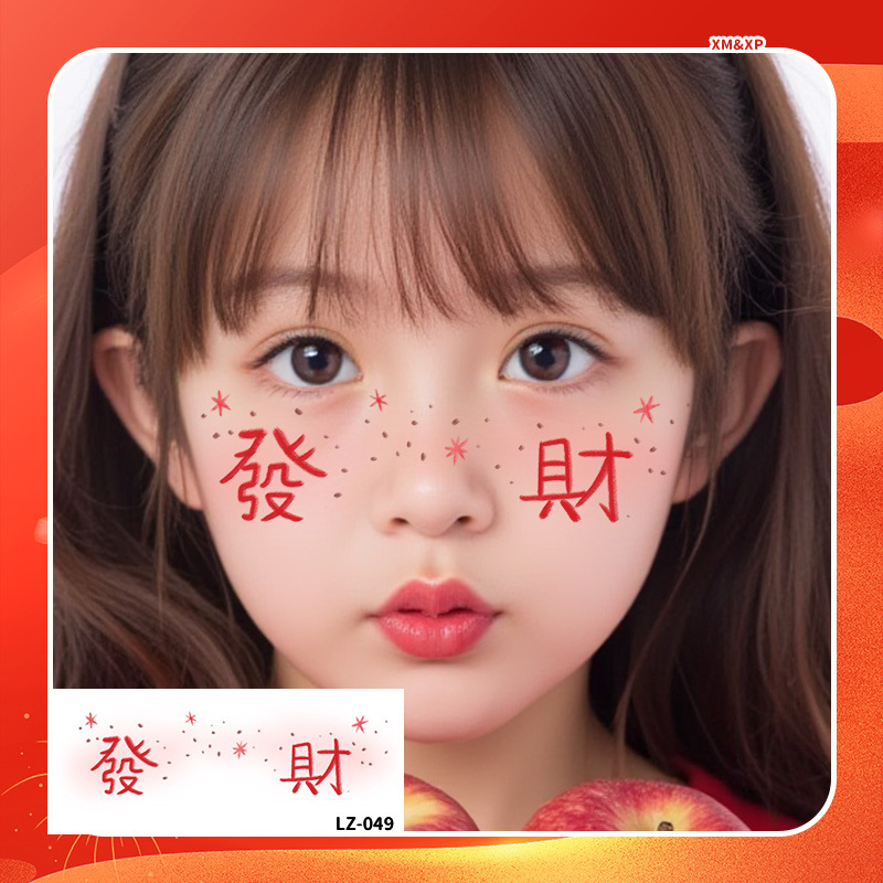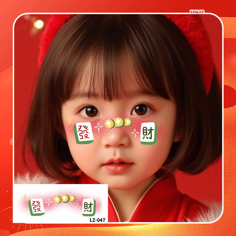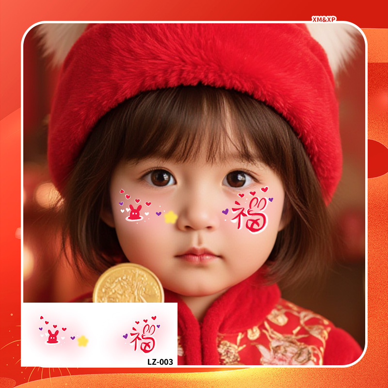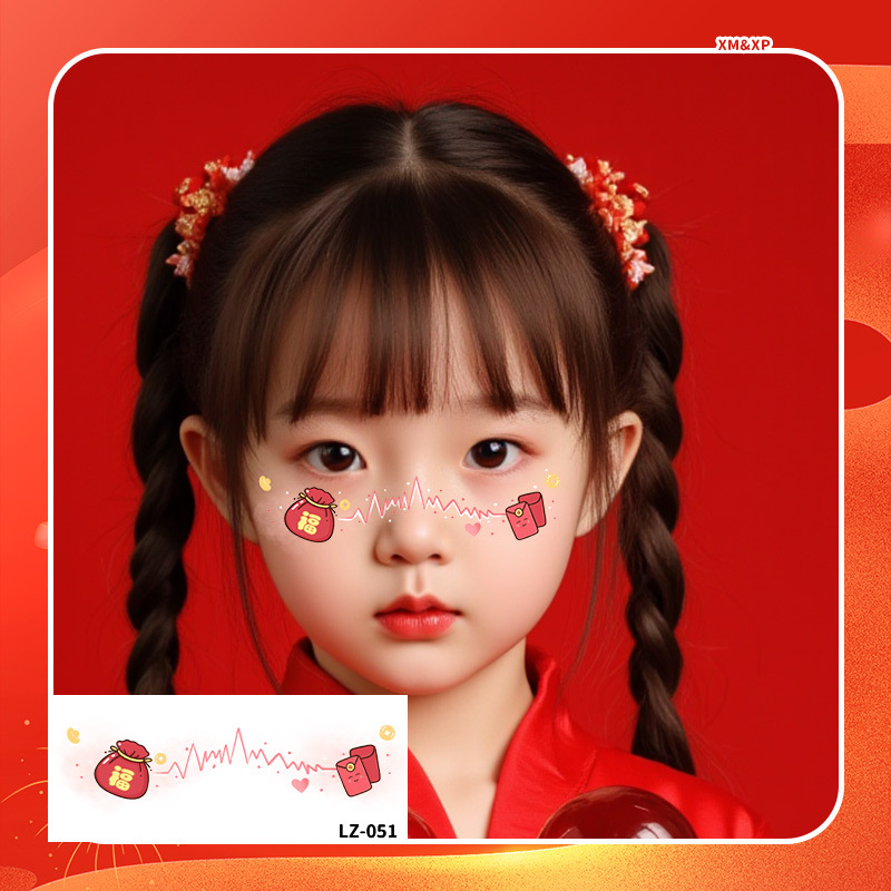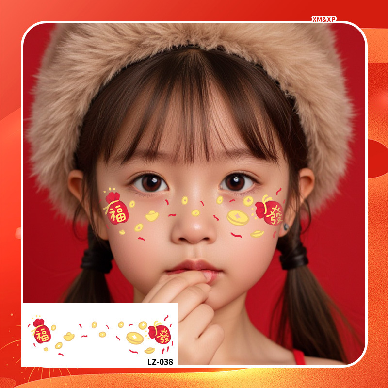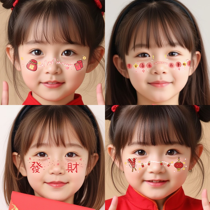 2025新年儿童脸贴妆容纹身贴新中式 元旦跨年可爱发财来福中国结