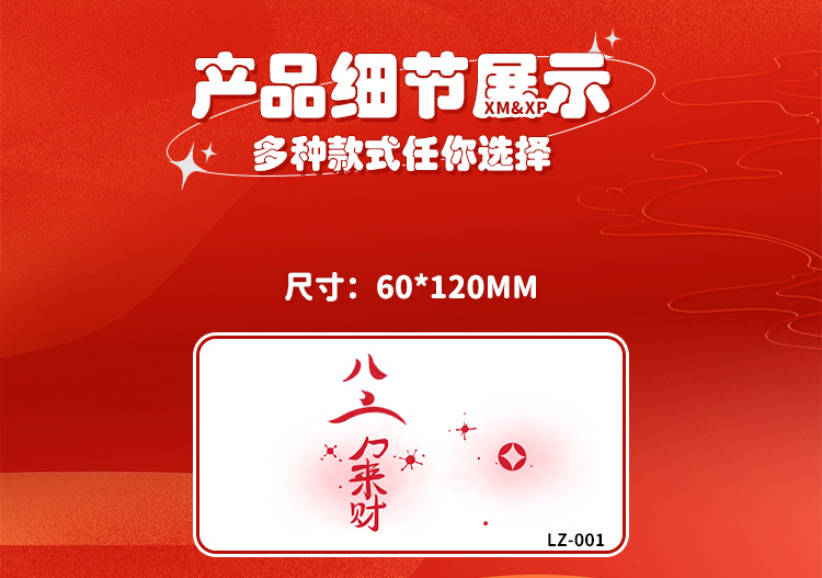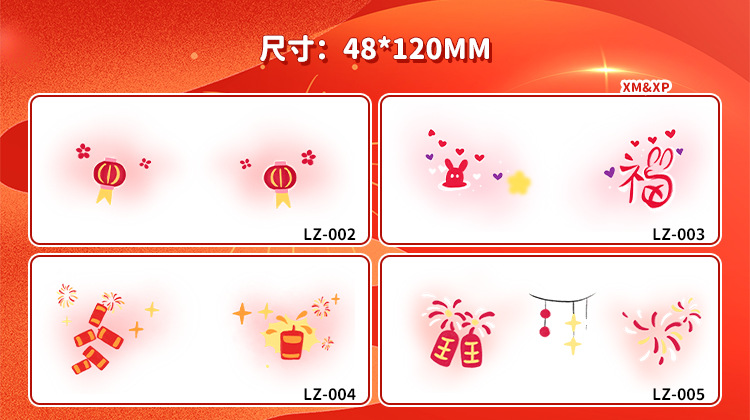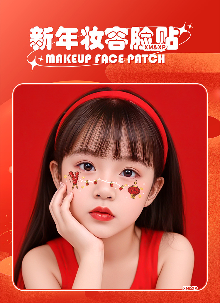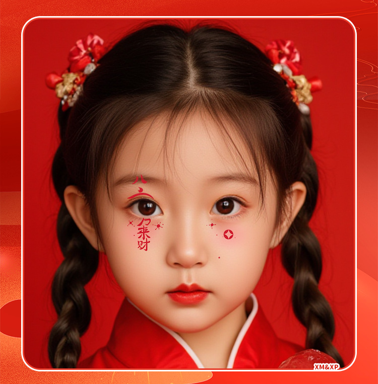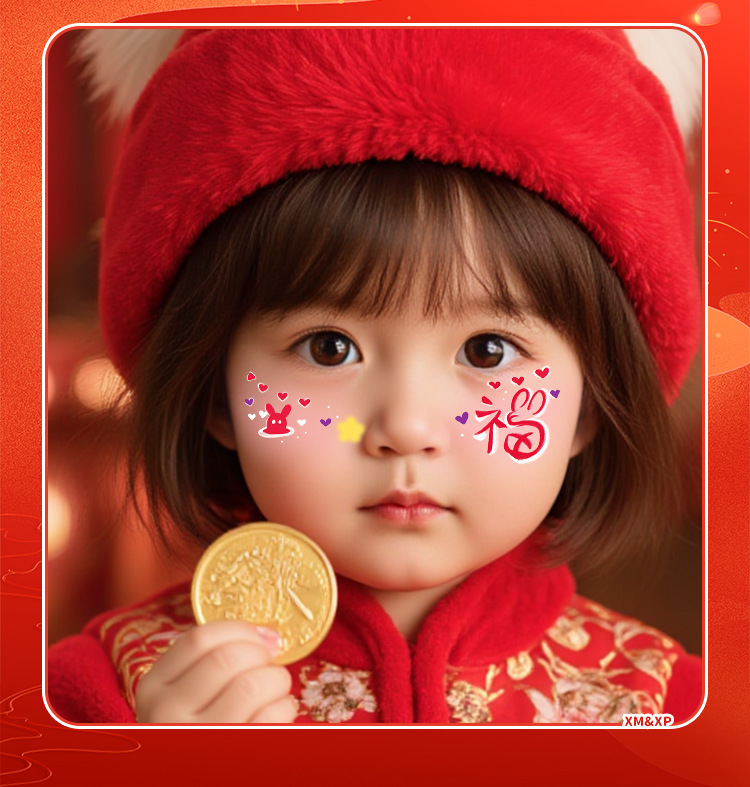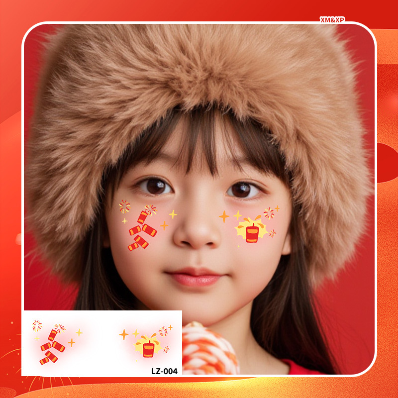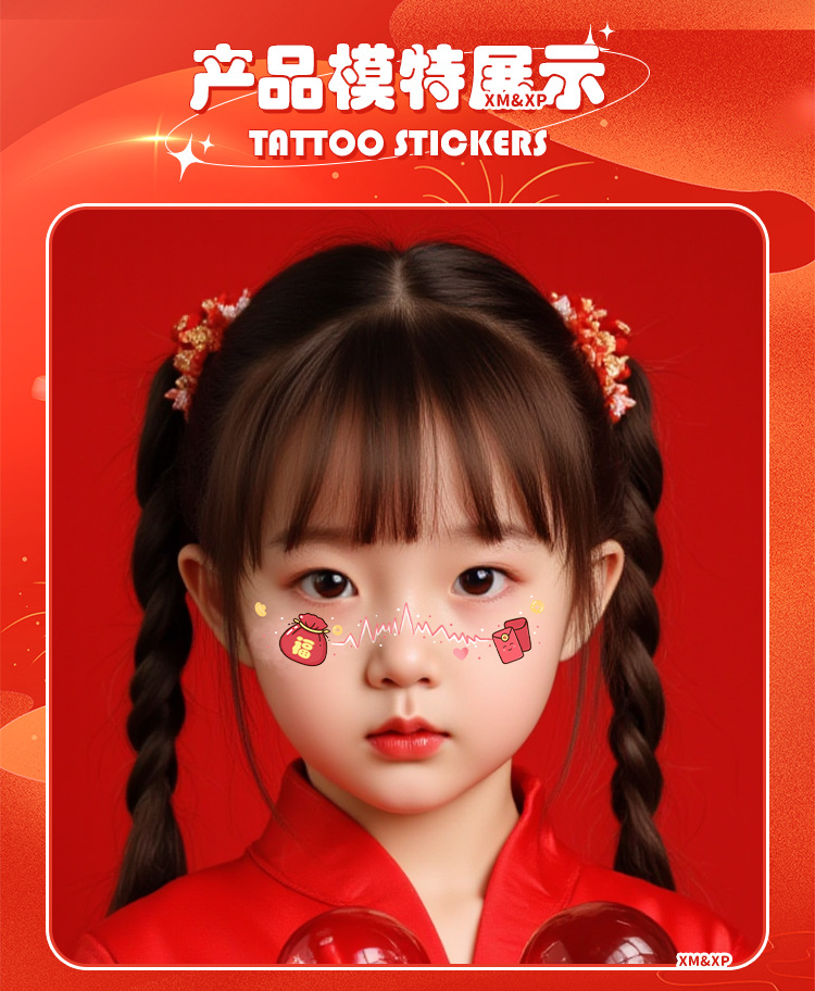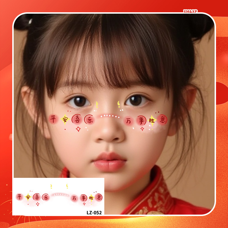 2025新年儿童脸贴妆容纹身贴新中式 元旦跨年可爱发财来福中国结