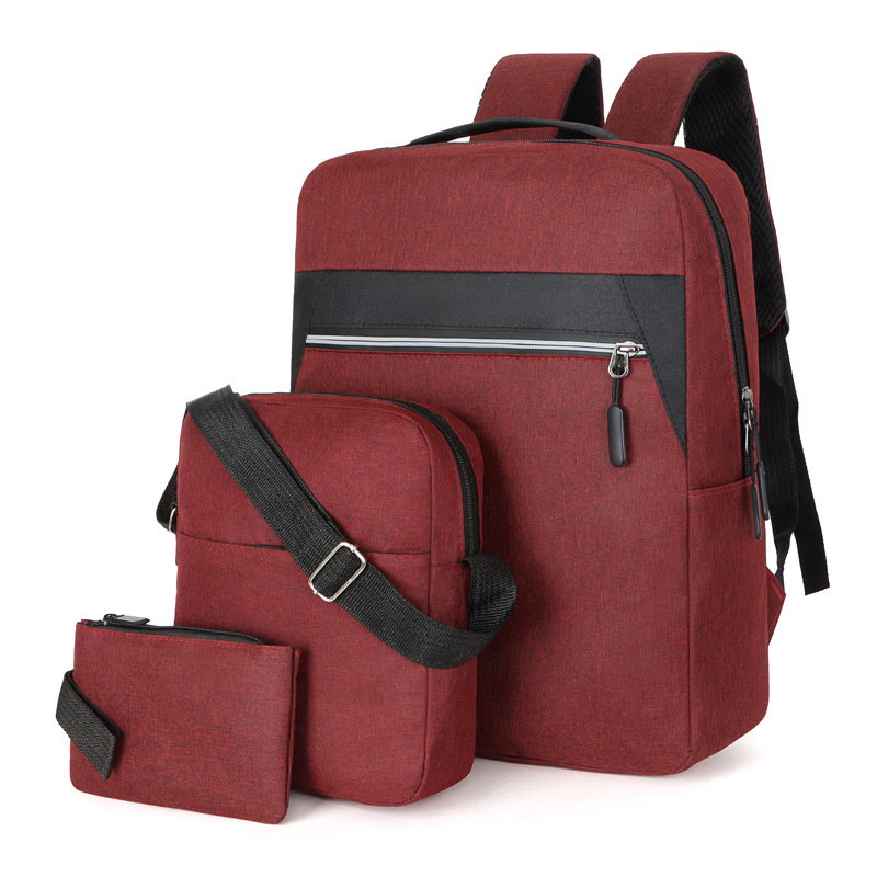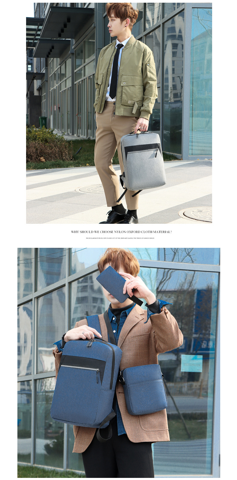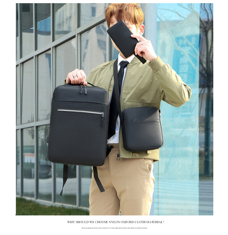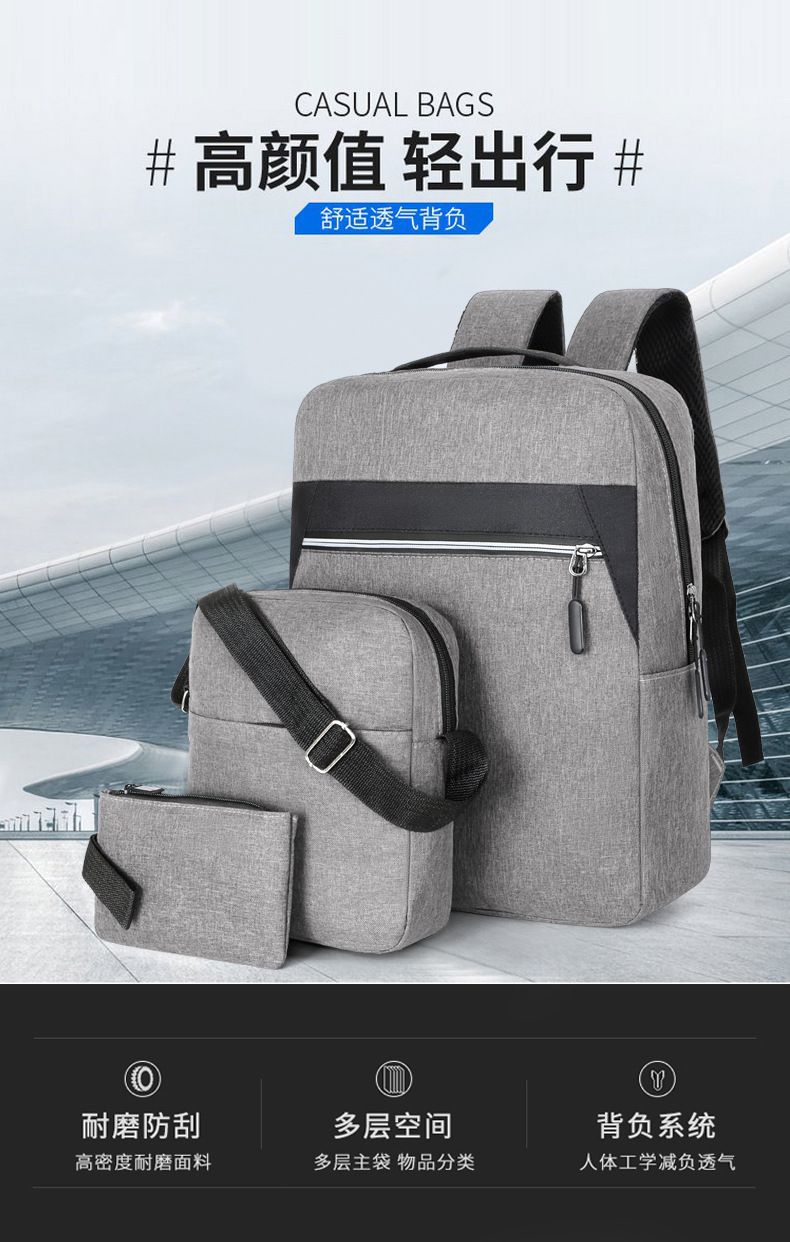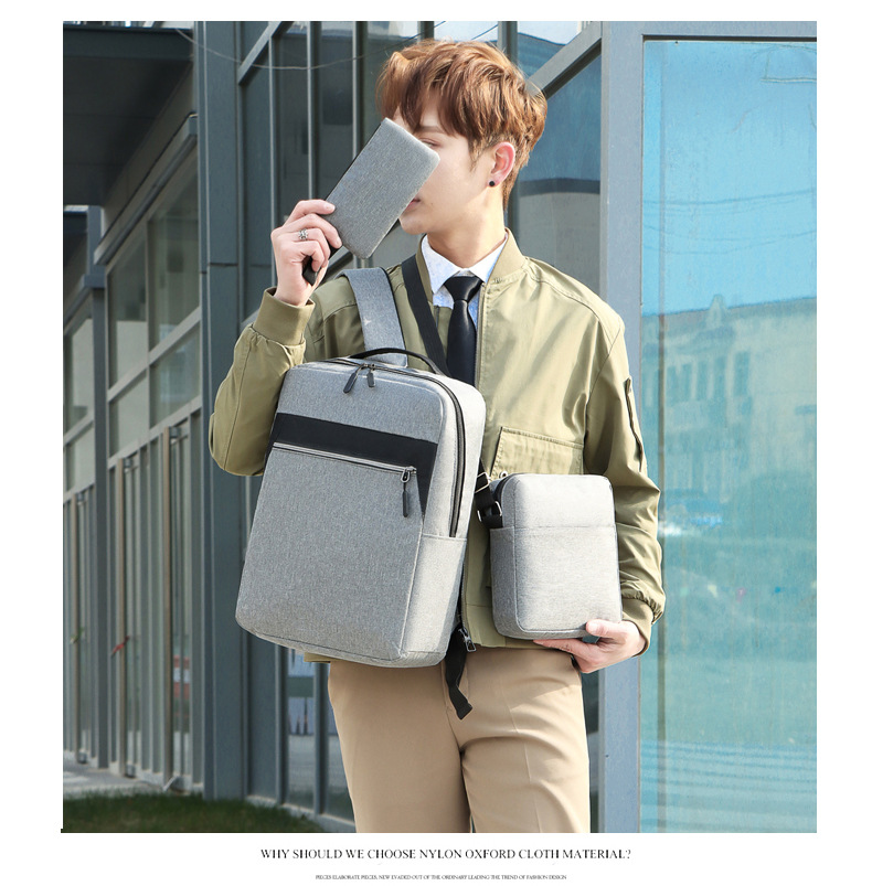 跨境新款男14寸电脑包多功能商务出行大容量三件套双肩包一件代发