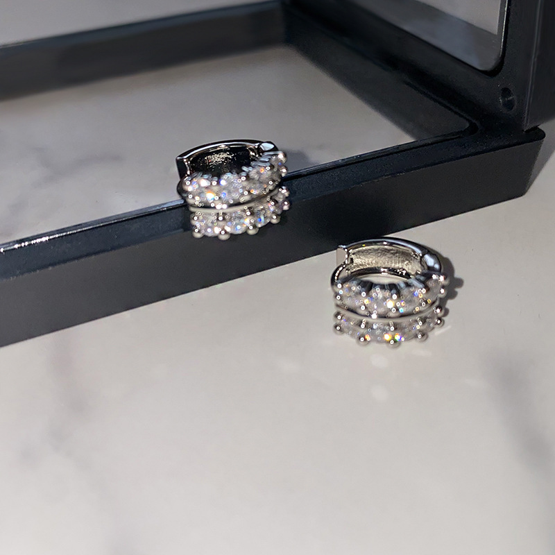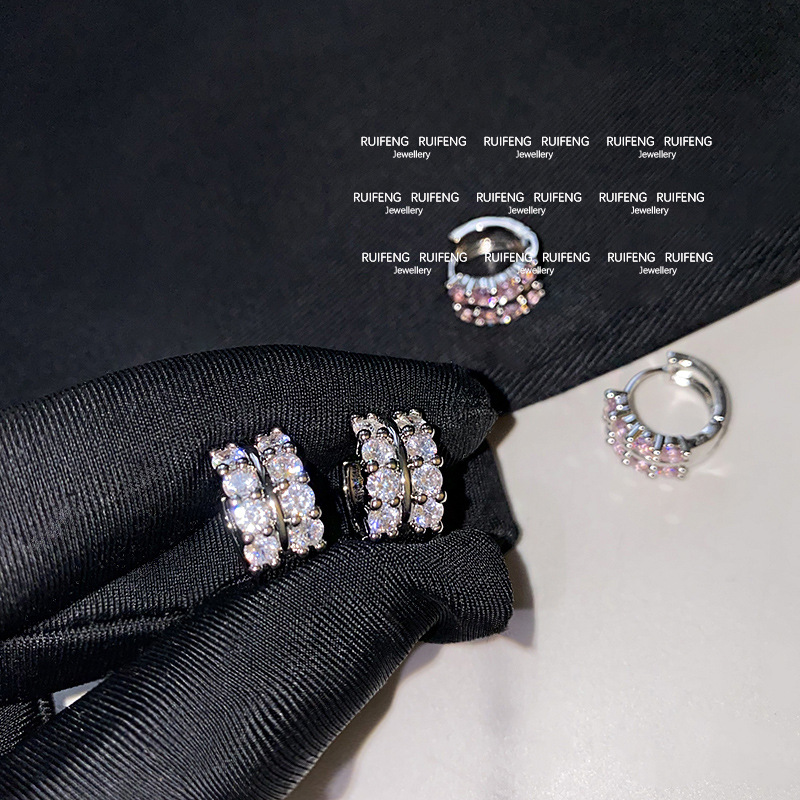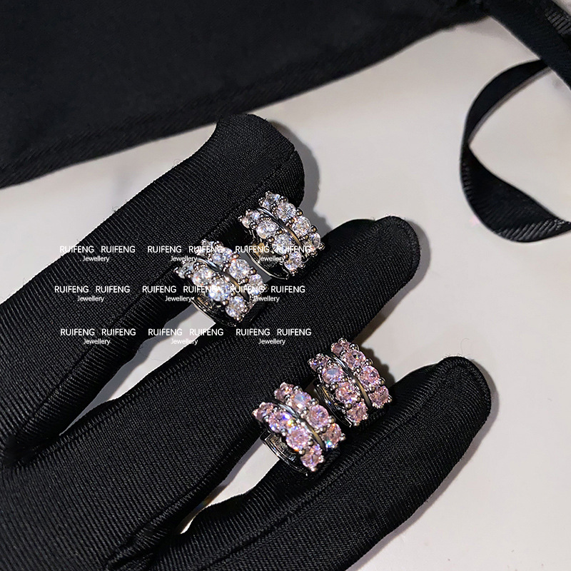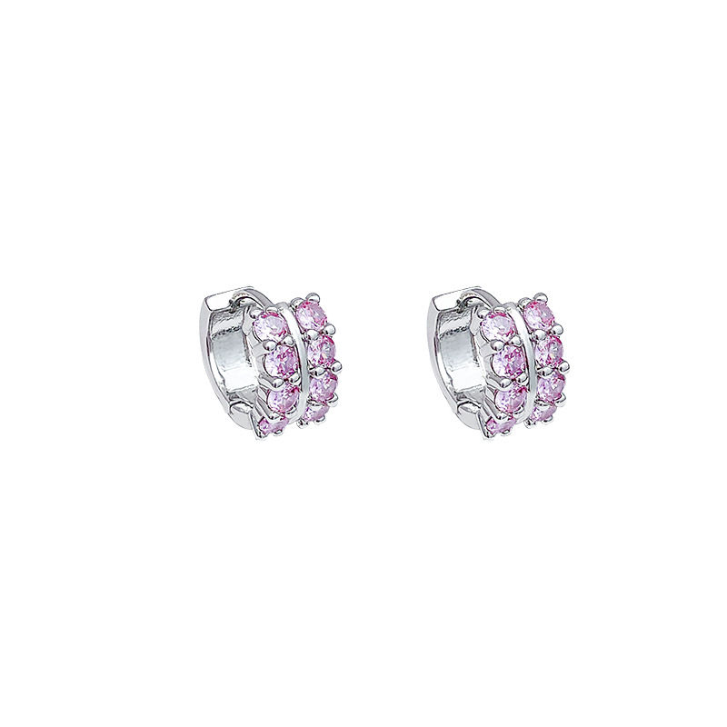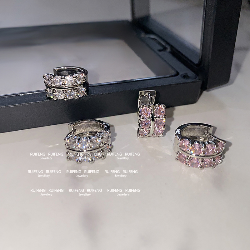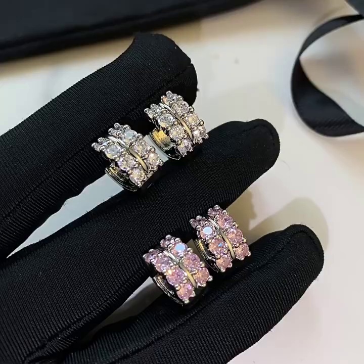 超闪双排微镶5A级彩色锆石耳钉高端耳饰品真金电镀圆形耳扣耳环女