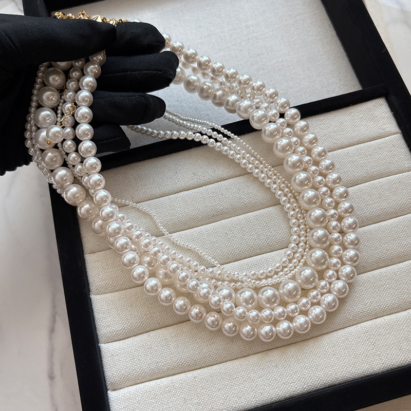 轻奢小众简约高级感小米珠锁骨链卫衣毛衣链施家澳白珍珠项链女