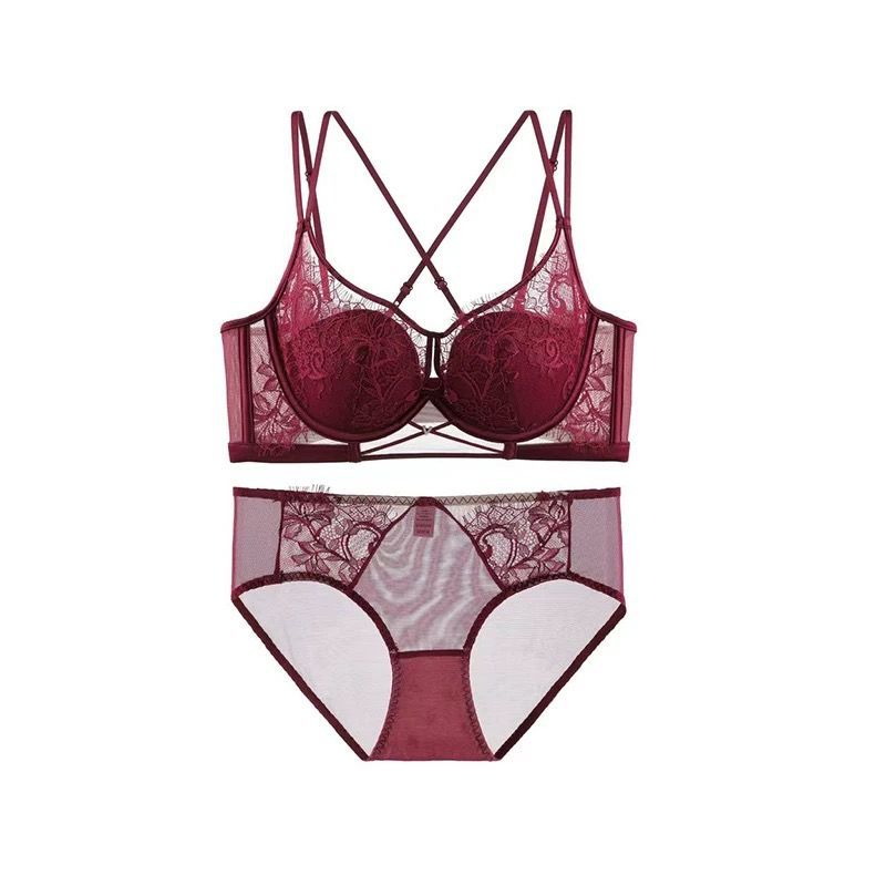 红色内衣女大胸显小胸有钢圈防下垂上托调整型薄款新年本命年文胸