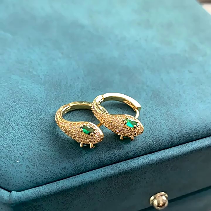 超闪5A级锆石小众设计感耳钉耳饰真金电镀微镶满钻蛇形耳扣女批发