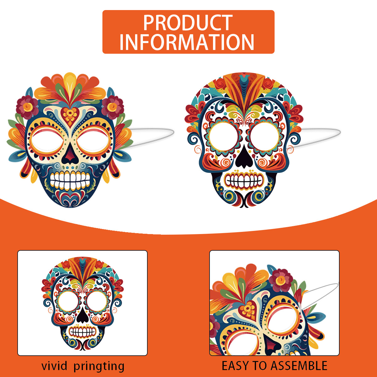 欧美墨西哥亡灵节纸质面具手工DIY化妆舞会表演装饰恐怖骷髅面罩
