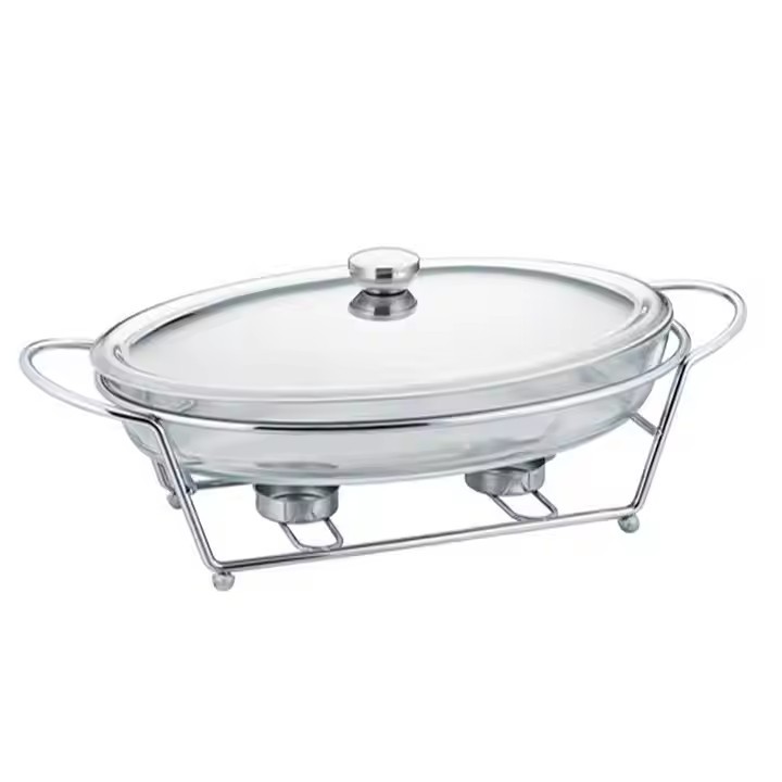 外贸跨境玻璃自助餐炉铁线架蛋形食物加热容器酒精炉chafing dish