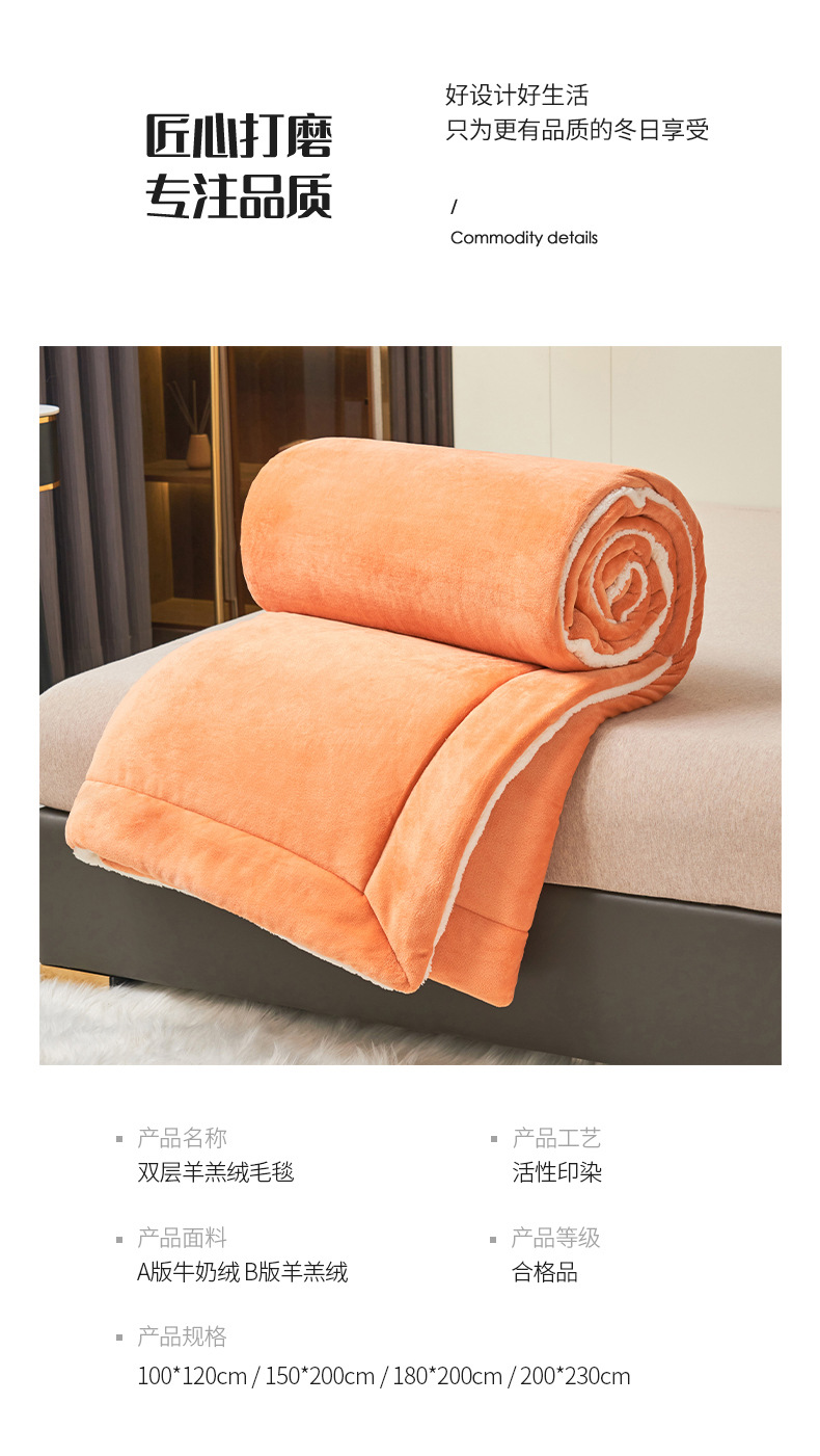 牛奶绒羊羔绒双层毛毯法莱绒毯子秋冬保暖多功能休闲双人午睡盖毯
