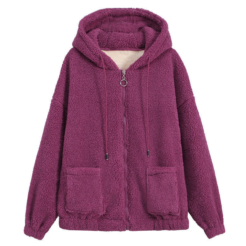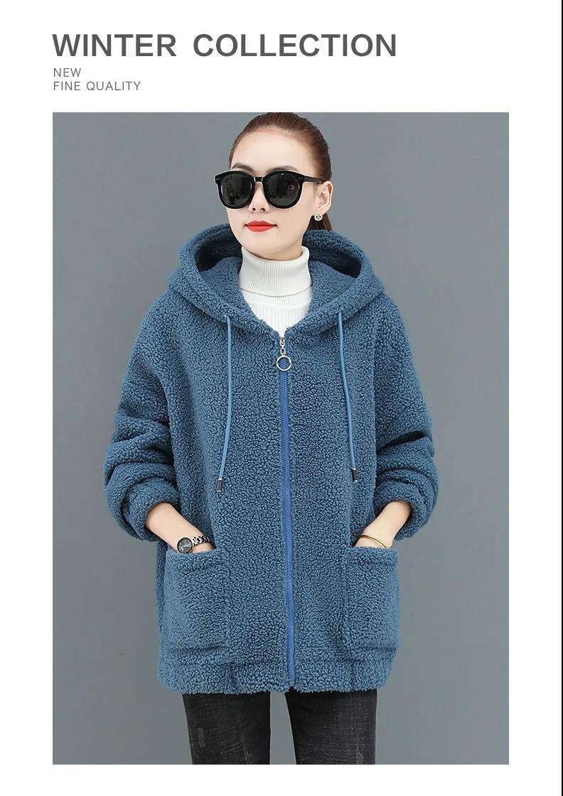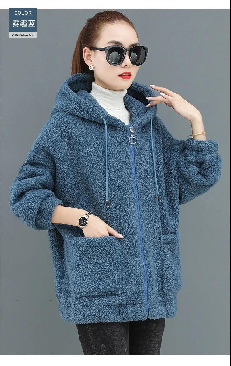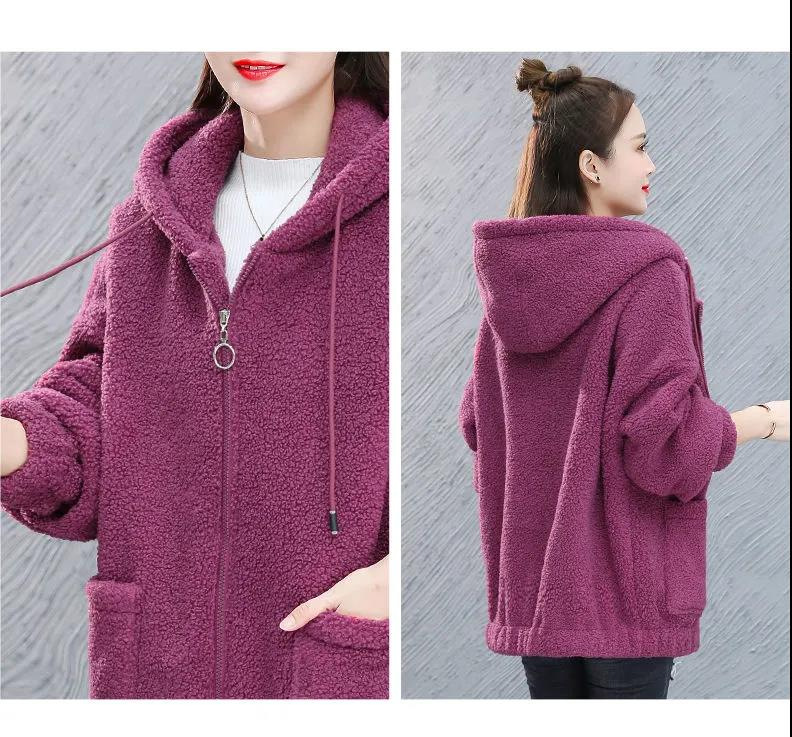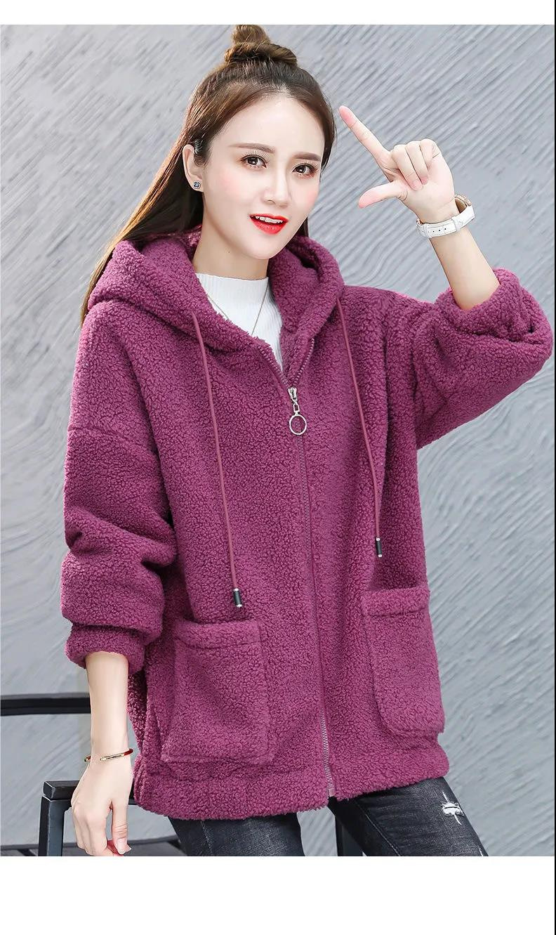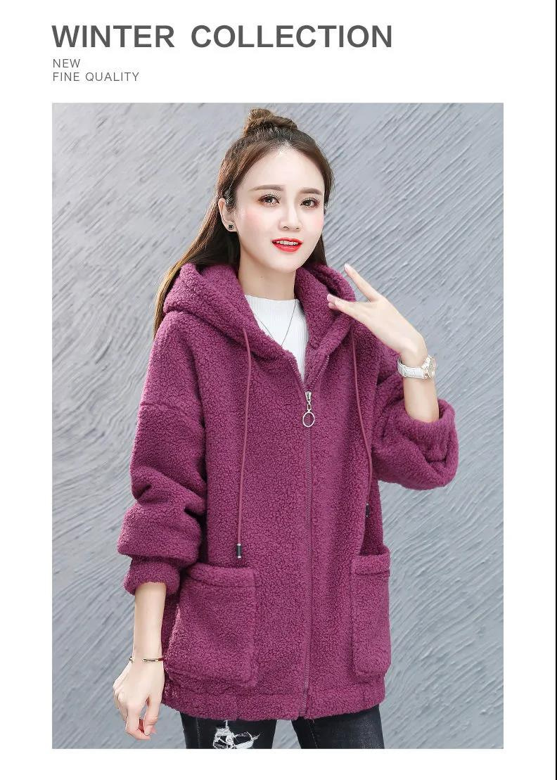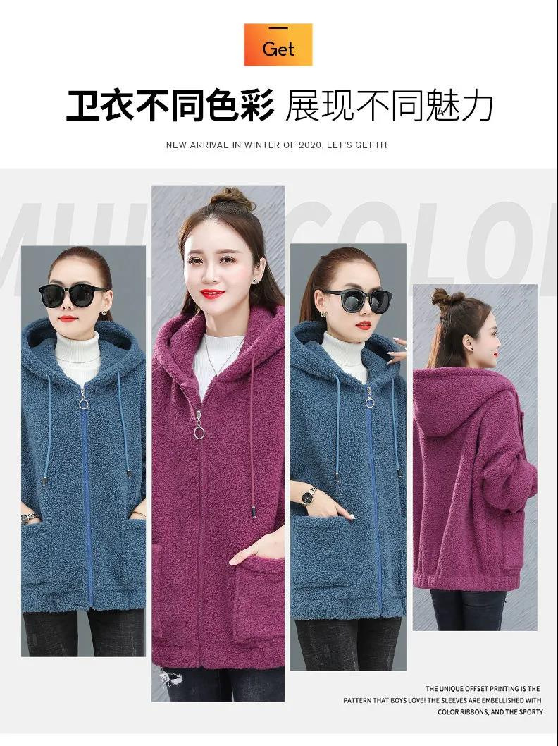 羊羔绒卫衣女秋冬2024加绒加厚带帽口袋开衫慵懒风拉链外套女批发