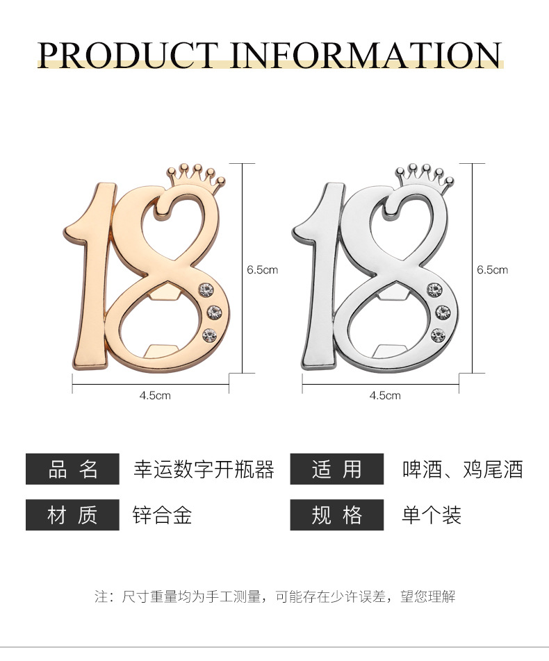 欧美生日派对聚会小礼品啤酒开瓶器伴手礼创意数字18开瓶器瓶起子