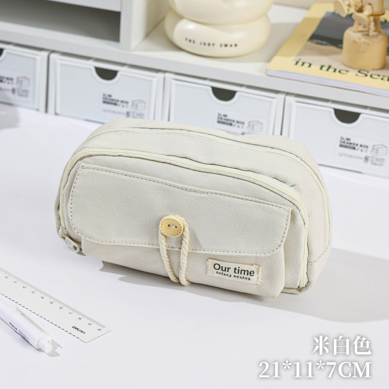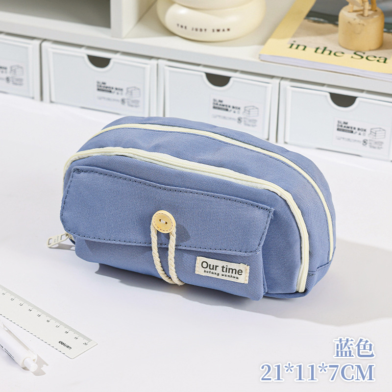 简约纽扣帆布笔袋学生开学季高颜值文具收纳袋韩版纯色铅笔袋奖品