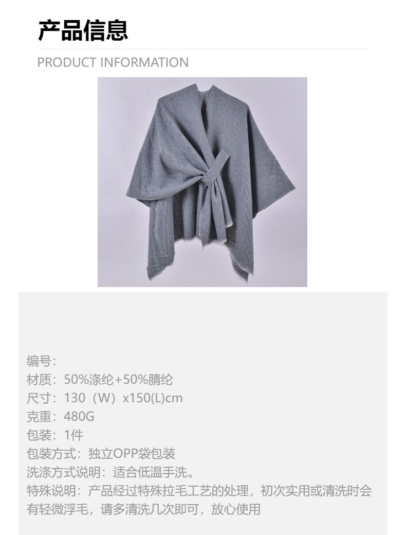 新款女士秋冬保暖斗篷简约双面纯色开叉仿羊绒外搭披肩批发亚马逊